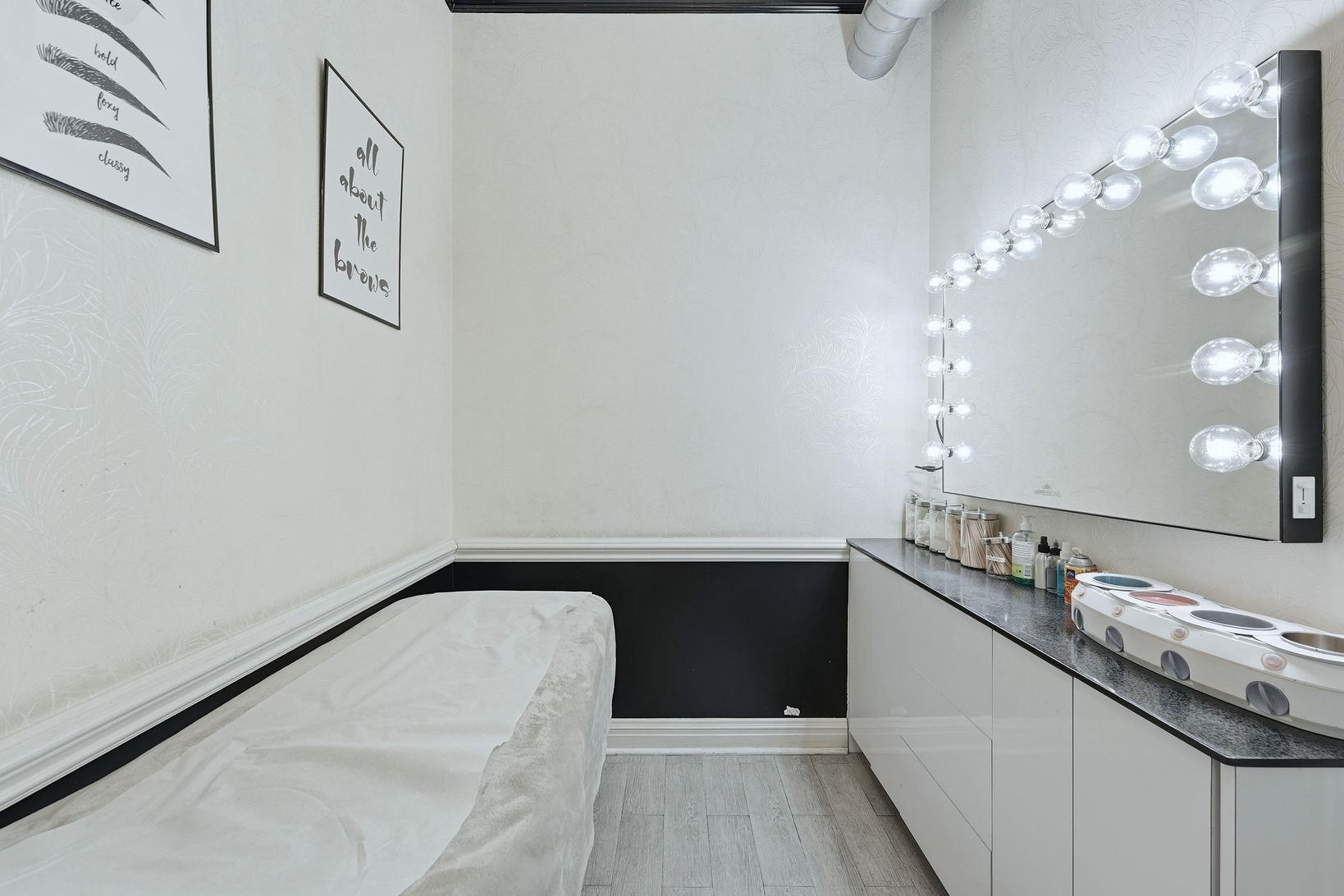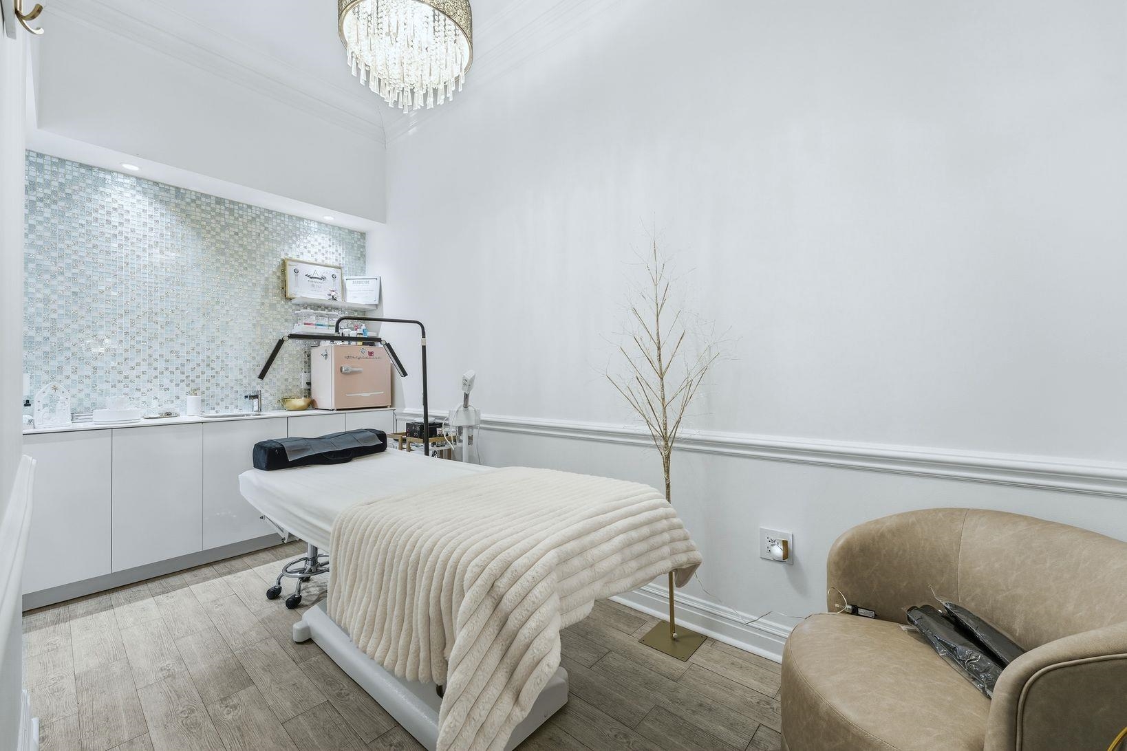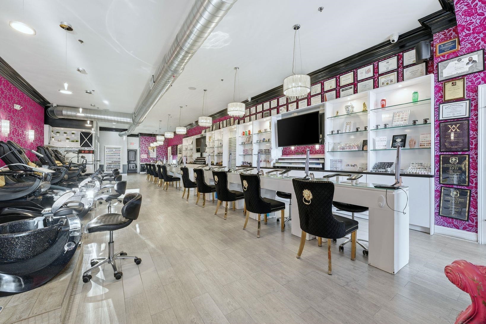 Step into a beautifully designed upscale nail salon and spa, offering a refined atmosphere and a fully built-out, turnkey operation. This sophisticated space blends modern elegance with comfort, creating an inviting experience for a loyal and growing clientele. The salon features a stylish reception and retail area with custom cabinetry, designer lighting, and premium finishes throughout. The open yet thoughtfully arranged layout allows for a seamless flow between manicure, pedicure, and spa service areas, while maintaining privacy and relaxation. The spa is equipped with high-end manicure stations and luxury spa pedicure chairs, all meticulously maintained. Additional private treatment rooms provide flexibility for spa services such as waxing, facials, or specialty treatments. Every detail — from flooring to fixtures — reflects a high-end brand aesthetic. Public Parking available in front or behind the building.