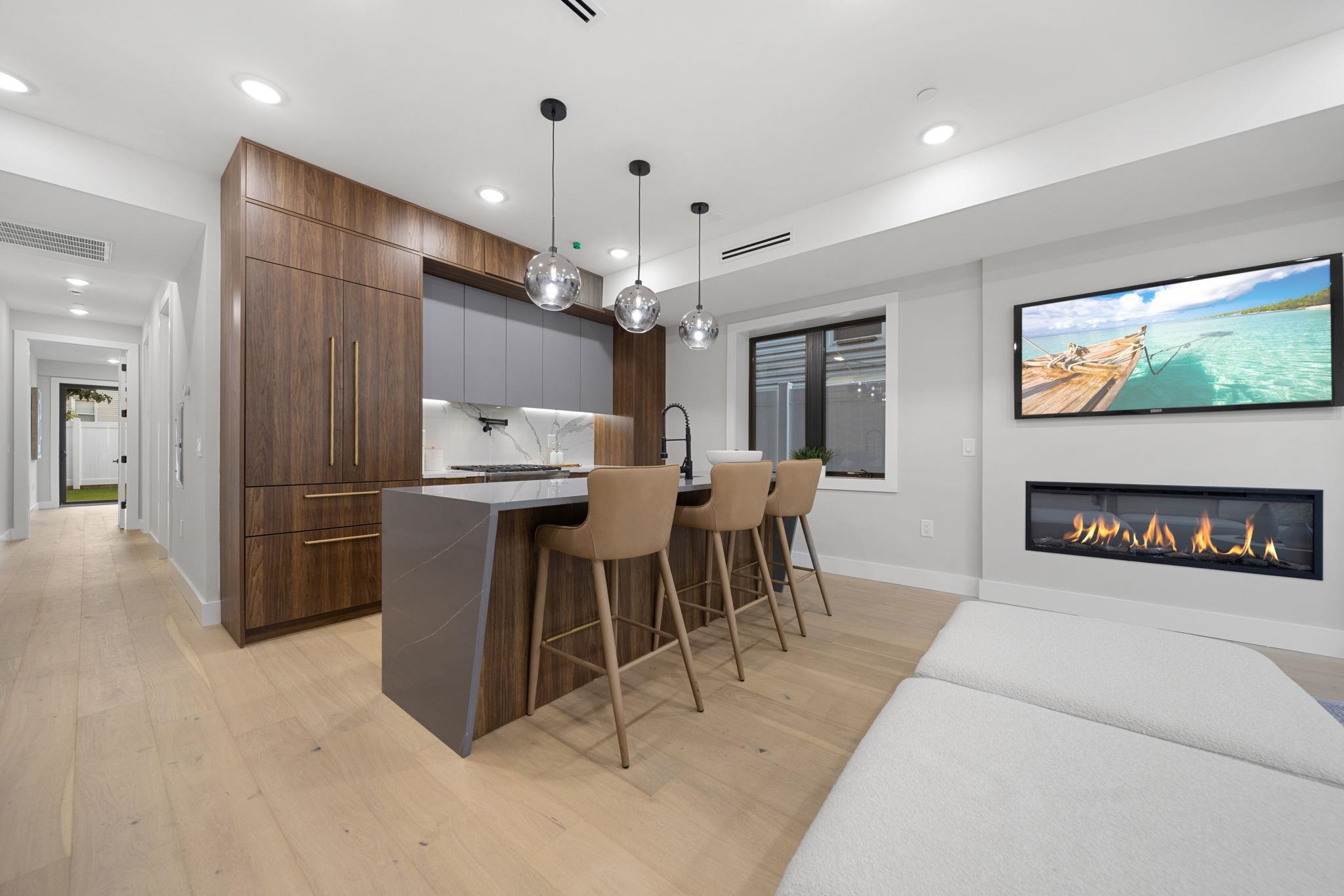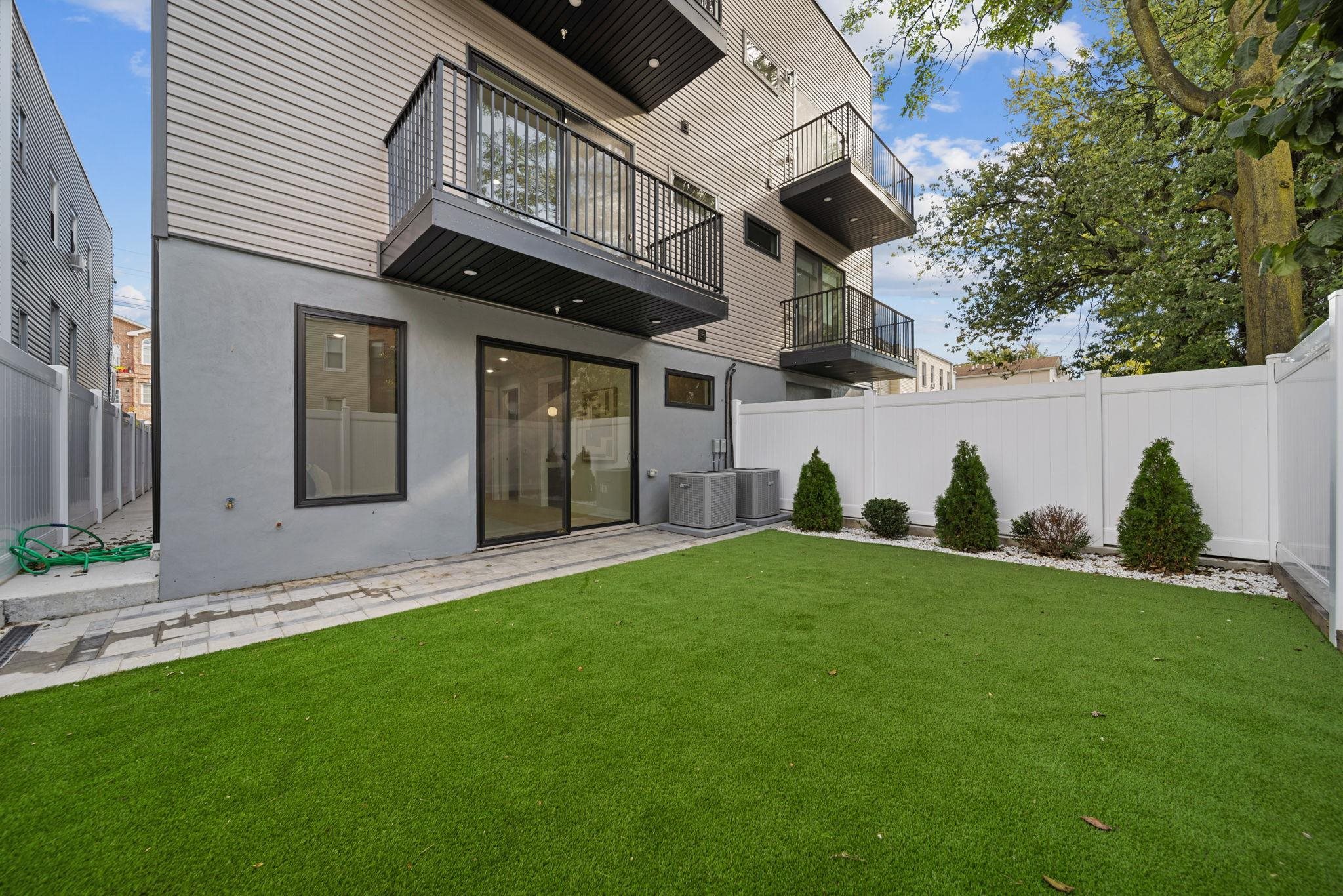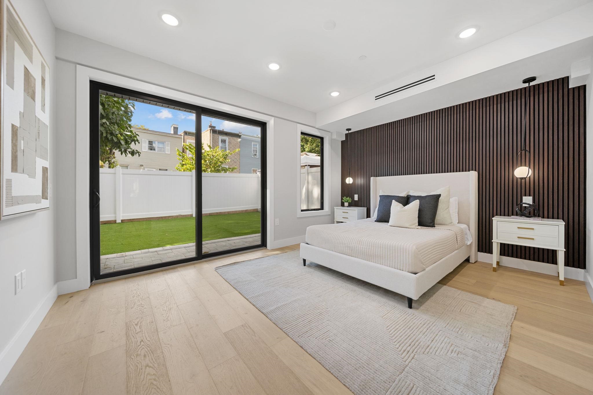 2-YEAR FREE PARKING. RATE BUY DOWN WITH RATES AS LOW AS 4.875%. Terms and eligibility apply-- please inquire for details. MOMENTS FROM CONGRESS ST LIGHT RAIL STATION AND RIVERVIEW FISK PARK. Welcome to 373 New York Avenue, Jersey City — Blue Chip Properties’ most iconic and sought-after project to date. This stunning 3-bedroom, 2-bathroom duplex home is located in the highly desirable New York Avenue enclave, known for its close proximity to the 9th Street Light Rail, Riverview-Fisk Park, Hoboken, and the gourmet dining scene of Palisade Avenue. Designed with timeless interior finishes, high-end fixtures, and meticulous craftsmanship, this residence also offers cutting-edge modern technology for elevated daily living. The main entrance opens to a grand open-concept dining and living area with soaring ceilings, oversized Andersen energy-efficient windows, abundant natural light, and a statement-making realistic flame fireplace. The chef’s kitchen is outfitted with designer two-tone cabinetry, Thermador appliance package with paneled refrigerator and dishwasher, 5 burner range, and heating drawer. The oversized double waterfall quartz island showcases luxurious West Elm accent lighting, along with porcelain backsplash with a convenient Pot Filler, and an externally vented hood. Flowing seamlessly from the kitchen is your entertainment zone featuring a wet bar with custom cabinetry, backlit designer backsplash, and wine fridge. The primary suite is a serene retreat featuring custom warm wood-tone millwork, bedside pendant lighting, a walk-in closet with built-ins. Sliding glass doors open directly to the private backyard, blending indoor comfort with outdoor living. The spa-like ensuite bath showcases modern natural tones, an oversized double vanity, soaking tub, warm pendant lighting, and a luxurious shower with multiple Kohler body sprays and rainfall showerhead. The two additional bedrooms include custom-finished closets and share a beautifully appointed full bath with double vanity and floor-to-ceiling tiles. A separate laundry room with top-of-the-line washer and dryer completes the main level. This fully equipped smart home includes a Google Nest doorbell, security cameras, Google Smart Hub, smart thermostat, touchscreen light switches, dimmers, and more — all seamlessly controlled via smartphone, along with a security camera system. The home is completed with Blue Chip Properties’ signature exterior facade and professional landscaping. Property includes a 10-year builder’s warranty. Square footage is approximate. Offsite parking is available, inquire further.