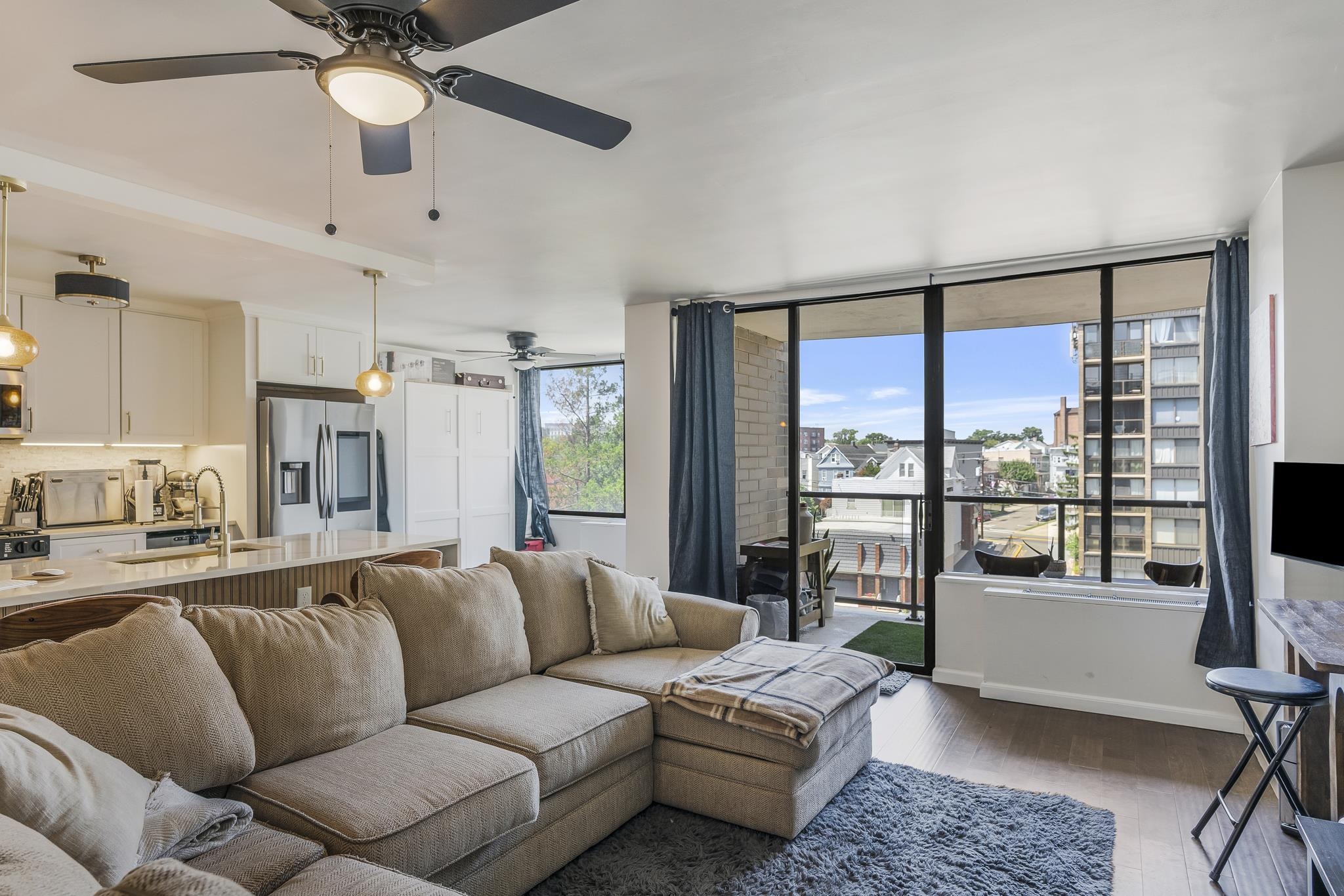 Welcome to this beautifully renovated one-bedroom, one-bath condo in the modern Park Hudson building. This home has been thoughtfully updated from top to bottom, offering a fresh, contemporary feel throughout. Large windows fill the space with natural light, while the generously sized living room and adjacent dining area create an inviting atmosphere for both relaxation and entertaining. The open layout ensures a seamless flow, and the living room opens to a tranquil balcony, perfect for enjoying your morning coffee or evening views. The bedroom serves as a peaceful retreat, with ample space and a large window that welcomes abundant daylight. The building itself has recently enhanced its amenities, including a newly updated outdoor pool area, ensuring a resort-like experience right at home. Residents also enjoy an exercise room, community room, and parking. Located for ultimate convenience, commuting to NYC is effortless with multiple bus lines and ferry services nearby. Plus, James J. Braddock Park is just moments away, offering endless outdoor recreation. Don’t miss this opportunity to own a fully renovated condo in a prime location with upgraded amenities! Upgraded AC Units, Smart Samsung Appliances, and Popcorn ceilings removed. Parking Available for rent for $120 a month.