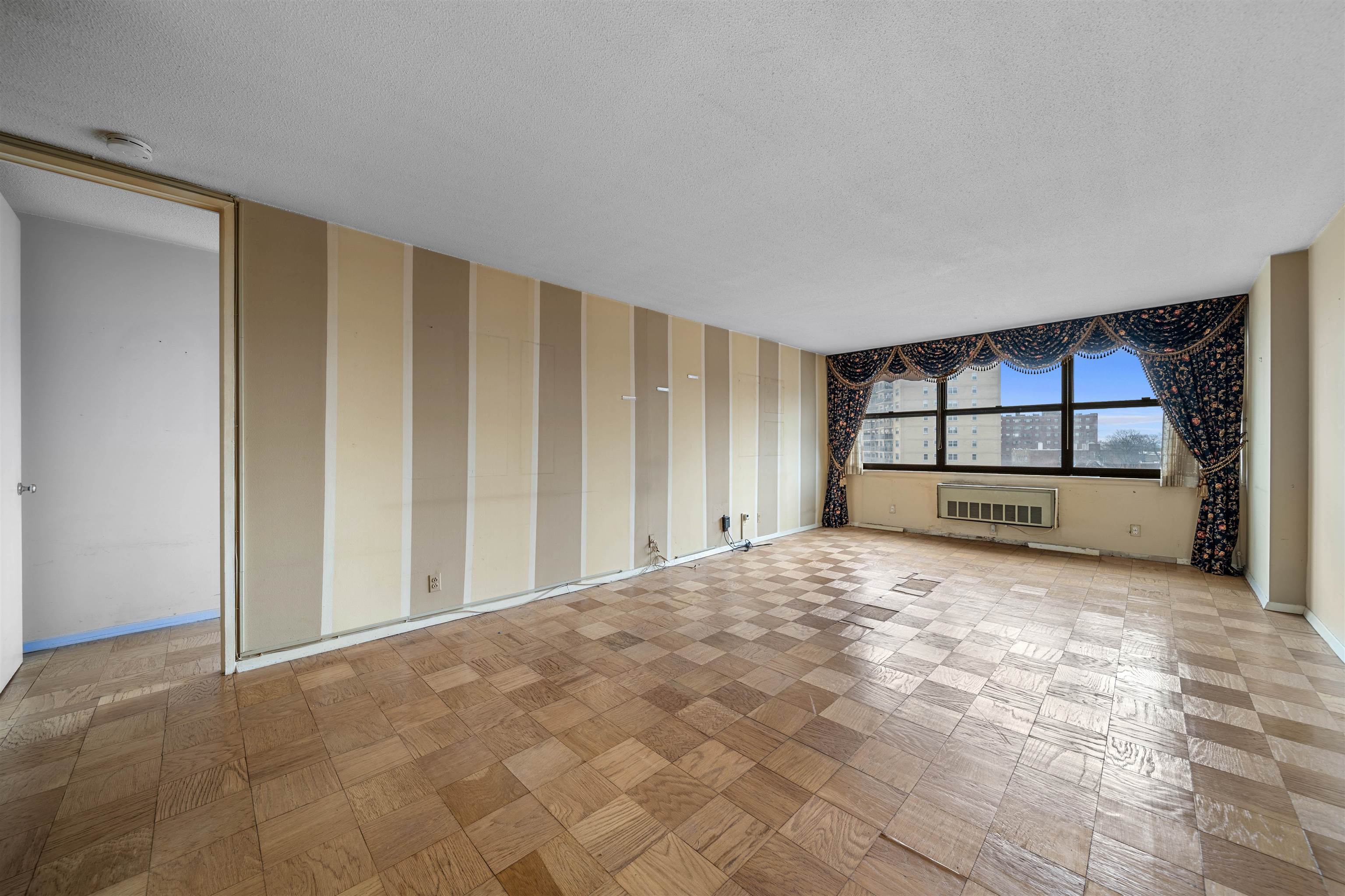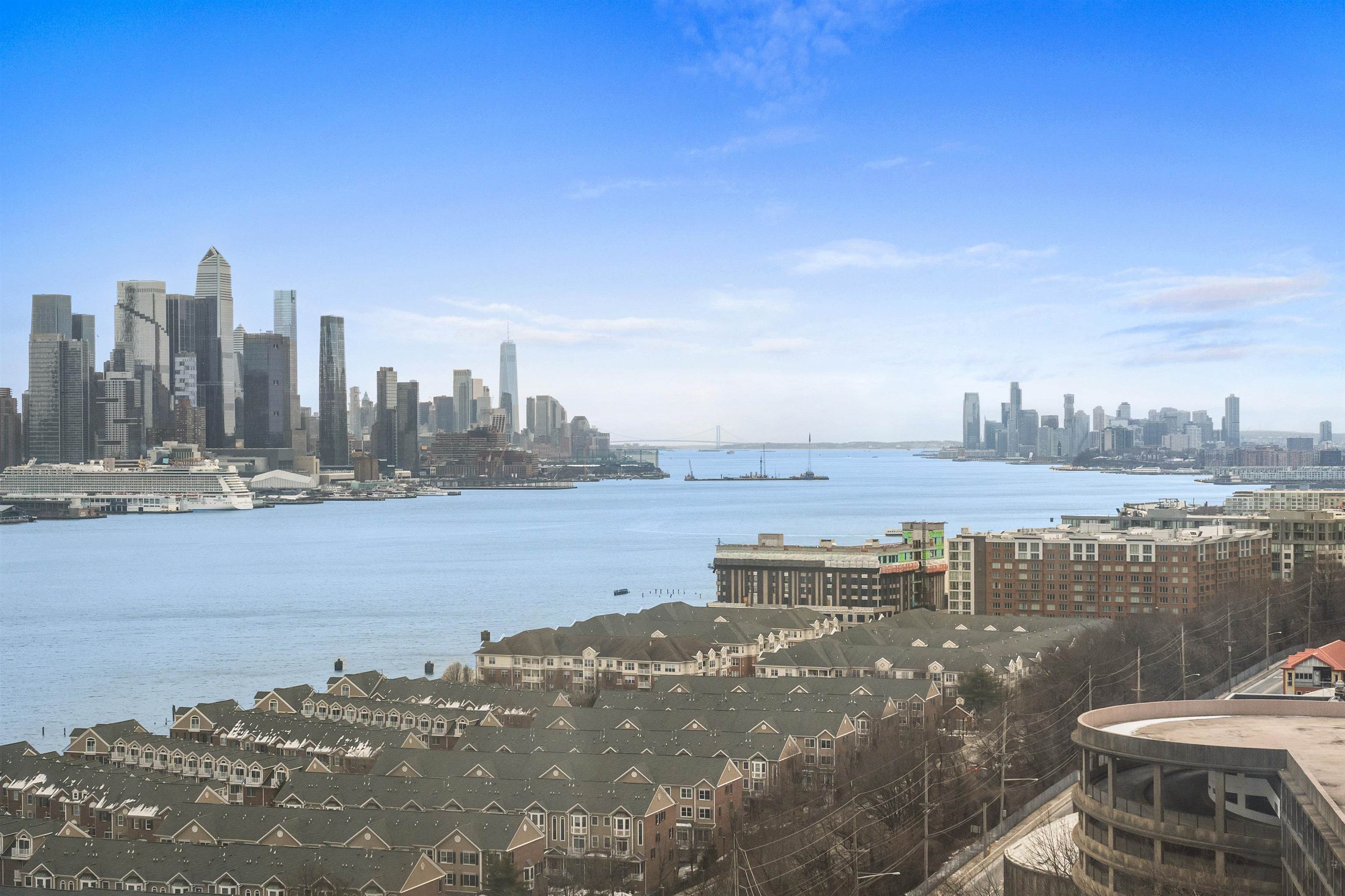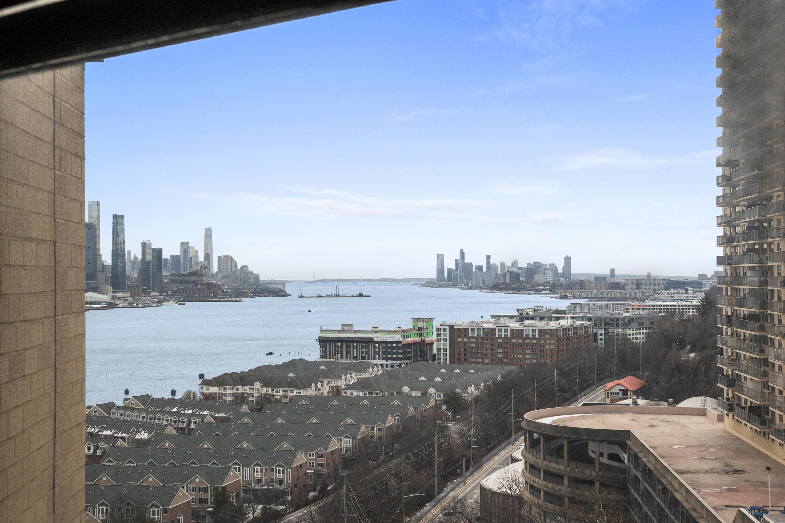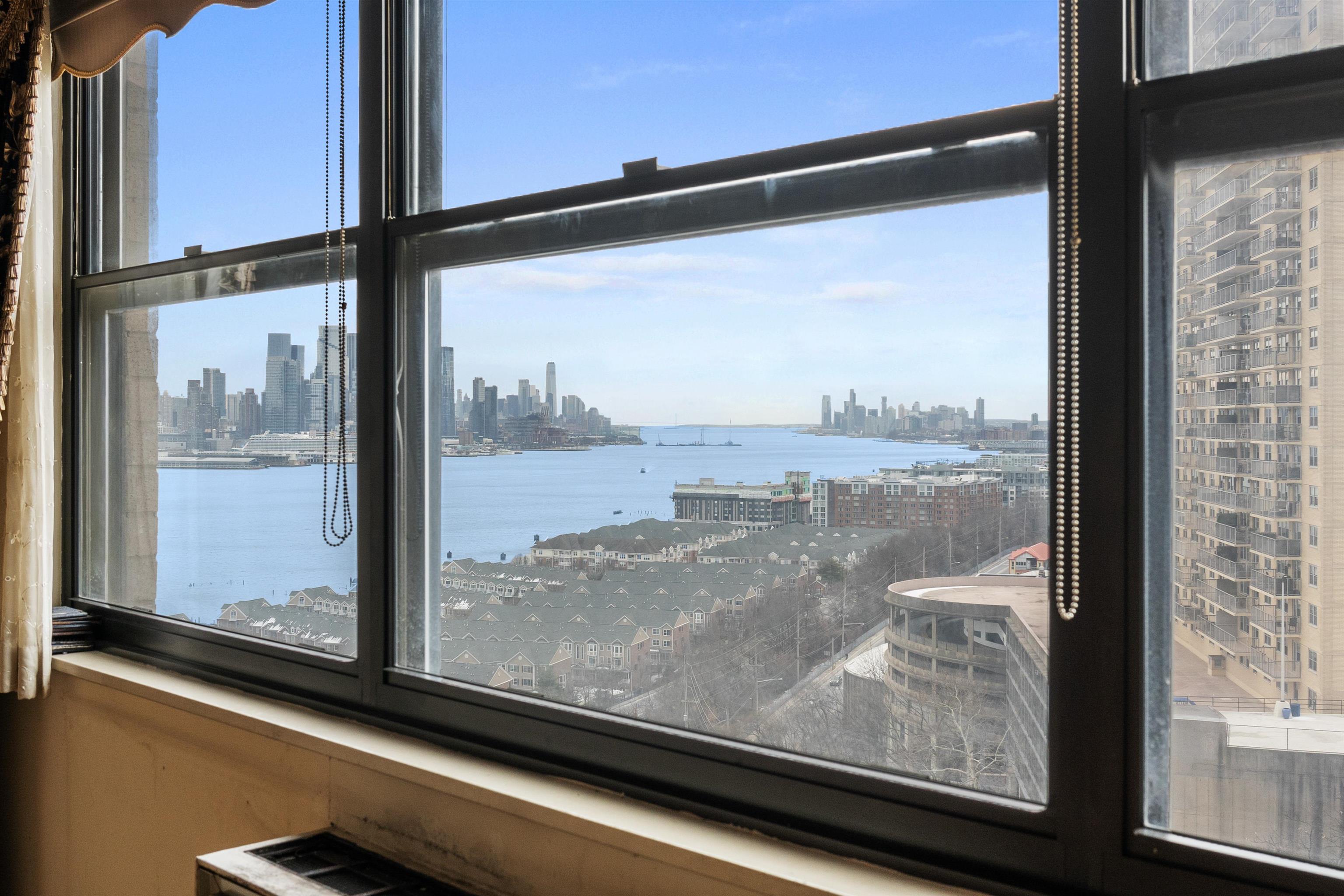 Set high on the 25th floor of the iconic Galaxy Towers, Residence 25F offers an exceptional chance to customize a spacious 1-bedroom home with sweeping Hudson River and Manhattan skyline views. This is a rare opportunity to purchase in one of the Gold Coast's most recognizable full-service communities at an attractive price point-perfect for buyers seeking value, investors or anyone ready to renovate to their own taste. Residents enjoy living with 24/7 concierge, doorman, and on-site security; indoor/outdoor pools, full fitness center, sauna & steam rooms, tennis courts, game room, dance studio, business center and playroom. On-site Galaxy Mall with restaurants, pharmacy, salon, daycare and more. Garage parking available for $120/mo. Minutes to NYC via NJ transit buses, jitneys and ferry shuttles. Port Imperial Ferry is just 5 minutes away.