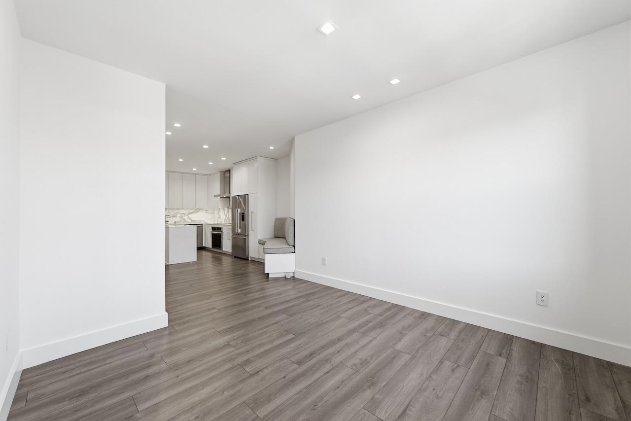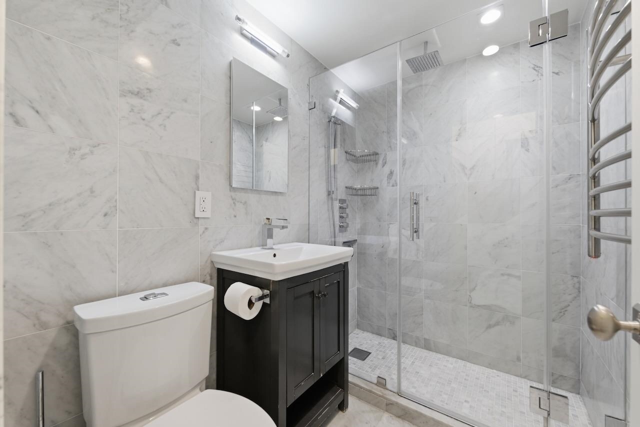Welcome to this meticulously renovated two-bedroom home in the heart of Journal Square. Thoughtfully designed with modern comforts, in an elevator building with off-street parking and a private balcony. The open-concept living space is framed by nearly 9-foot ceilings and abundant natural light. The chef’s kitchen is both striking and highly functional, featuring nano-glass countertops, a porcelain slab backsplash, custom cabinetry designed for maximum storage and usability, and a full suite of premium appliances including an induction cooktop, Electrolux oven, vented range hood, and drawer microwave. A built-in dining banquette with hidden storage adds style and practicality, while instant hot water at the sink elevates everyday convenience. The spa-like bathroom is wrapped in floor-to-ceiling marble tile, complete with dual shower heads and a heated towel rack. Both bedrooms are generously sized, with the primary capable of fitting a king sized bed plus two night stands. Both feature the same floor-to-ceiling closets that you’ll find in the entrance area and the second bedroom has the added bonus of a private balcony. Remote-controlled roller shades, Lutron dimmer switches, and integrated Verizon Fios internet bring effortless modern living to every room. With new systems throughout, enhanced soundproofing, and close proximity to the Journal Square PATH, this home offers a rare blend of luxury, efficiency, and commuter convenience.