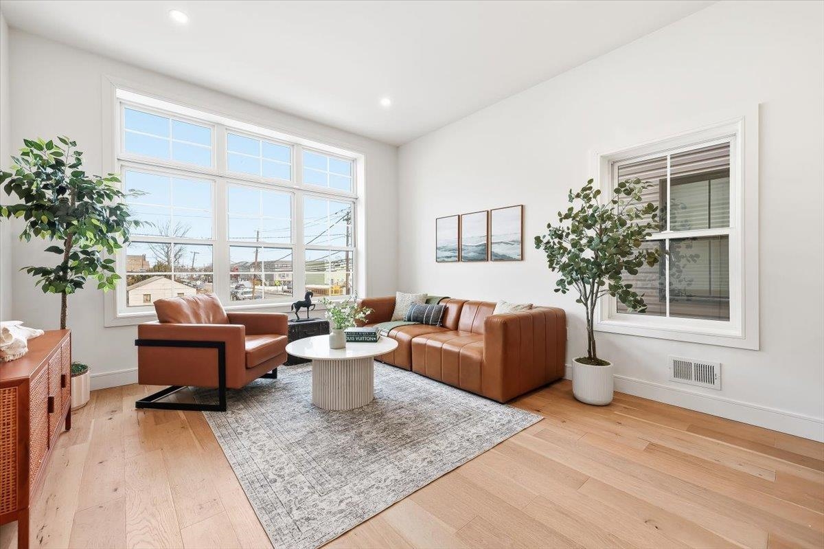 Brand New 2 Family Construction in Bayonne! Stunning new construction offering two distinct, thoughtfully designed and laid out units, each crafted with exceptional attention to detail and backed by a 10-year builder warranty. Unit 1 is a spacious 3-bedroom, 2.5-bath home spread across two sprawling living levels. Enjoy grand oversized European entry doors that make a bold first impression. Inside, discover modern interior detailing with clean-lined doors and trim, premium Andersen windows for exceptional insulation, soundproofing, and abundant natural light, plus wide-plank 7†French Oak engineered hardwood flooring with a timeless matte finish. The ground floor is finished with large-format tiles, recessed lighting, a half bath, and extra storage rooms. The main living level showcases designer light fixtures, pendant lighting in the kitchen, and built-in bed wall sconces in the primary suite — which also features a spacious walk-in closet and a spa-like en-suite with frameless glass shower and niche shelving. The custom European-style kitchen is a chef’s dream, complete with frameless Tafisa-brand cabinetry, under-cabinet LED lighting, built-in spice rack, trash pullout, and a hidden appliance garage to keep countertops clean. Luxurious Quartz Calacatta Adonia countertops with waterfall edges elevate the space, while the Smart Samsung stainless steel appliance package brings high-end functionality. Designer plumbing fixtures include a curated mix of Delta, Moen, and Kohler faucets, toilets and Glass Shower enclosures (not photographed). Efficient climate control is ensured with a dual-zone HVAC system and on-demand tankless water heater. This unit also includes dedicated parking with one garage space plus one exterior space and a private backyard for outdoor enjoyment along with in unit Washer/Dryer in Both units. Unit 2 is a bright 3-bedroom, 2-bath home featuring all the same premium finishes and details — Additional upgrades include a double vanity in the master bath and a private full-length rooftop deck — an incredible 1,000 sq. ft. oasis with sweeping NYC skyline views. This unit includes a single-zone HVAC system and on-demand tankless water heater Nestled on the desirable East Side of Bayonne, this location is a commuter’s dream — close to the Hudson-Bergen Light Rail with direct PATH connections to NYC and upcoming ferry options. Don’t miss the opportunity to own a stunning, feature-rich new home in one of Bayonne’s most convenient neighborhoods. Call now for more information or to schedule your private tour today!