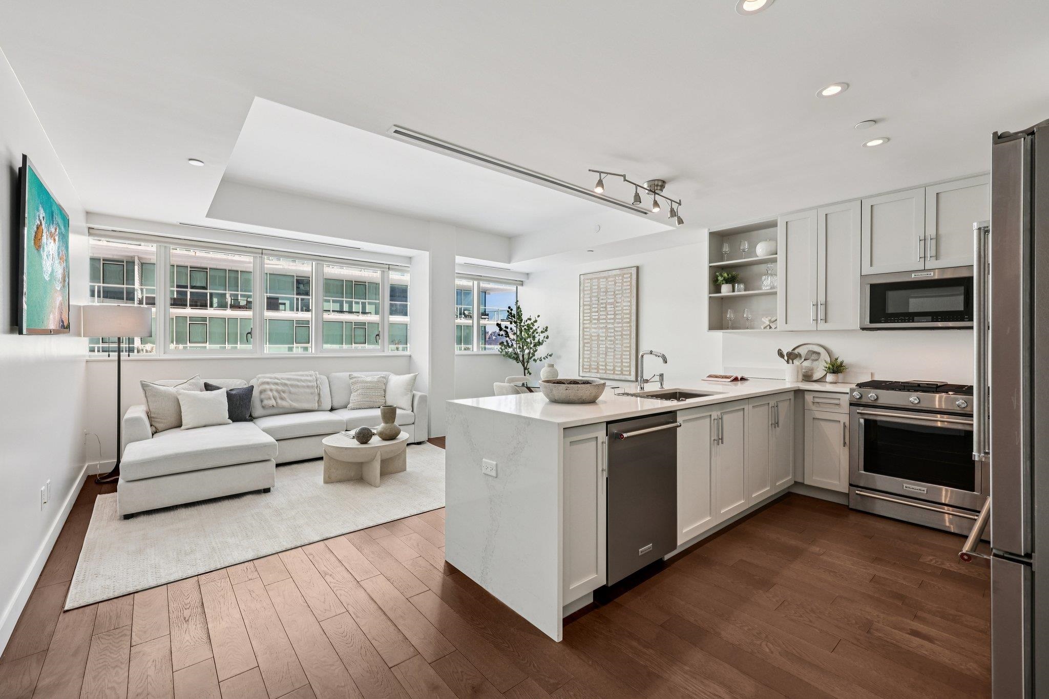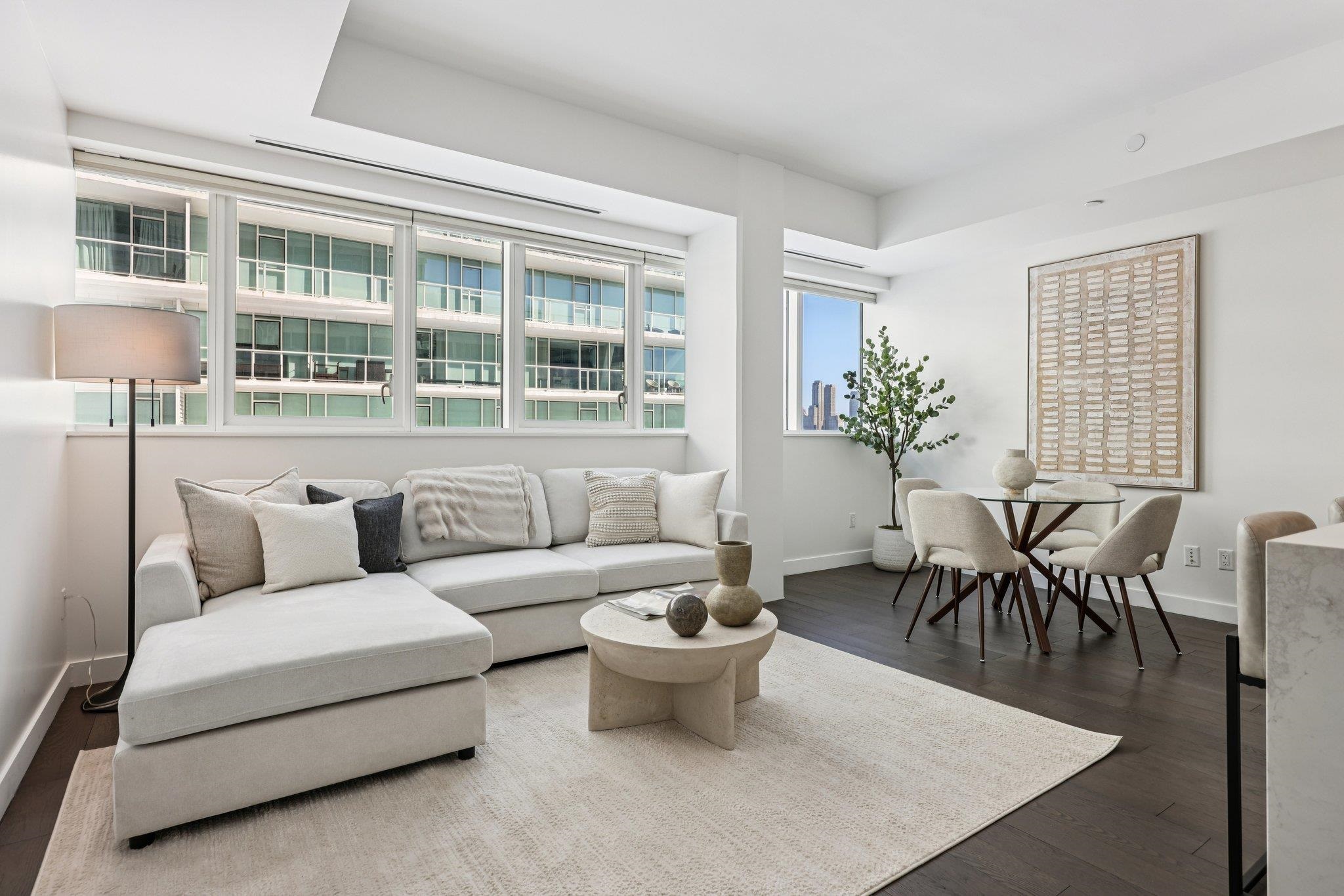 Have you ever seen the Manhattan skyline from New Jersey? One of the most spectacular and luxurious Manhattan views awaits you at Avora — an elegant waterfront condominium located on the Hudson River in Weehawken. This rare 1-bedroom plus den residence, offering 1,039 square feet, elevates everyday living to something truly extraordinary. The open kitchen features top-of-the-line appliances and marble countertops, flowing seamlessly into the living area, where motorized window shades frame serene pool views and stunning Manhattan skyline vistas to the right. The ferry terminal — just a 2-minute walk away — brings you to Manhattan in only 8 minutes, making this one of the most convenient and desirable locations on the waterfront. Luxury amenities include a 24-hour concierge, swimming pool, fitness center, residents’ club room, business center, and private cinema room — and, unusually for a New Jersey condominium, the building is pet-friendly. One garage parking and one storage are included. Quite simply, there is no better combination of luxury, convenience, and view.