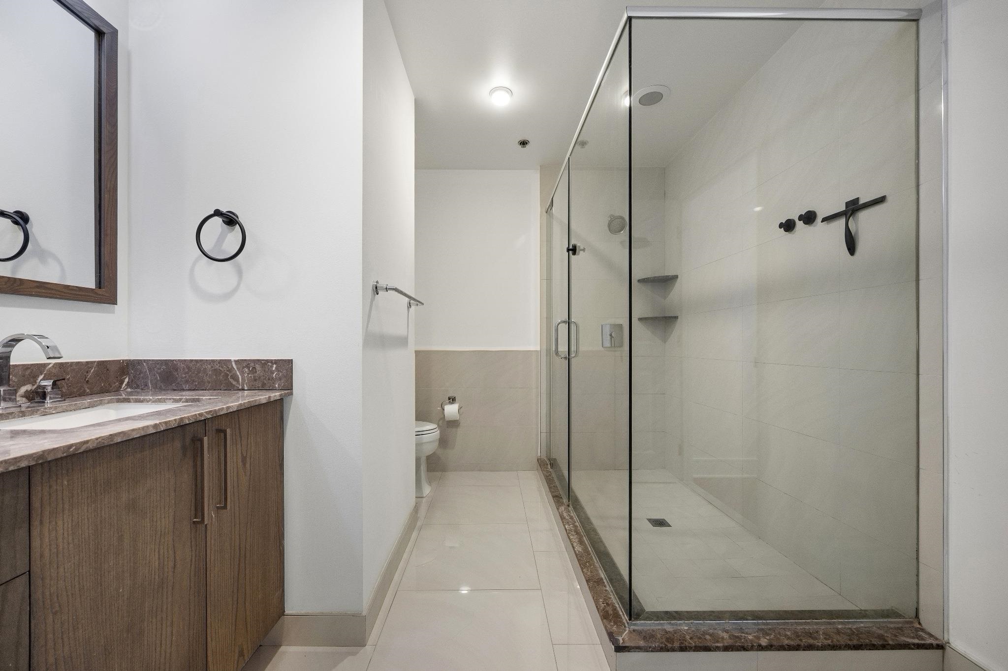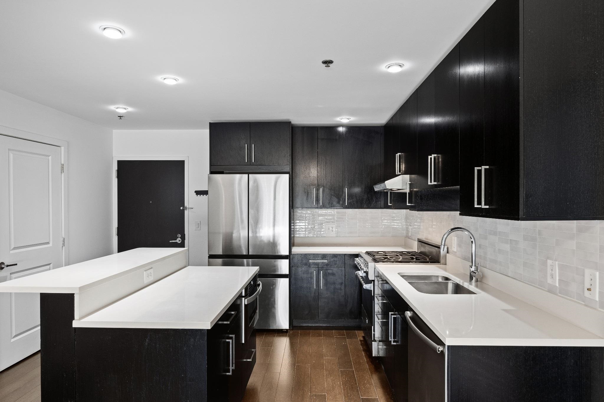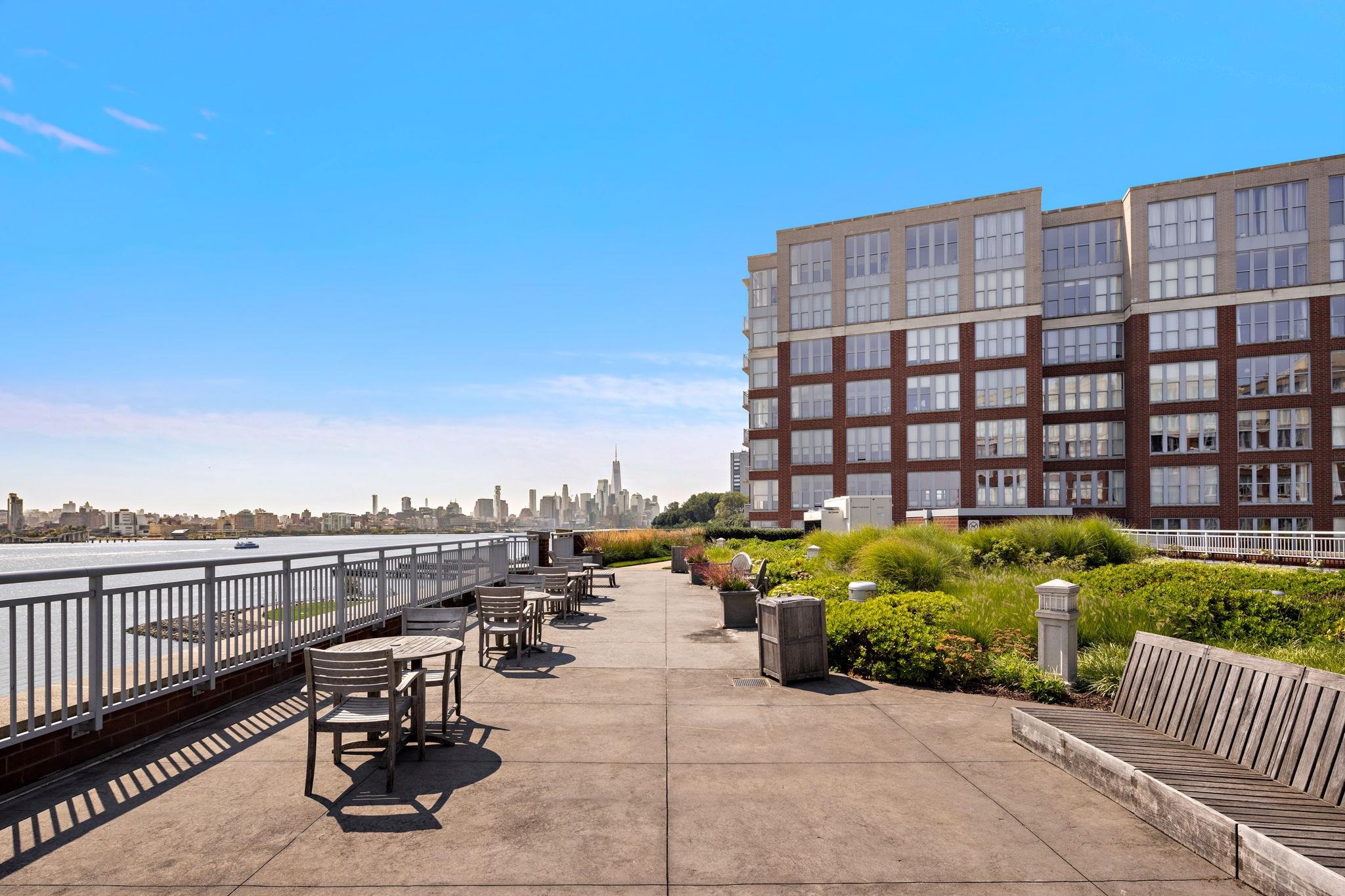Incredible two bed, two bath home with attached private patio in the luxury community of 1100 Maxwell Ln! Open floorplan and East-facing floor-to-ceiling windows mean the home is soaked in sun. Chef's kitchen features quartz countertops, stainless steel appliances and custom cabinets. Primary bedroom features a walk-in closet and luxurious ensuite bath. The spacious secondary bedroom with its own walk-in closet and the additional bathroom round out this perfect home. Also included is central A/C, in-unit washer/dryer, gleaming hardwood floors, and deeded parking spot #40. The community’s generous amenities include 24/7 concierge and security, 2 gyms, 2 pools, 2 playrooms, 2 rooftop decks with BBQ grills, community rooms, and shuttle service to and from the Path. The building is conveniently located near the NYC Ferry, bus stop, shops, restaurants, and everything that uptown Hoboken has to offer.
