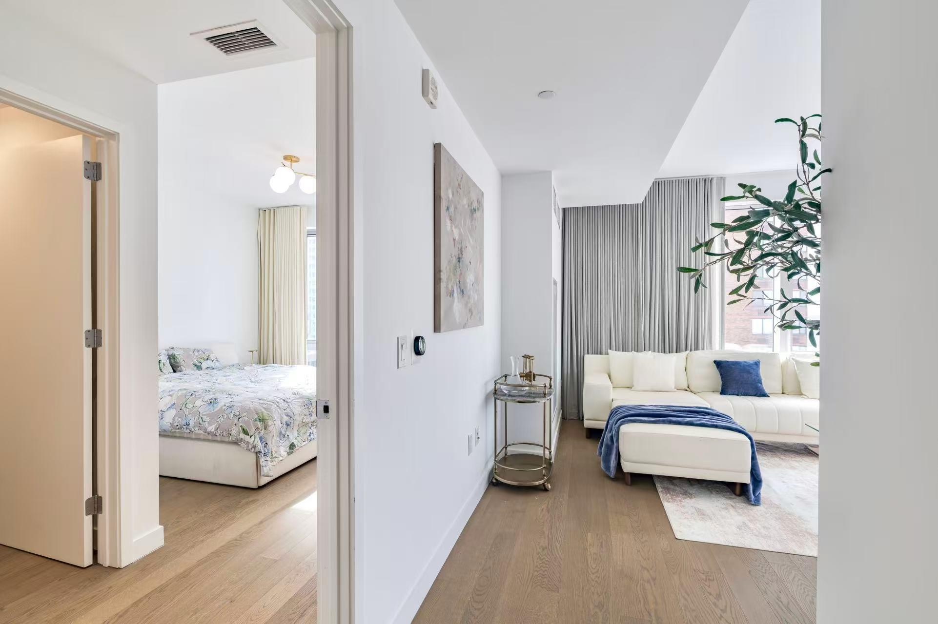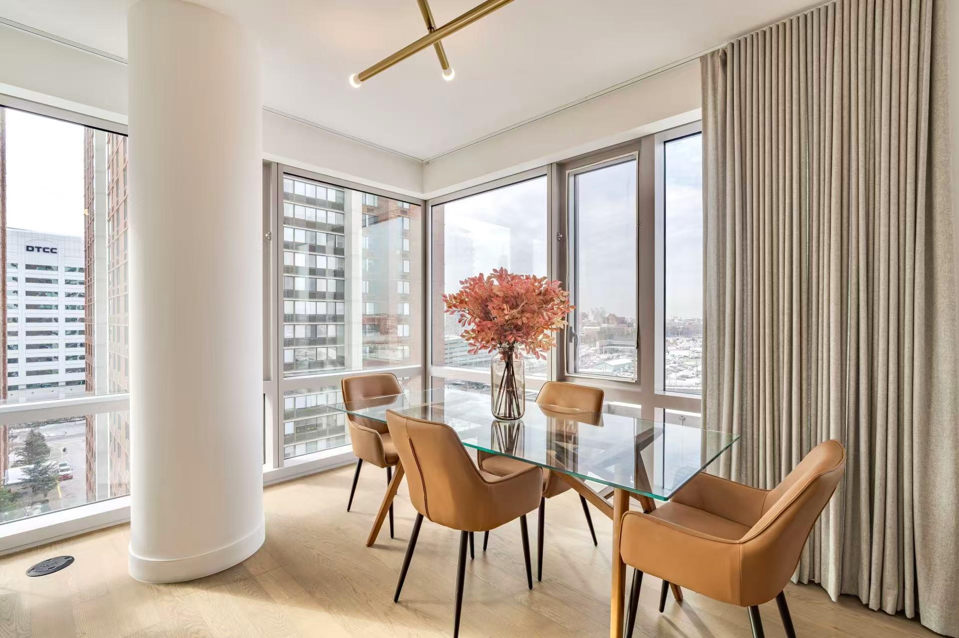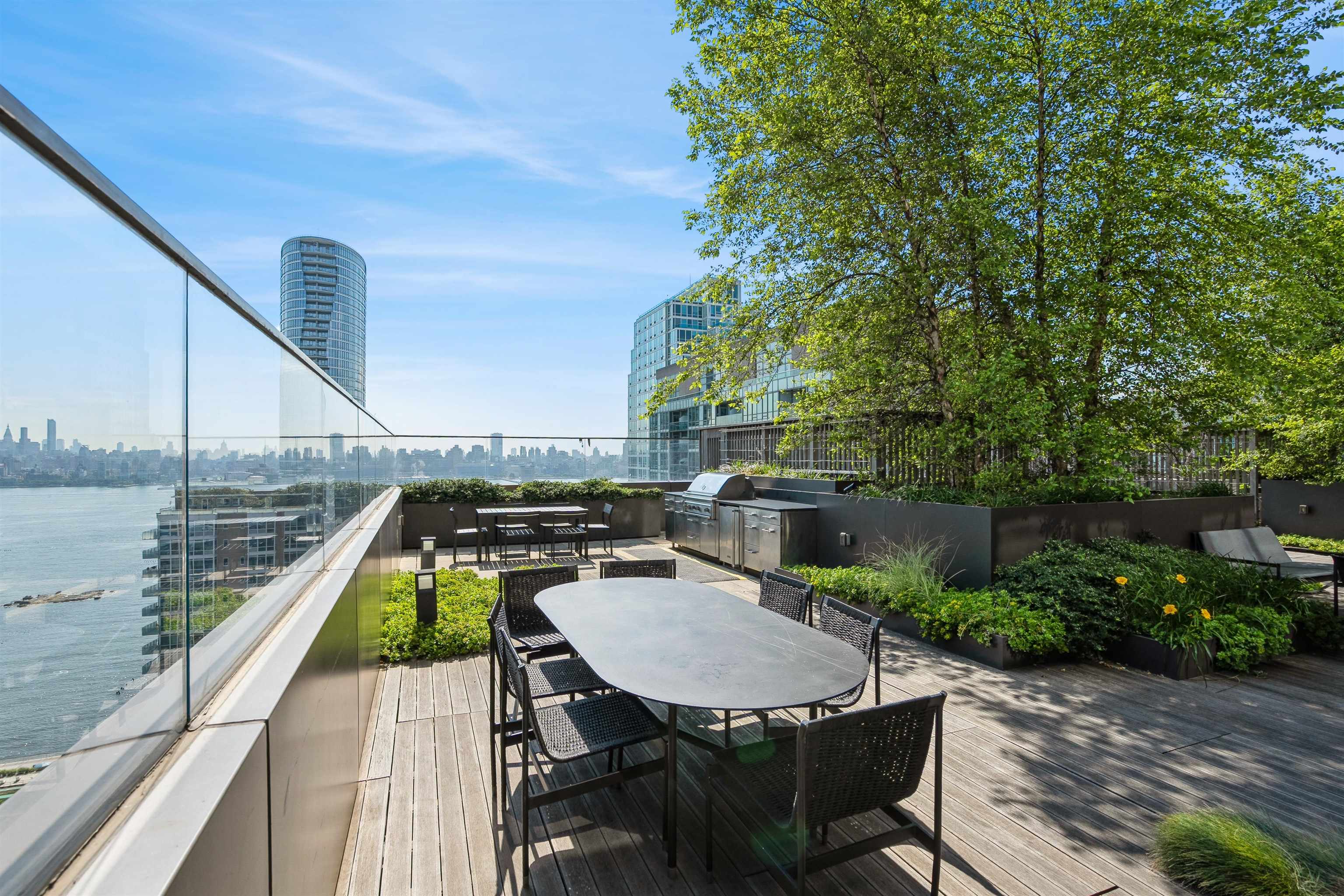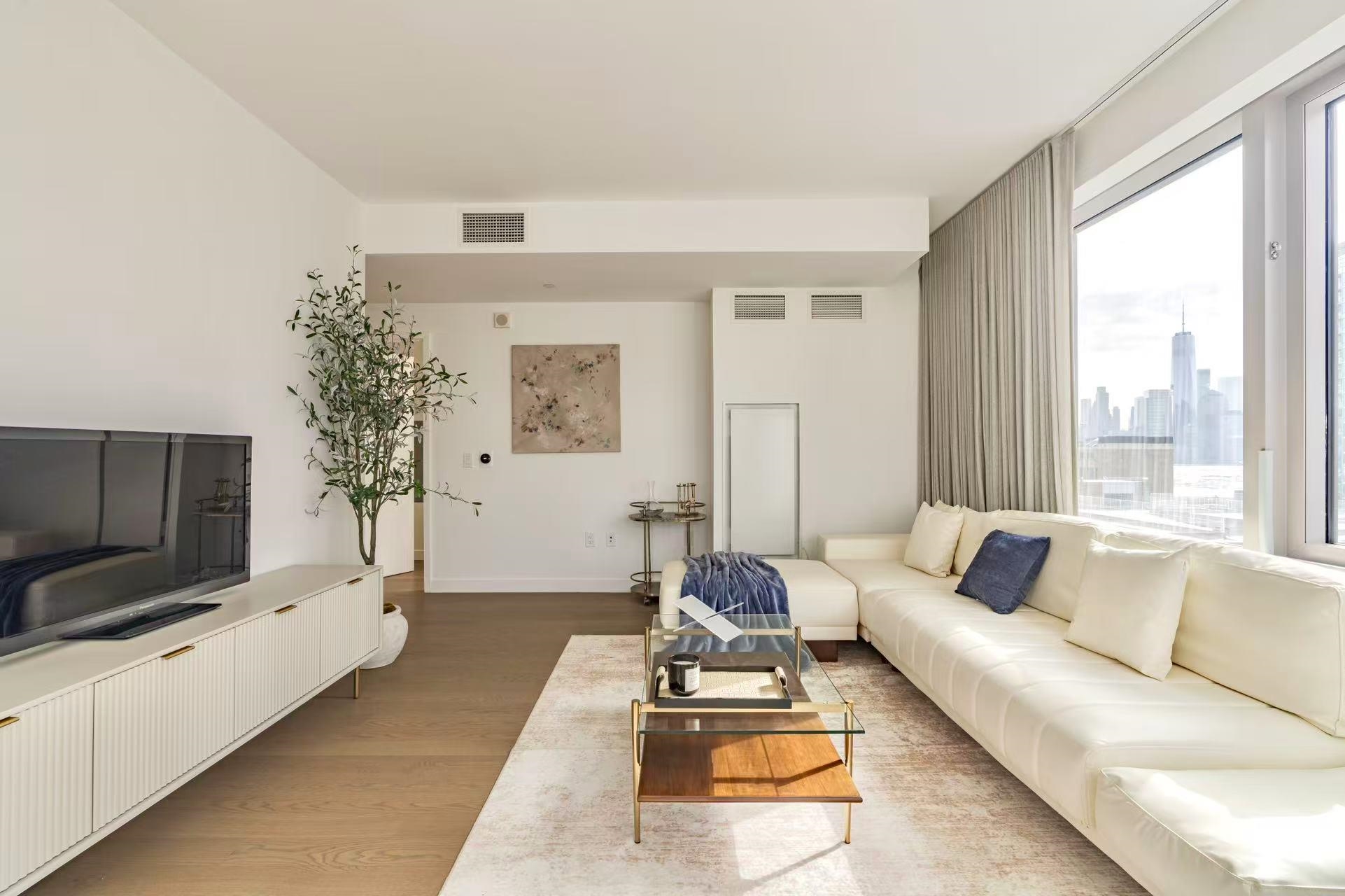Premier 2BR/2BA Corner Unit with Skyline & River Views This southwest corner residence is perched in a premier high-rise, showcasing sweeping views of the Manhattan skyline and Hudson River. Constructed with concrete for superior soundproofing and resilience against floods and hurricanes, the building offers both peace of mind and comfort with central A/C and heat. Recently renovated, the 2-bedroom, 2-bath unit features hardwood floors throughout and dramatic floor-to-ceiling windows that flood the home with natural light year-round. The chef’s kitchen is outfitted with sleek Bosch appliances and elegant white marble countertops — perfect for cooking and entertaining. An in-unit washer and dryer add to the convenience. Residents enjoy full-service living with a 24-hour doorman and an impressive suite of amenities, including a 25-meter Olympic lap pool, state-of-the-art fitness center, and children’s playroom. Ideally located, this home is just minutes from the Newport PATH station, light rail, ferry terminals, and multiple transit options, ensuring a seamless commute to Manhattan and beyond.