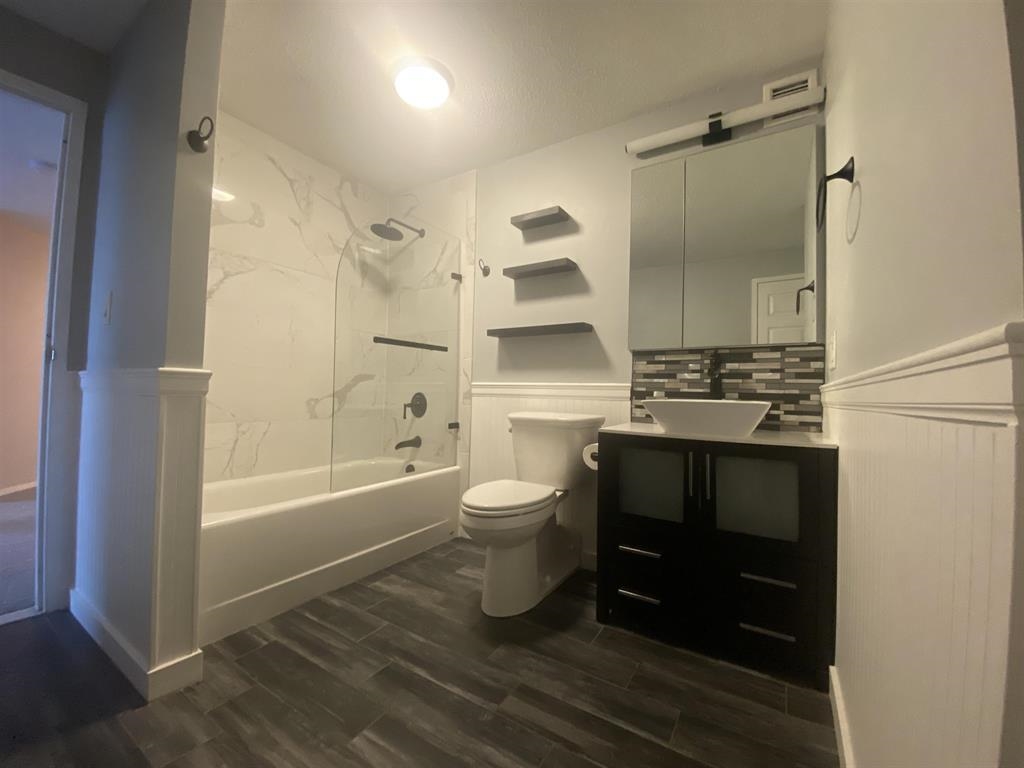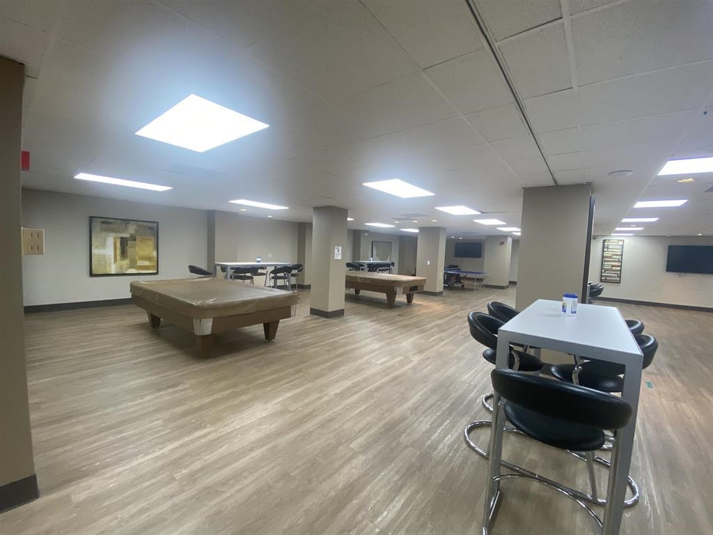 Situated on the 18th floor, this beautiful renovated 1 bedroom unit features newer carpeting, recently renovated kitchen and bathroom! Walk into the dining room that offers two closets for abundant storage. Large living room with newer sliders out to a spacious balcony offering unobstructed views. One large bedroom that can fit a king size bed. Kitchen features granite counter tops, stainless steel appliances and full size in unit washer/dryer! Updated bathroom w/ a tub/shower with custom glass door. Recently updated HVAC units!! Unit comes with 1 covered parking space included. Harmon Cove offers many amenities such as a gym, locker rooms w/ sauna, game room, children's playroom, outdoor pool, tennis courts and basketball courts. Bus to transit center, close to public transportation!