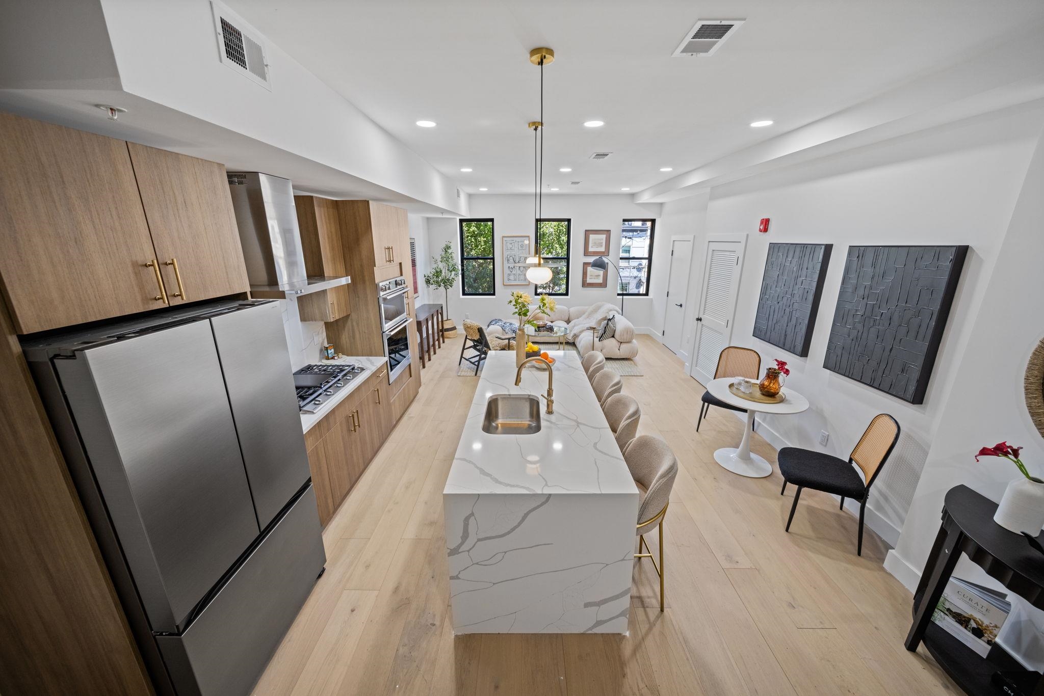 Modern and elegant 3 bedroom, 2.5 bath duplex in highly desirable Jersey City Heights, offering a refined blend of space, style, and comfort. Spanning two thoughtfully crafted levels, this residence boasts an airy, open-concept layout with expansive living areas ideal for both comfort and entertaining. A spacious private rooftop deck crowns the home, creating an exclusive escape with sweeping panoramic city views. Large windows bathe each room in natural light, showcasing the home’s impressive scale, sophisticated design, and high-end finishes. The chef’s kitchen is a true showpiece, equipped with professional-grade appliances, including a pot filler, a double wall oven with microwave, air-fry, and speed-cook functions, a fully vented hood, and custom cabinetry that blends timeless elegance with everyday functionality. The luxurious primary suite offers a sleek en suite bath with radiant heated floors and a spacious walk-in closet. Bathrooms throughout showcase designer tile work and premium fixtures. Additional highlights include private dedicated basement storage and a SwiftReader facial recognition system for secure, keyless, front door access. Every detail has been carefully curated, resulting in a home that combines exceptional craftsmanship with a serene outdoor space. Nearby Indoor Garage Parking Available.