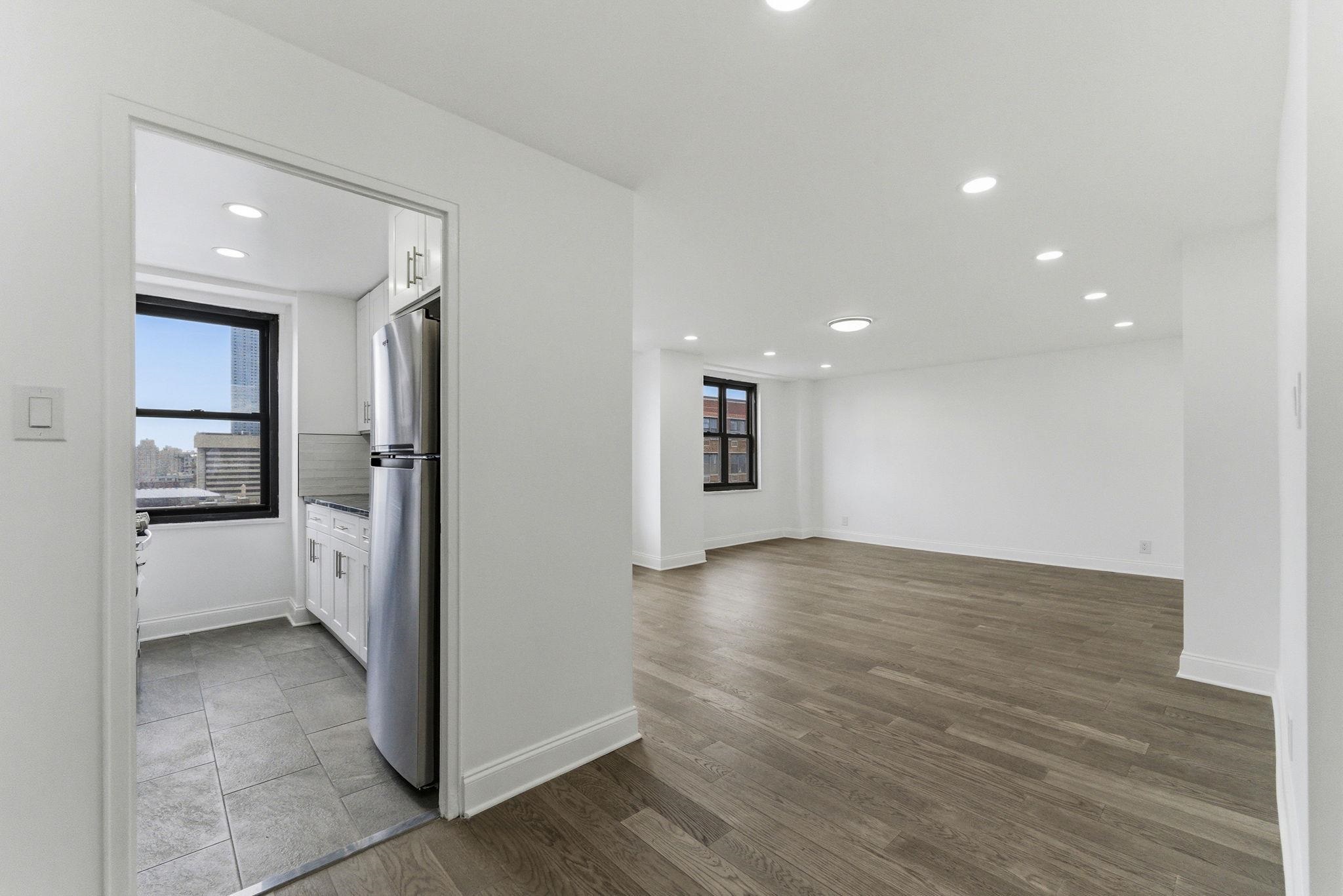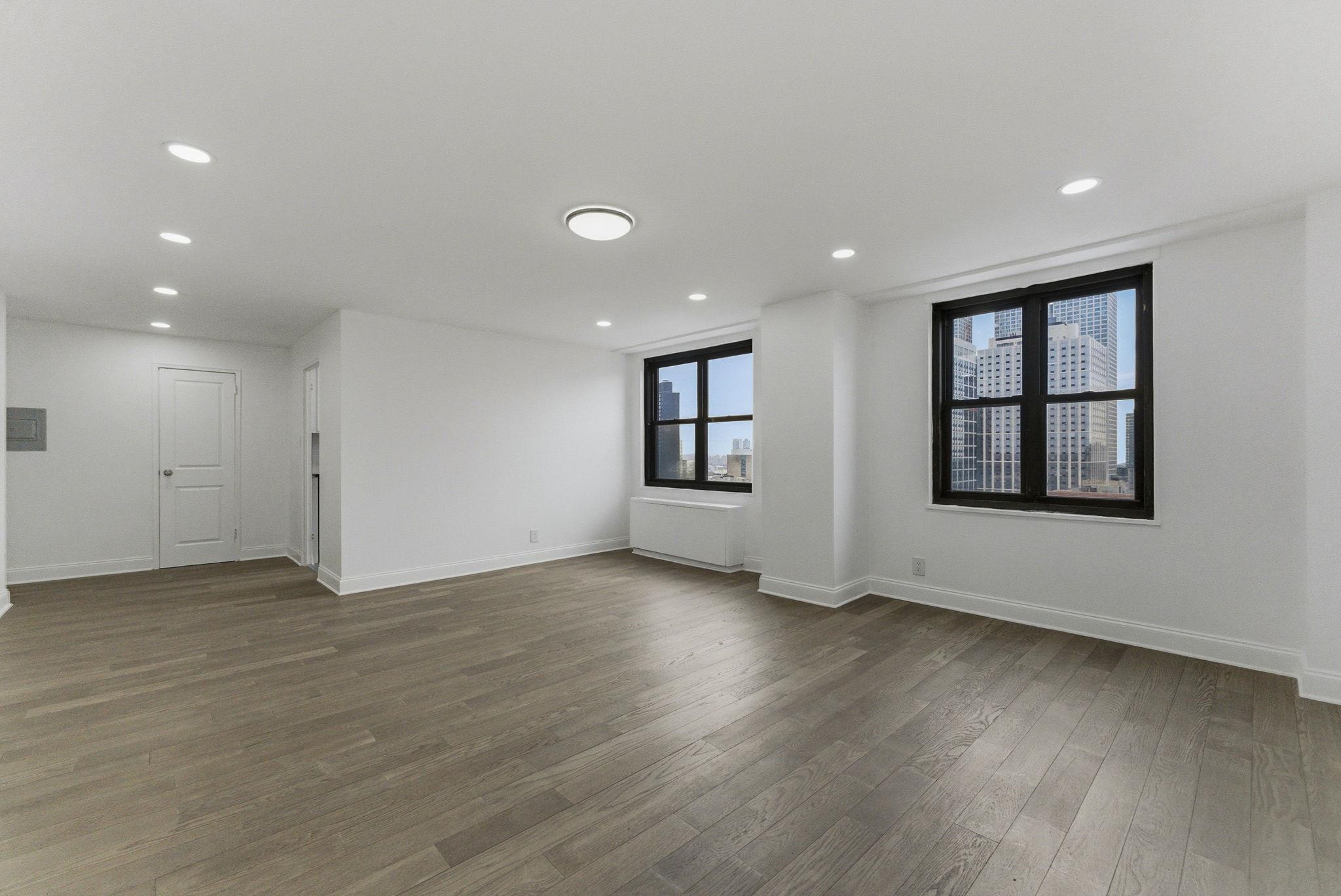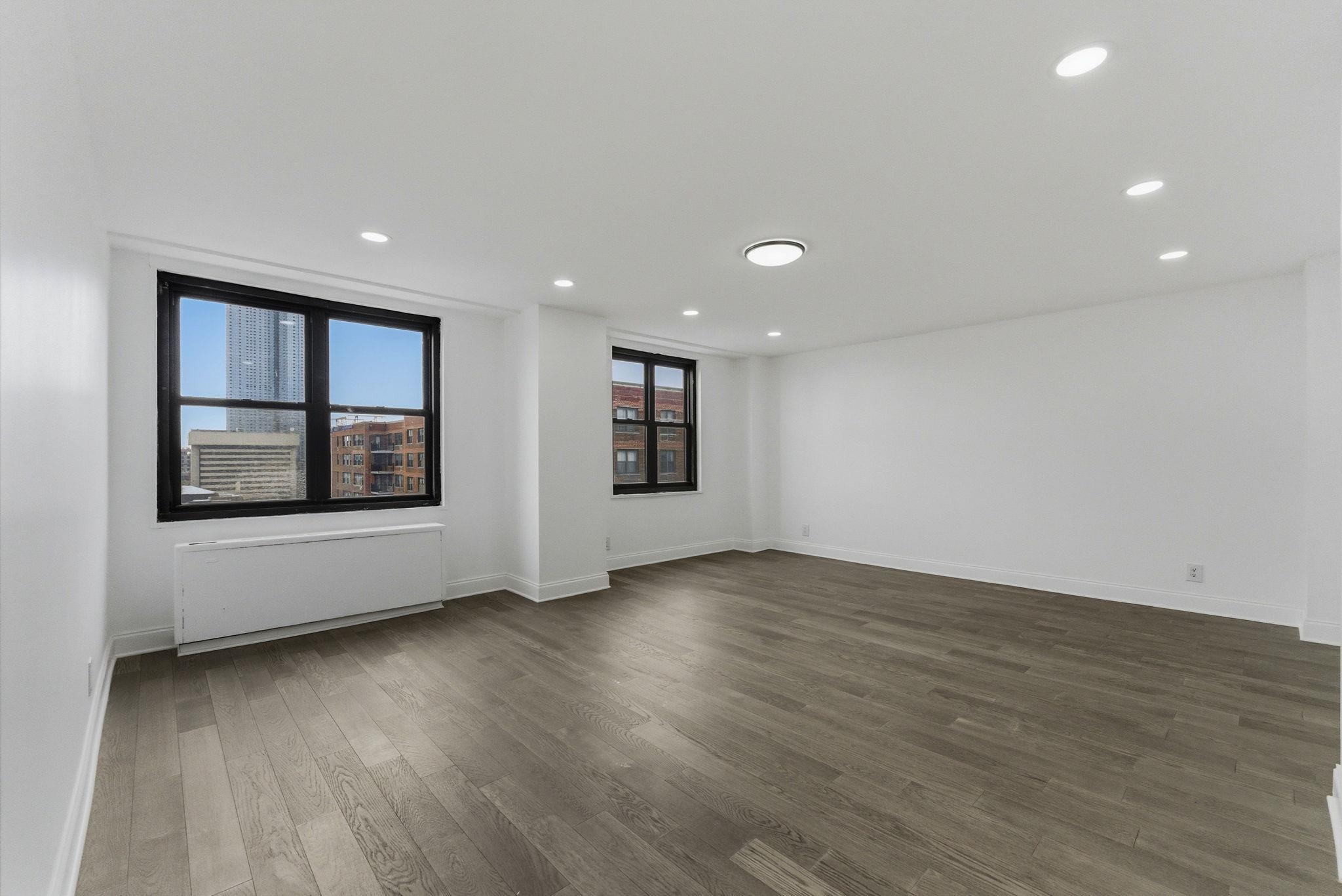 Stunning South-Facing Condo in Journal Square – Move-In Ready! Bright 554 sq ft studio unit on the 16th floor with all-day natural light and sweeping views. South exposure + kitchen windows for maximum sunshine. Brand-new kitchen: modern cabinets, granite countertops, stainless steel appliances, dropped ceiling with recessed lighting. Spa-like bathroom: fully renovated with stand-up shower. Solid engineered hardwood floors throughout + new electrical panel. 24-hour concierge, reserved parking available, outdoor swimming pool, meditation garden, playground, and gym. Prime location in booming Journal Square — quick PATH/buses to Manhattan (minutes away). Perfect for urban living with luxury finishes and unbeatable convenience. Turn-key and ready for you! Schedule your viewing today!