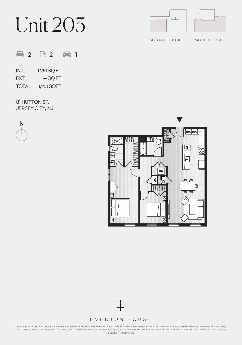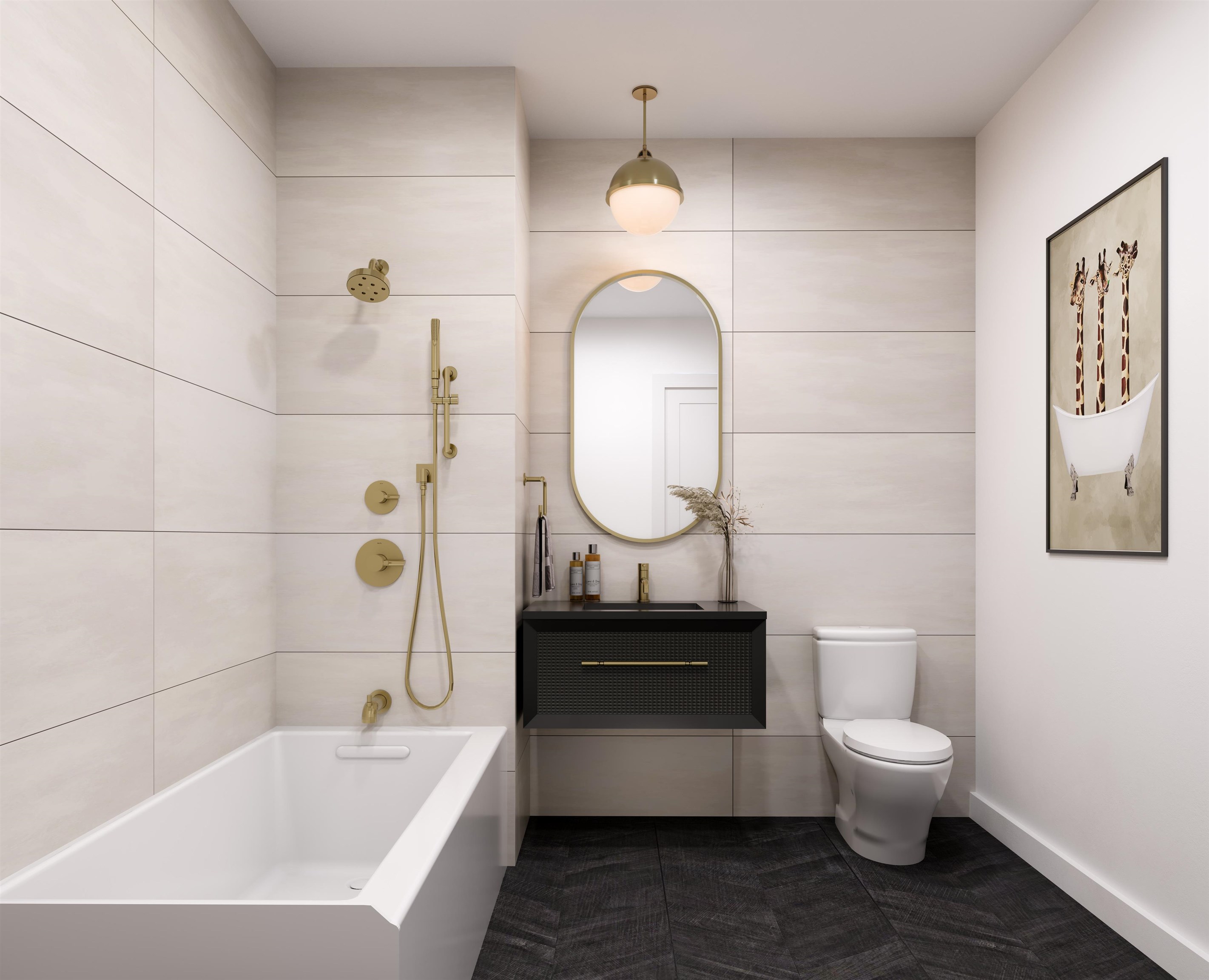Welcome to Everton House. A nine-residence elevator building in Jersey City Heights, distinguished by curtain-wall glass imported from Spain, creating light-filled interiors with sweeping views of New York City. Everton House offers two, three, and four-bedroom residences, with select homes featuring private outdoor spaces and all residents enjoying access to a shared rooftop. Interiors are defined by dramatic ceiling heights and thoughtfully considered layouts. Kitchens are outfitted with JennAir appliances, including signature Black Obsidian interiors and a built-in coffee system. Primary bathrooms feature radiant heated floors, delivering a refined, spa-like experience. Additional amenities include garage parking with EV charging, a Swiftlane smart entry system, and a dedicated mail and package room designed for modern convenience. Renderings showcase select units and are for illustration only; actual unit details may vary.