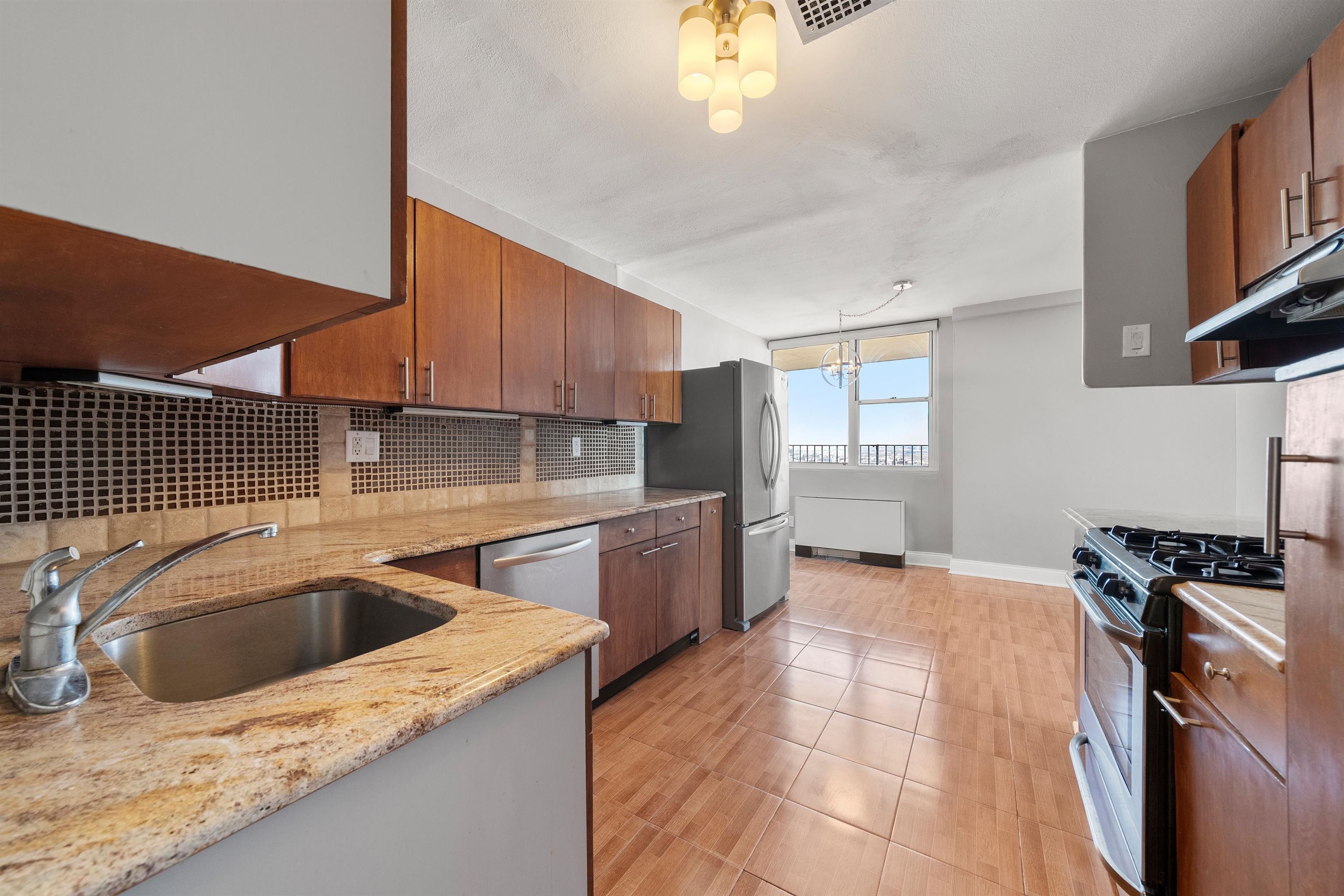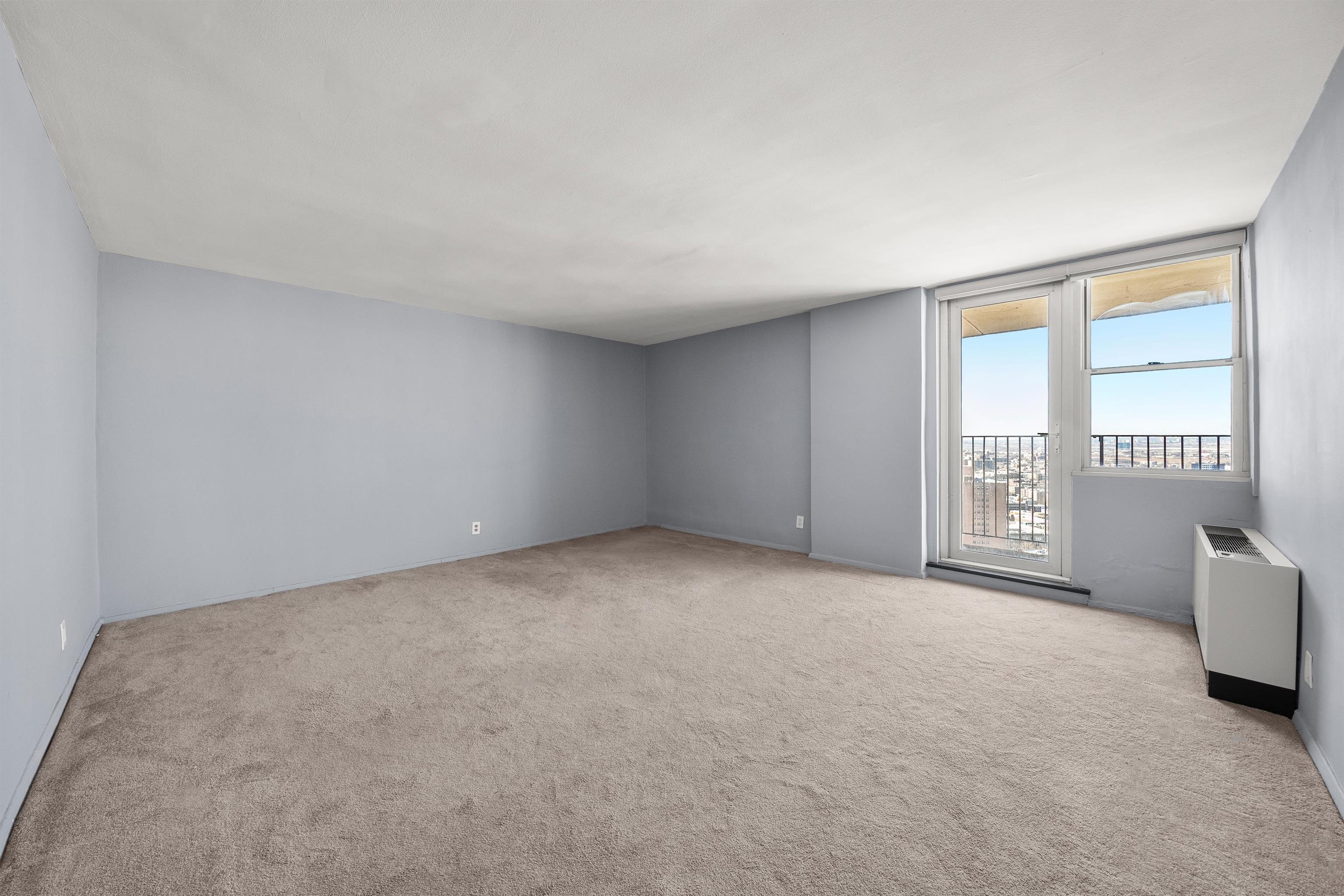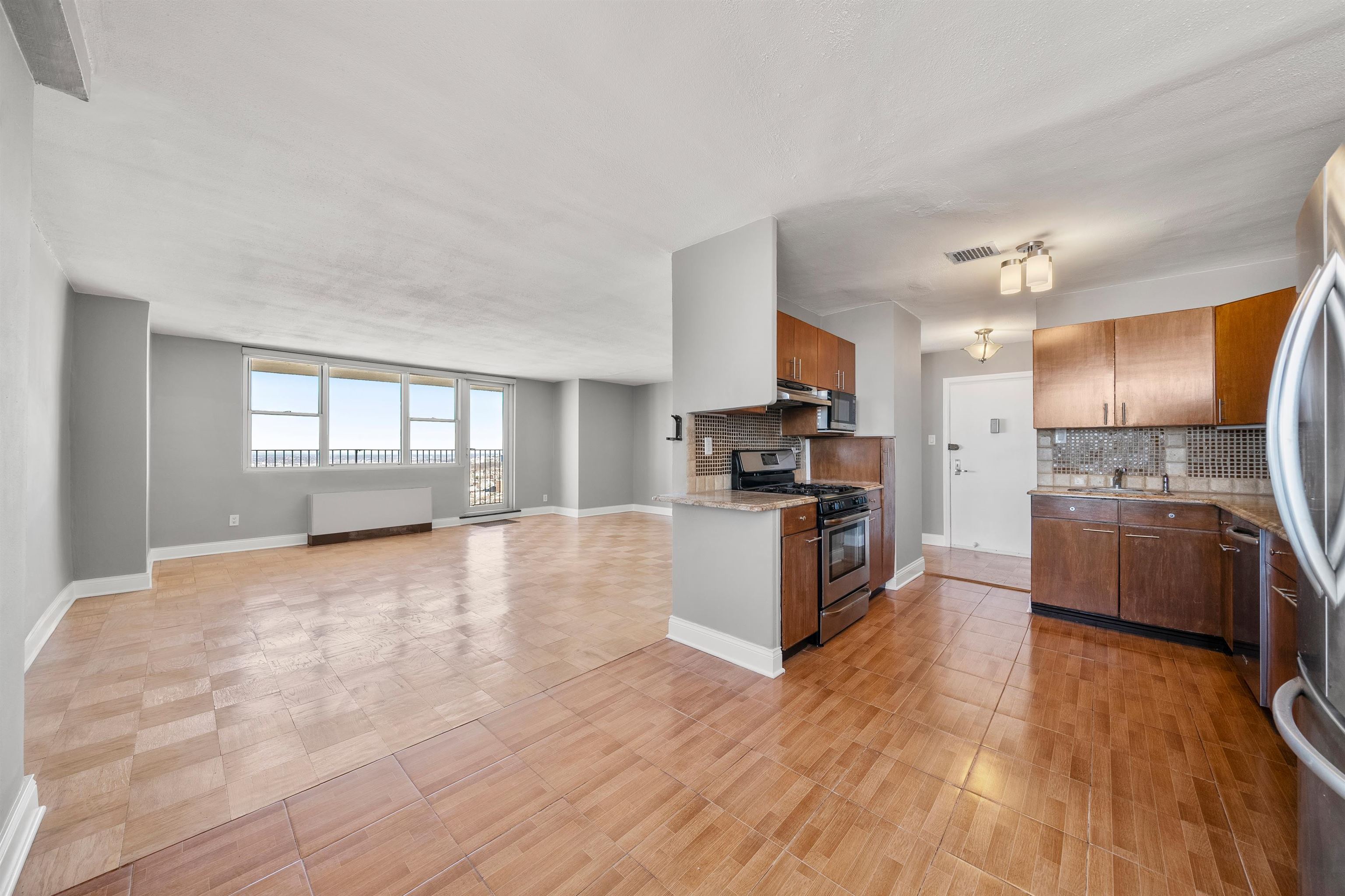 Welcome to this well-maintained penthouse 1-bedroom co-op in the prestigious Riviera Towers, offering unmatched panoramic-north views of New Jersey and up to the George Washington Bridge. Set up high on the 34th floor, this spacious unit features large windows that flood the living space with natural light. Riviera Towers is a full-service building with 24-hour doorman, fitness center, outdoor swimming pool & much more. Commuting is effortless with easy access to NYC via NJ Transit bus. Maintenance TOTAL including taxes, basic utilities & reserves is ($1,598.40) + a capital repair assessment that runs until Oct. 2026 ($746.40) is $2,344.80. Cable & Internet is available at an additional $38.00 per month. An all cash purchase requires a minimum income of $85,000/year. Subject to board approval: Min 10% down, 3-to-1 Income-to-Debt Ratio.
