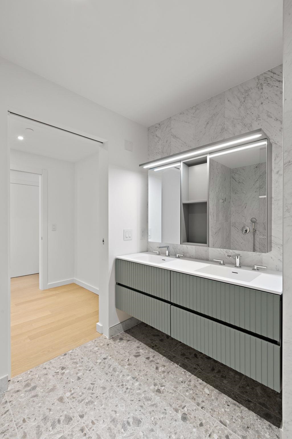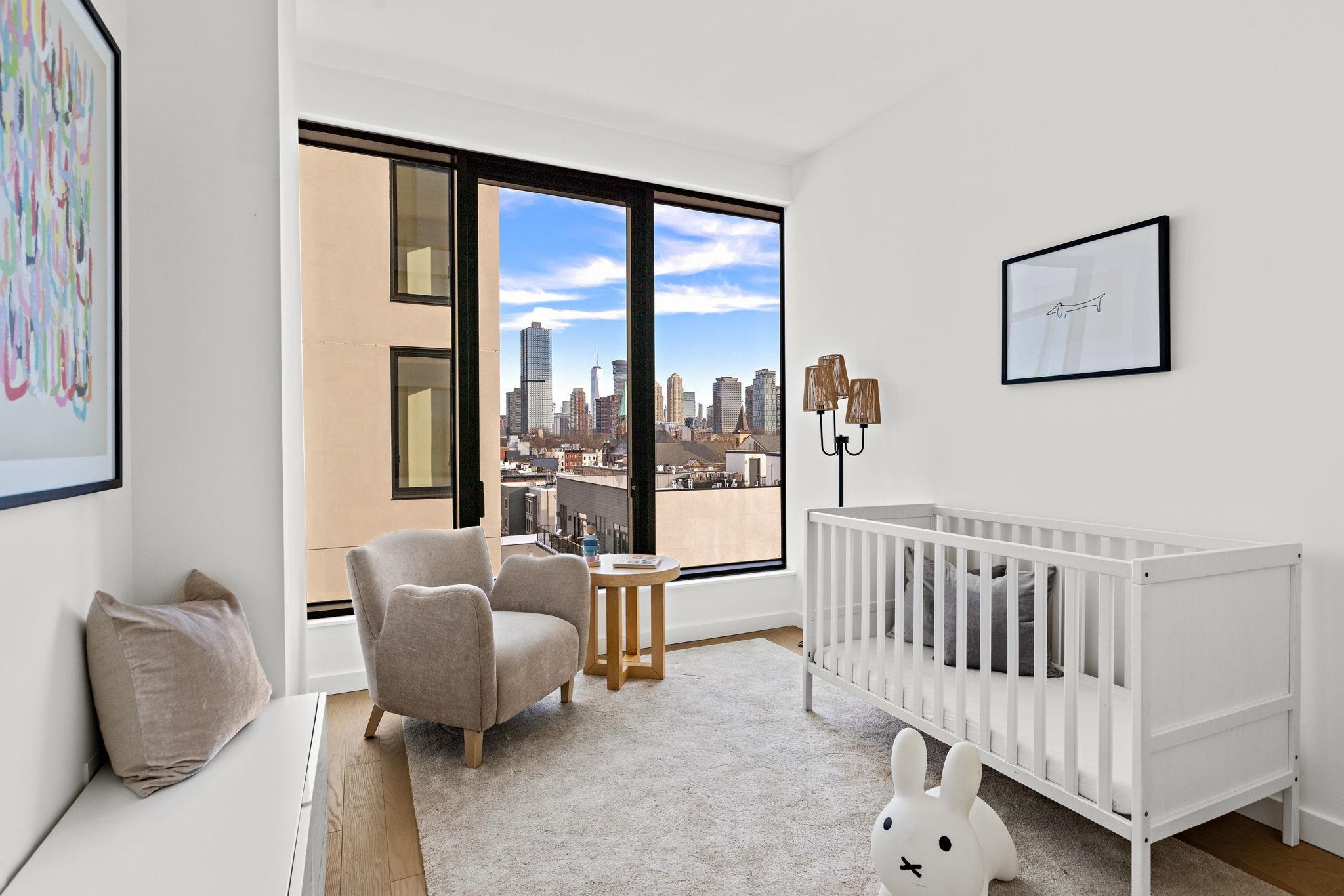 East Facing Two Bedroom with World Trade Center Views! One Jones Park – an extraordinary collection of 75 exclusive residences at 387 8th Street in Jersey City’s prestigious Hamilton Park, where incredible artisanship elevates urban living to unprecedented heights. Overlooking the greenery of Enos Jones Park, this architectural gem is nestled in a thriving neighborhood defined by tree-lined streets, an authentic community spirit, and proximity to some of Downtown Jersey City’s most coveted restaurants, cafés, transportation hubs, and entertainment destinations. Each meticulously crafted 1- to 3-bedroom home showcases the finest materials sourced from Italy’s most revered artisans. The gourmet kitchens feature bespoke Meson’s cabinetry with rich wood-textured melamine finishes and premium quartz surfaces throughout. World-class Bosch and Miele appliances complete the culinary experience. Premium Garbelotto 4¾" oak engineered hardwood floors embody centuries of European craftsmanship and flow throughout each residence. The stunning Italian marble bathrooms showcase grand 12" x 24" format stone. Barausse entry doors and Viva interior doors frame each space with architectural distinction. Residents enjoy white-glove service with a 24-hour doorman, a state-of-the-art fitness center, children’s playroom, and a spectacular rooftop lounge offering commanding views of Manhattan’s iconic skyline, Hoboken’s waterfront, and Journal Square’s dynamic horizon. Precision-engineered Schüco windows maximize natural light, while luxury Kohler fixtures throughout the bathrooms provide daily indulgences worthy of the world’s finest hotels. With preferred parking available on-site, One Jones Park represents more than a residence—it’s a statement of refined living, enhanced by Italian excellence, and surrounded by one of Jersey City’s most dynamic and desirable communities. One Jones Park. Home to the New buyer. These homes are available for immediate occupancy! The renderings used are for illustrative purposes to show finishes of units and building.