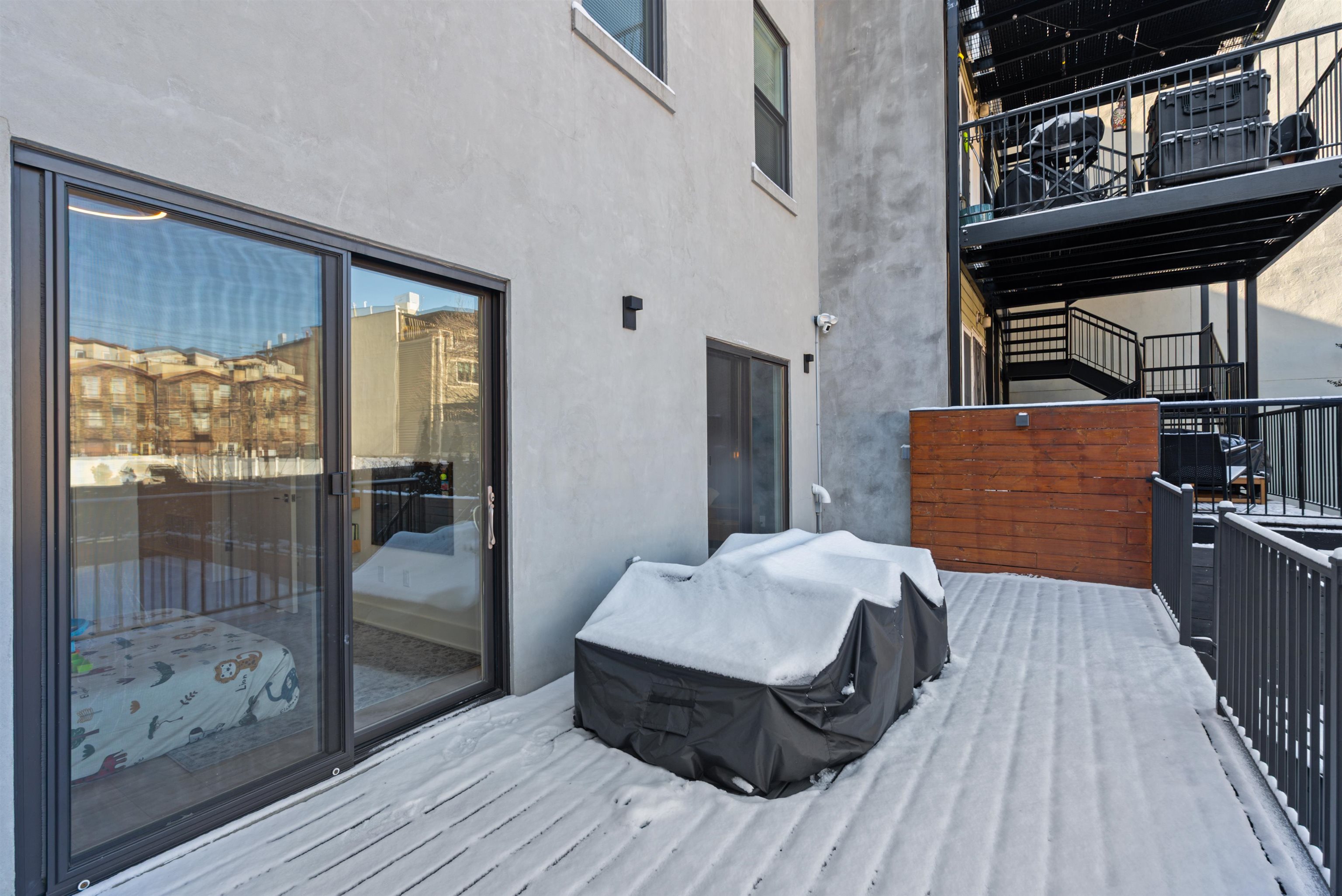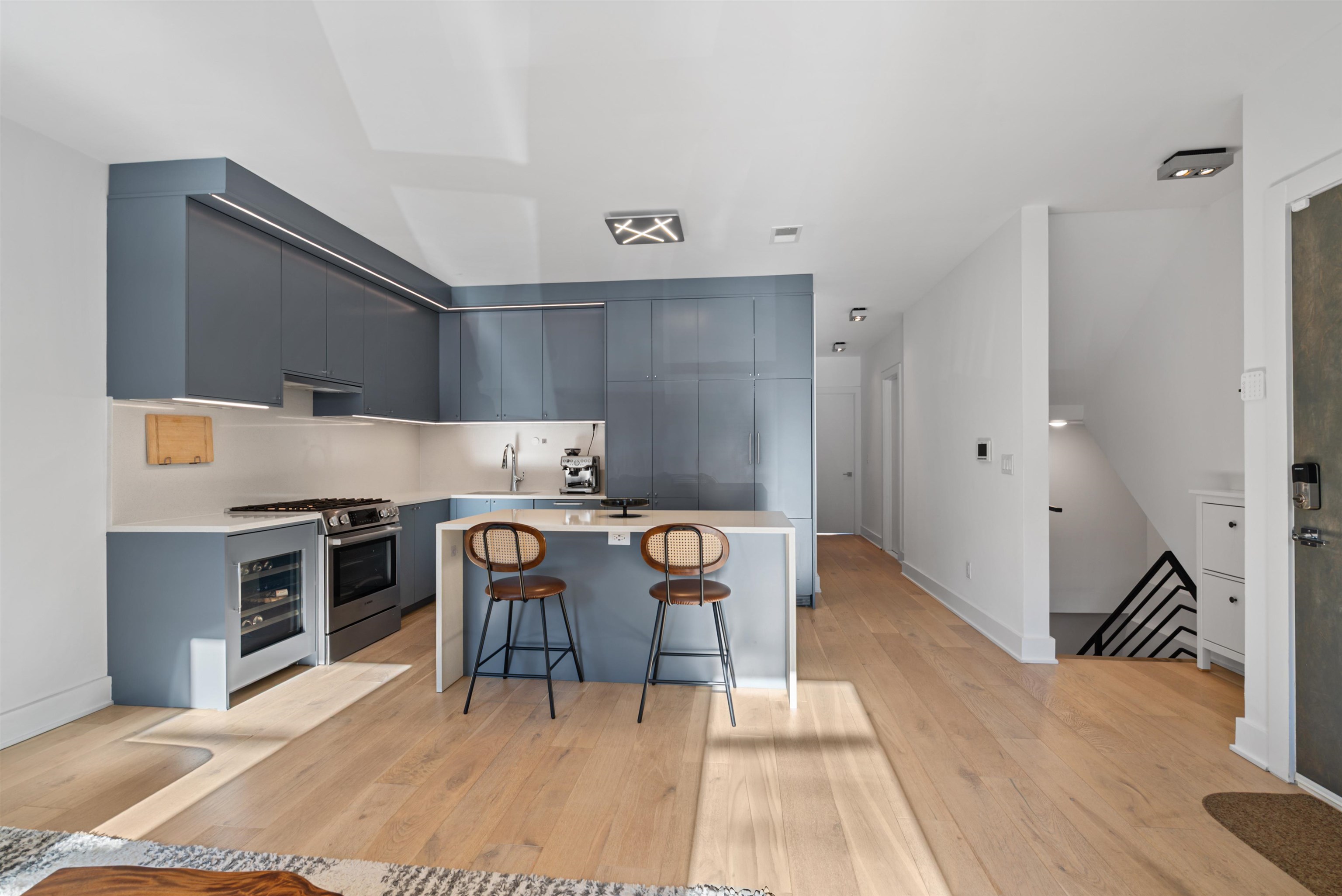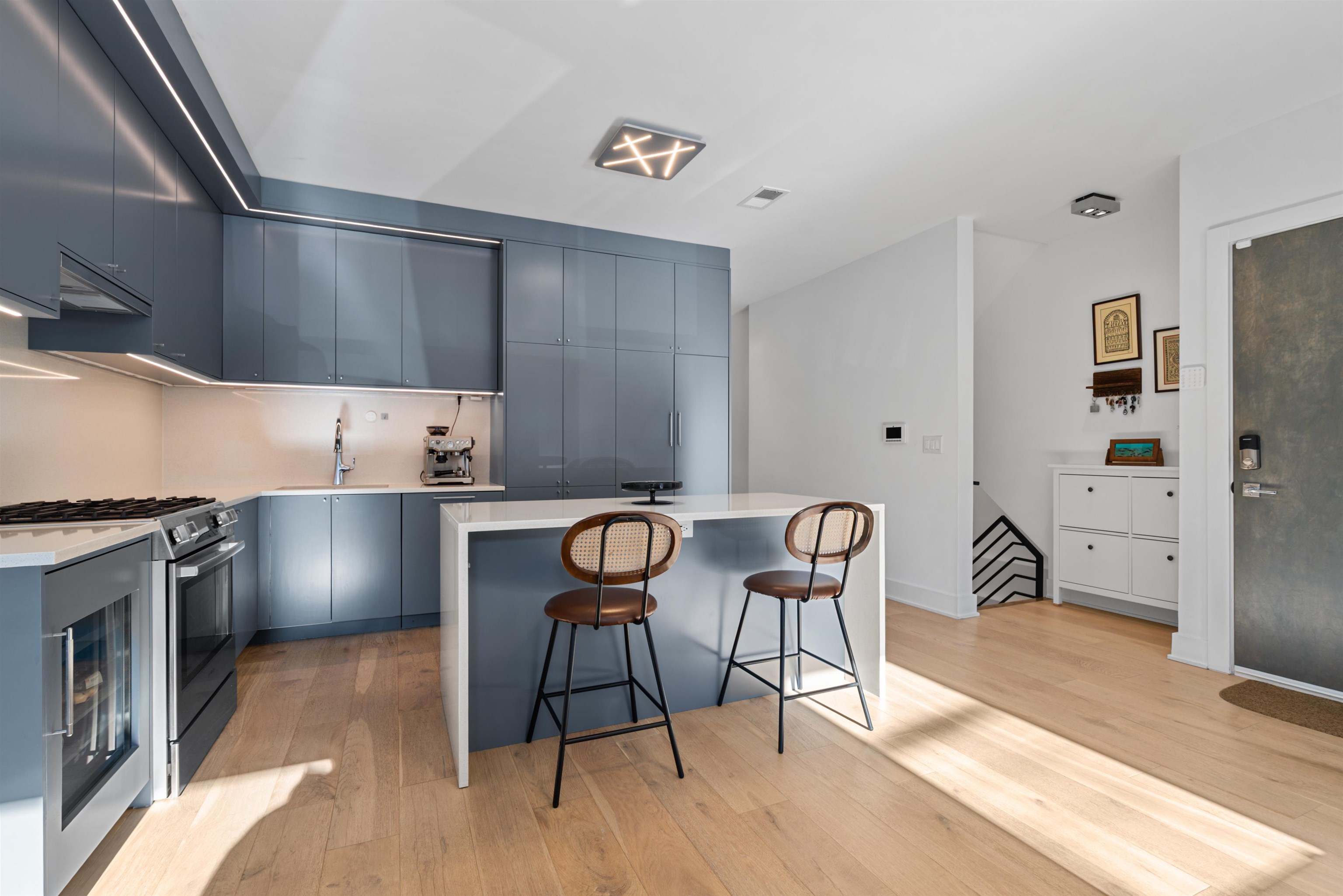 This stunning 2,000+ SF duplex condo perfectly combines modern design, functionality, and comfort in one of Jersey City’s most desirable locations—just around the corner from the Grove Street PATH Train Station, making it a true commuter’s dream. Featuring two private entrances, two full kitchens, and three luxurious full bathrooms, this home offers exceptional flexibility for entertaining, extended stays, or multi-generational living. The main kitchen is a showpiece, boasting a custom panel refrigerator, wine cooler, dishwasher, and a cleverly designed pantry with a hidden built-in microwave. Elegant finishes and a fully open layout make this residence perfect for gatherings with friends and family. The bathrooms are dressed in large-format Porcelanosa tiles, offering a spa-like ambiance throughout. With over 1,200 square feet of outdoor living space, including your own private deck and backyard oasis, you’ll enjoy an effortless blend of indoor-outdoor living—ideal for relaxing or entertaining in style. The flexible layout includes three spacious bedrooms, multiple living areas, and the feel of two separate homes under one roof—ideal for hosting guests or creating private spaces for work and leisure. A rental garage located just around the corner adds everyday convenience to this extraordinary home. From the impeccable finishes to the thoughtful design, every detail has been carefully curated for modern living. This property will steal your heart away!