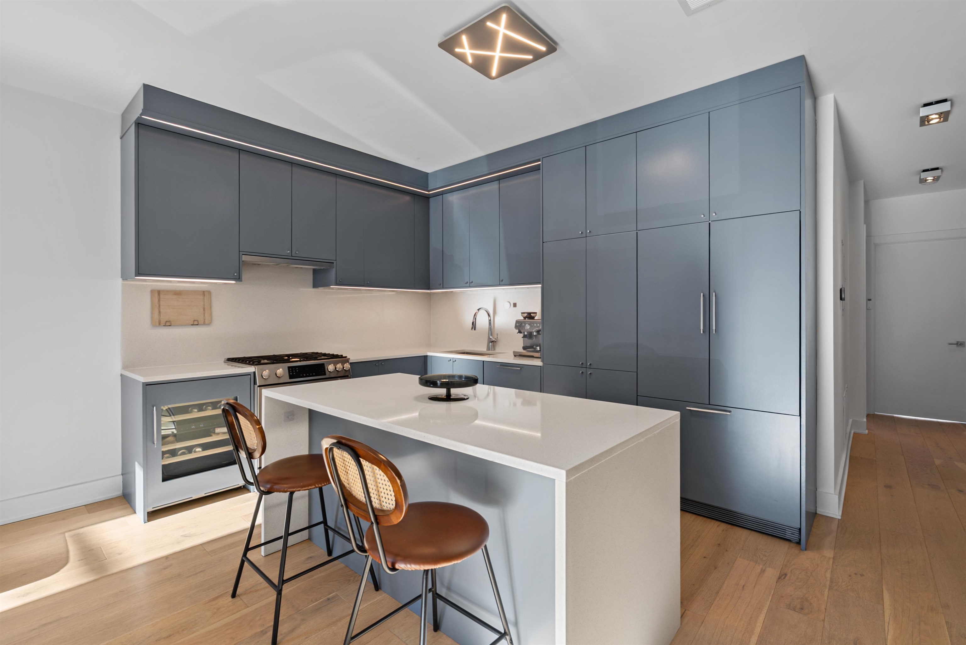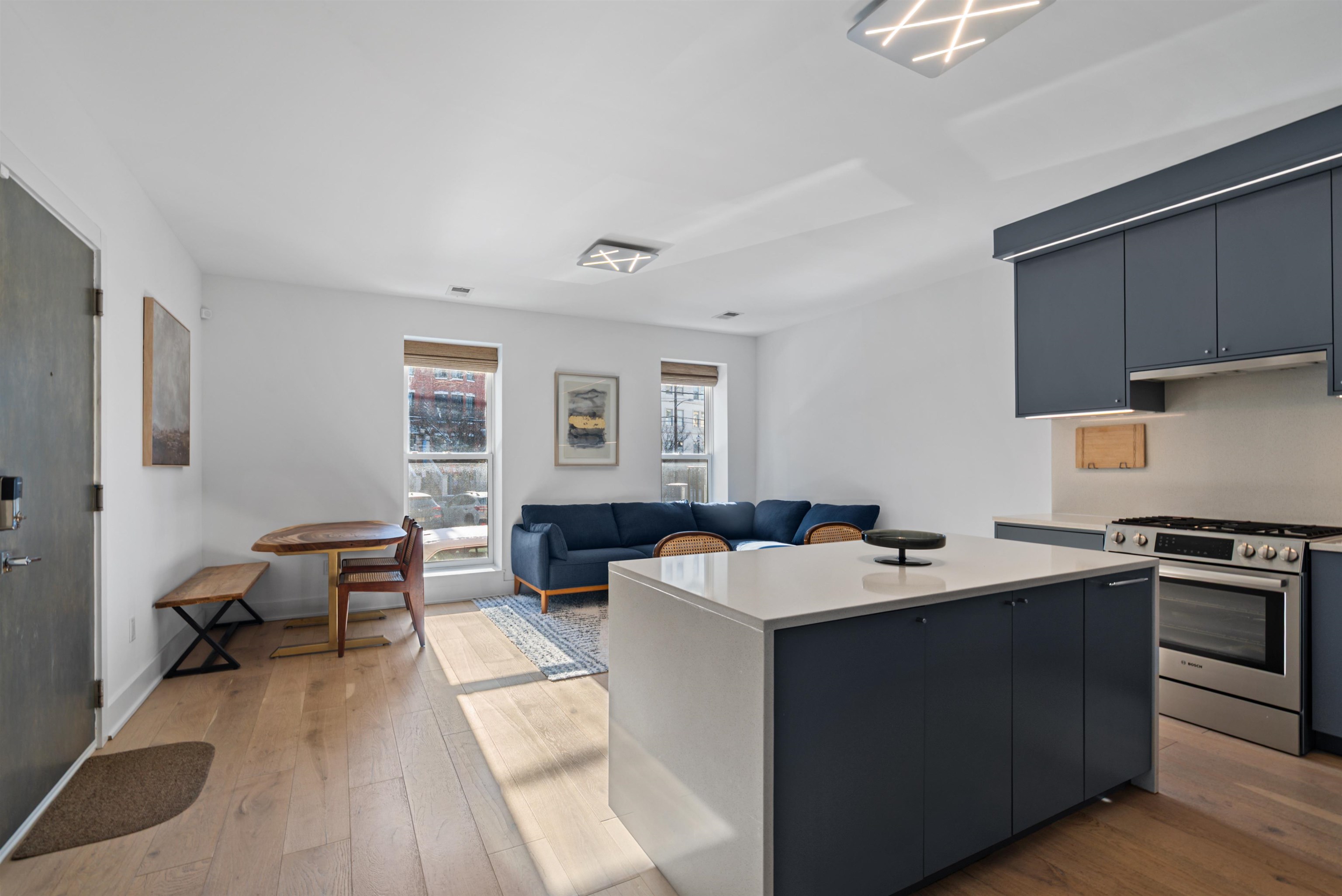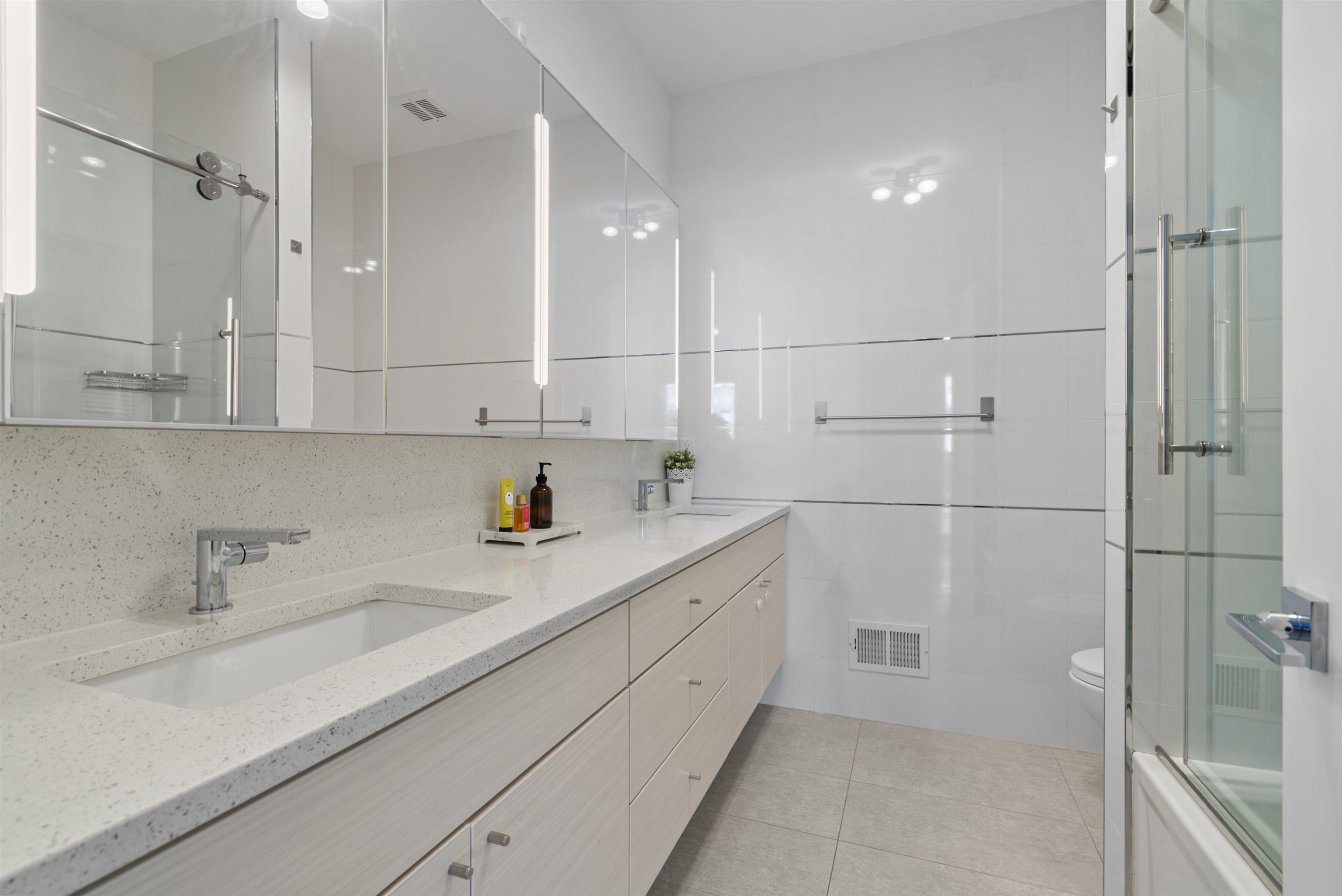 This stunning 2,000+ SF duplex condo perfectly combines modern design, functionality, and comfort in one of Jersey City’s most desirable locations—just around the corner from the Grove Street PATH Train Station, making it a true commuter’s dream. Featuring two private entrances, two full kitchens, and three luxurious full bathrooms, this home offers exceptional flexibility for entertaining, extended stays, or multi-generational living. The main kitchen is a showpiece, boasting a custom panel refrigerator, wine cooler, dishwasher, and a cleverly designed pantry with a hidden built-in microwave. Elegant finishes and a fully open layout make this residence perfect for gatherings with friends and family. The bathrooms are dressed in large-format Porcelanosa tiles, offering a spa-like ambiance throughout. With over 1,200 square feet of outdoor living space, including your own private deck and backyard oasis, you’ll enjoy an effortless blend of indoor-outdoor living—ideal for relaxing or entertaining in style. The flexible layout includes three spacious bedrooms, multiple living areas, and the feel of two separate homes under one roof—ideal for hosting guests or creating private spaces for work and leisure. A rental garage located just around the corner adds everyday convenience to this extraordinary home. From the impeccable finishes to the thoughtful design, every detail has been carefully curated for modern living. This property will steal your heart away!