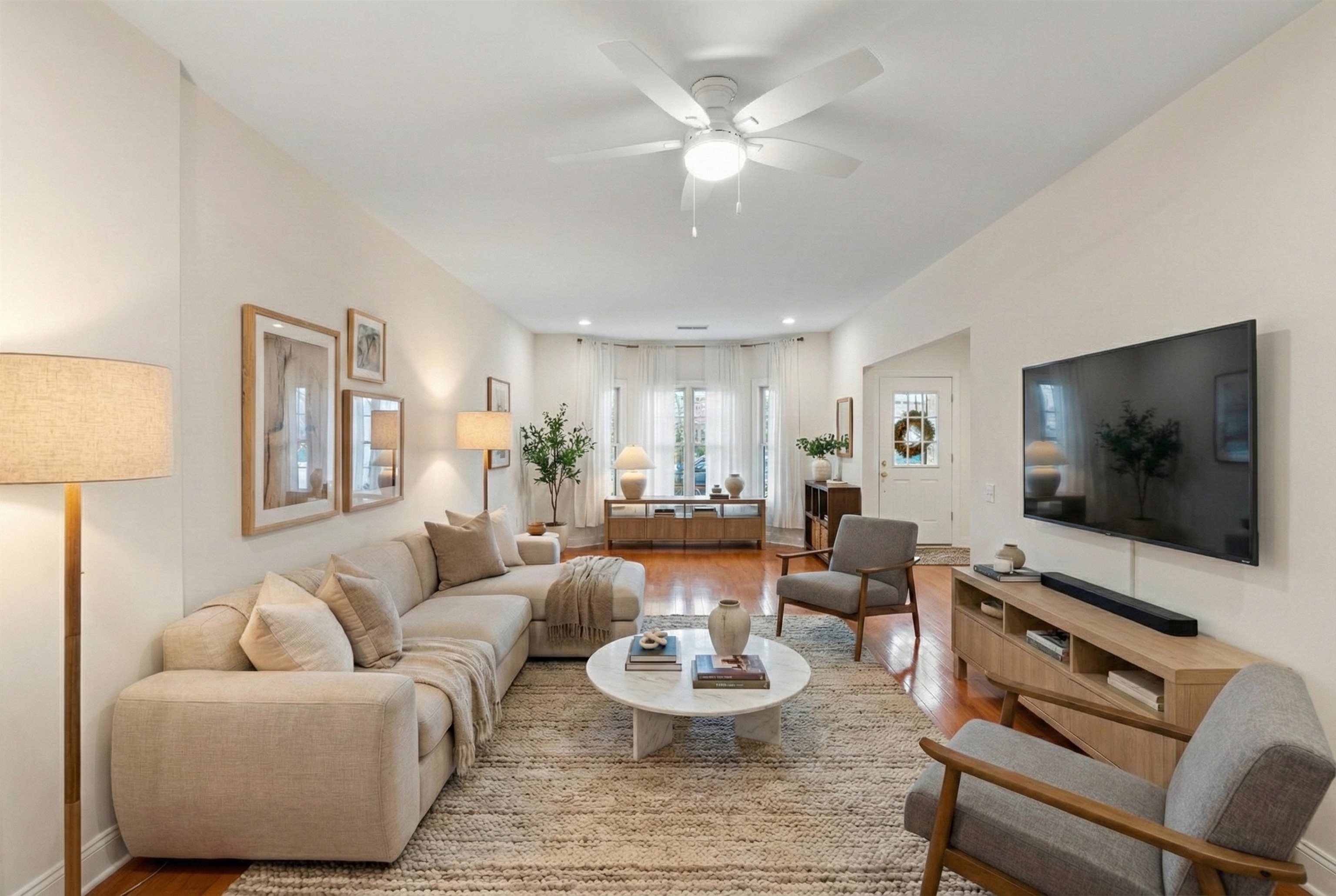 3-Bedroom Townhouse With Best Amenities for Rent in Jersey City | Port Liberte - Premier Gated Waterfront Community Spacious Rooms - Private Backyard - Parking Included - Ferry to NYC Welcome to 36 Independence Way, a bright and spacious townhouse for rent in Jersey City, located in the gated Port Liberte waterfront community. This well-designed two-story residence offers generous living space, 3 spacious bedrooms, a private backyard, and excellent commuter access ideal for those seeking comfort, flexibility, and convenience near Manhattan. Partially furnished. High-speed internet via Starlink is installed. Interior Features: -Open, sun-filled layout; -Hardwood floors throughout; -Spacious living room and formal dining room, easily adaptable as a home office or additional first-floor bedroom; -Updated eat-in kitchen with white cabinetry and direct access to a private backyard and patio; -First-floor powder room for added convenience. Upper Level: -Three well-proportioned bedrooms, including a primary suite with an oversized walk-in closet and a primary bath with dual vanities, soaking tub, and separate walk-in shower; -Another full bathroom; -In-unit washer and dryer; Community Amenities at Port Liberte: -Two assigned parking spaces included. -Weekday ferry service to Lower Manhattan and on-site shuttle to Grove Street PATH Station; -Two outdoor swimming pools; -5,000 sq. ft. fitness center with a sauna; -Tennis and basketball courts, playground, and scenic waterfront promenade; -24-hour gated security and beautifully landscaped grounds. Nearby Parks, Schools & Lifestyle Conveniences: -Minutes from Liberty State Park, offering playgrounds, open green space, waterfront walking paths, and bike trails; -Close to marinas, waterfront seating areas, and outdoor recreation; -Close to Exchange Place, Downtown Jersey City, and Paulus Hook dining and shopping -Easy access to Light Rail, PATH, ferry service, I-78, and the NJ Turnpike. No smoking. Pet policy is negotiable. Schedule your private tour today and experience one of Jersey City's most desirable waterfront townhouse rentals with space to live, work, and unwind.