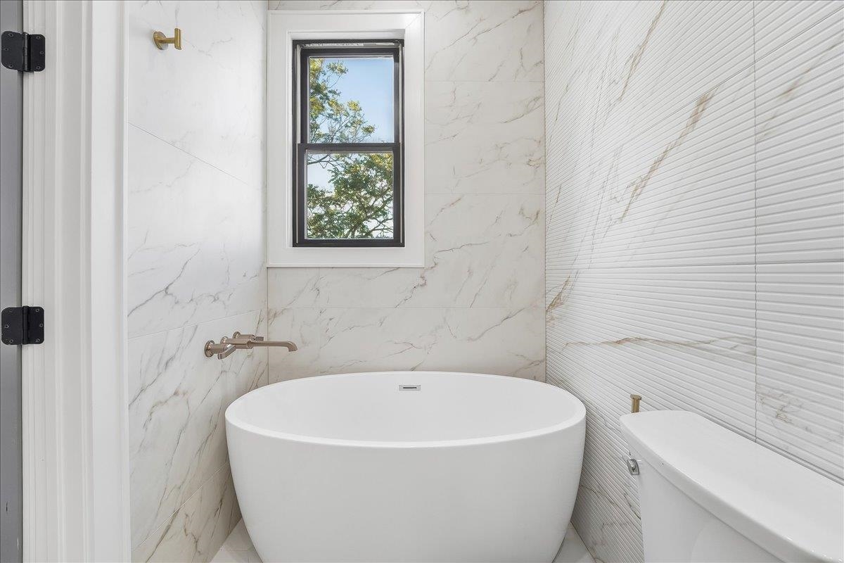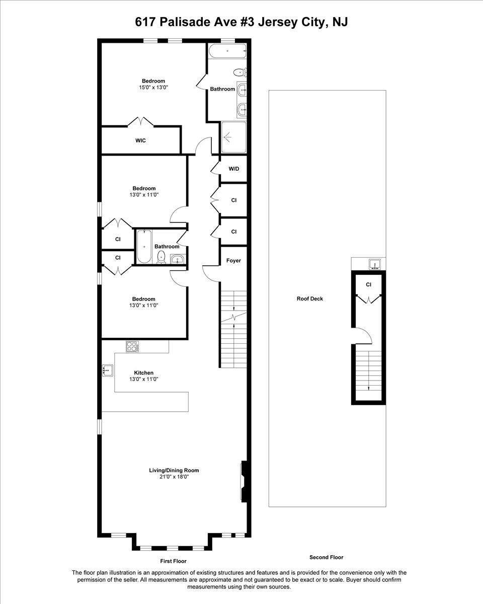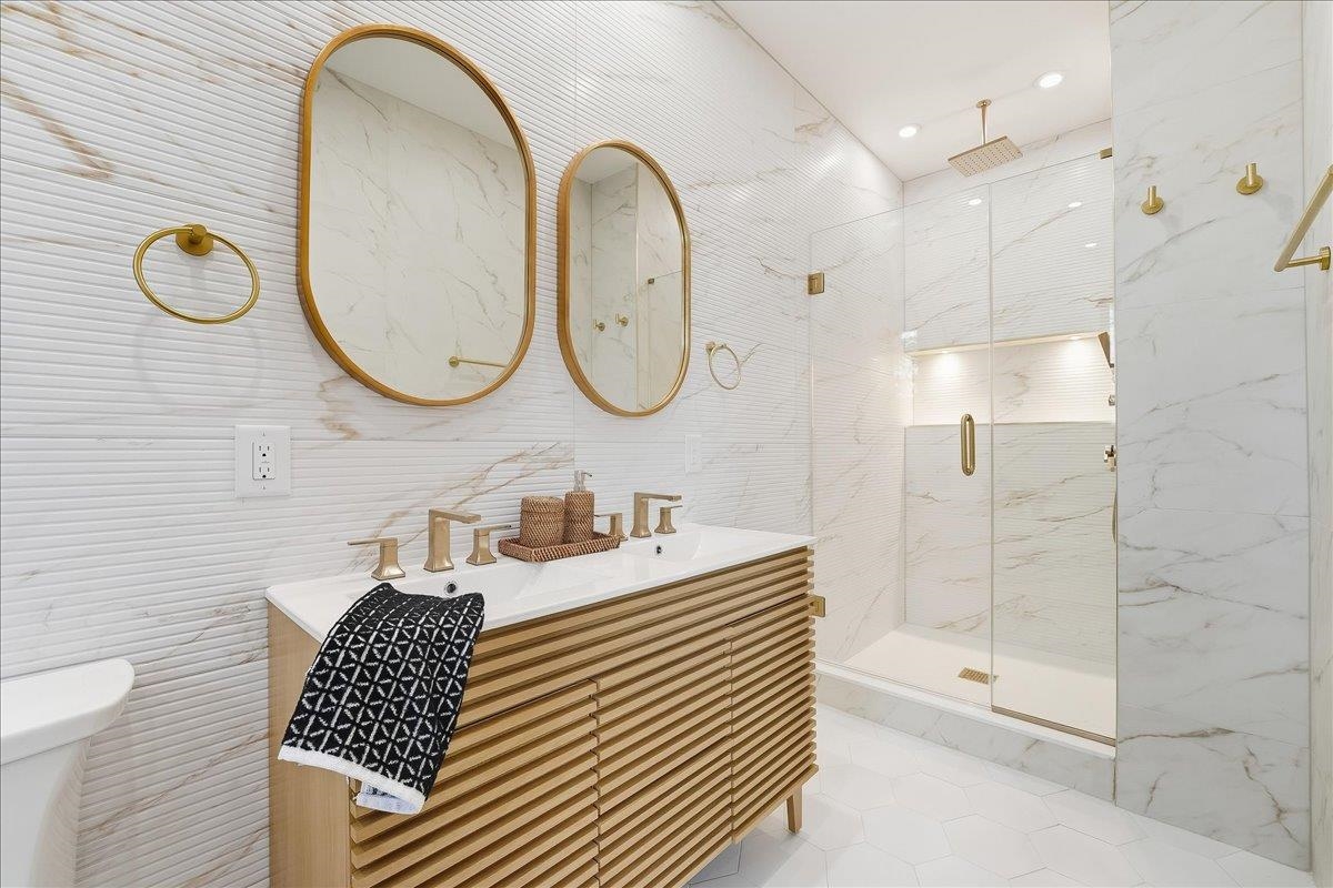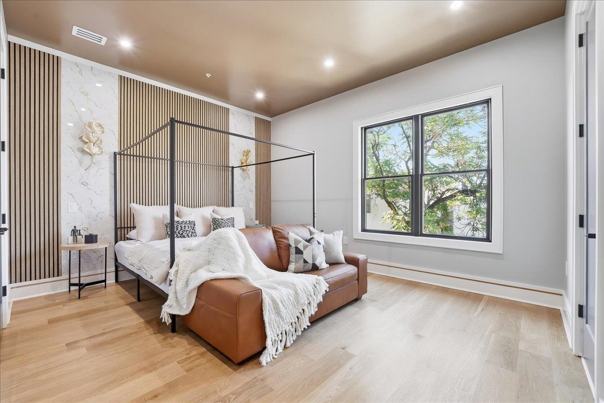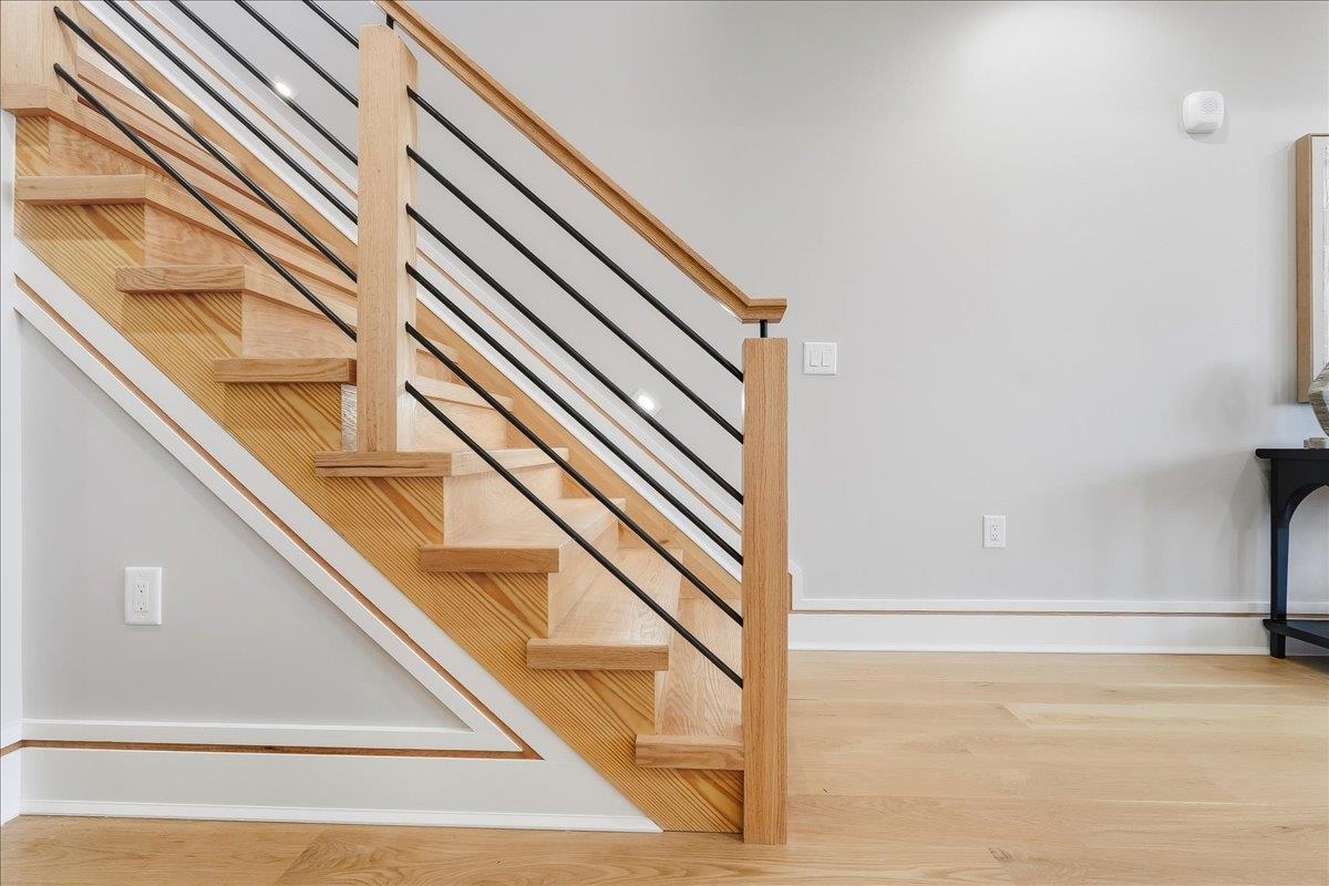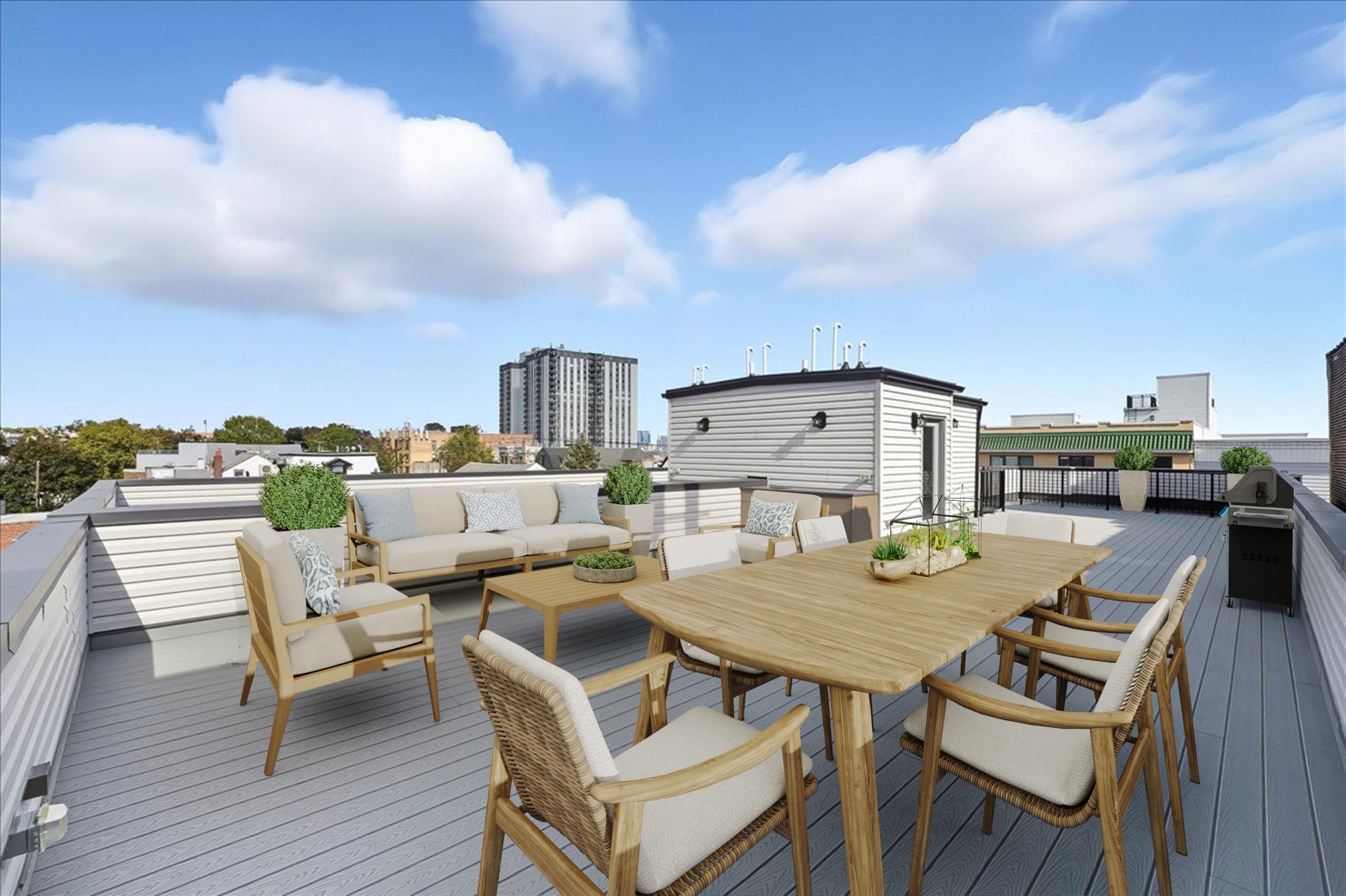 Seller offering $20K concession towards closing costs! Brand new and unexpected, this home redefines modern living with rich tones, bespoke design, and a depth of finishes rarely seen. Featuring a 3 bed, 2 bath layout, the crown jewel belongs to the 1,100 sq ft rooftop with outdoor kitchen set up *plus* sweeping NYC views. Inside, oversized windows welcome with striking scale, illuminating the 7†wide oak hardwood floors and deep-hued color-cap tray ceiling. The atmospheric fireplace is framed in pale oak and makes a statement, and includes a built-in beveled niche designed to cradle a flatscreen. The dynamic kitchen is open and inviting, with custom light-oak upper cabinetry with under lighting, peppercorn lower with matching hood and island kick-plate, tying it all together with clean white quartz countertops and backsplash. Additional finishes include Thermador appliance suite as well as a brass pot filler and matching designer pendant lighting. In the primary suite, design carries with the continued color-cap ceiling treatment, plus a fluted wood accent wall lit by mounted sconces. The bathroom brings beauty and function together with a marble-tiled wet room, where a glass-enclosed shower with niche and accent lighting compliment the freestanding soaking tub, and the spacious double vanity in the same serene space. Conscientious storage abound with fully built walk-in closets throughout for effortless everyday luxury. Set in a prime location in Jersey City Heights, this modern tan brick façade gives excellent curb appeal. Just one block to the 9th Street Light Rail elevator and beloved local favorites like Washington Park, Lil' Dove Cafe, The Cliff and more, these homes offer the best of lifestyle and location.