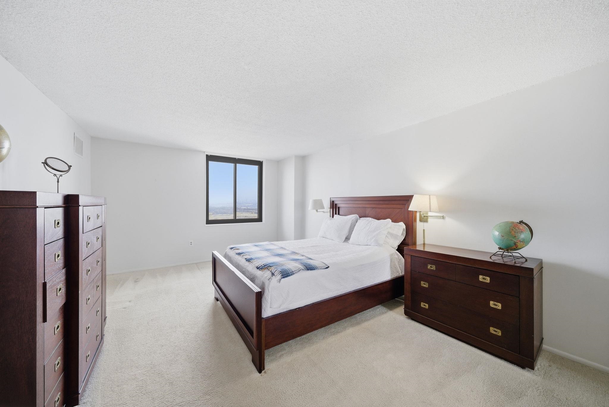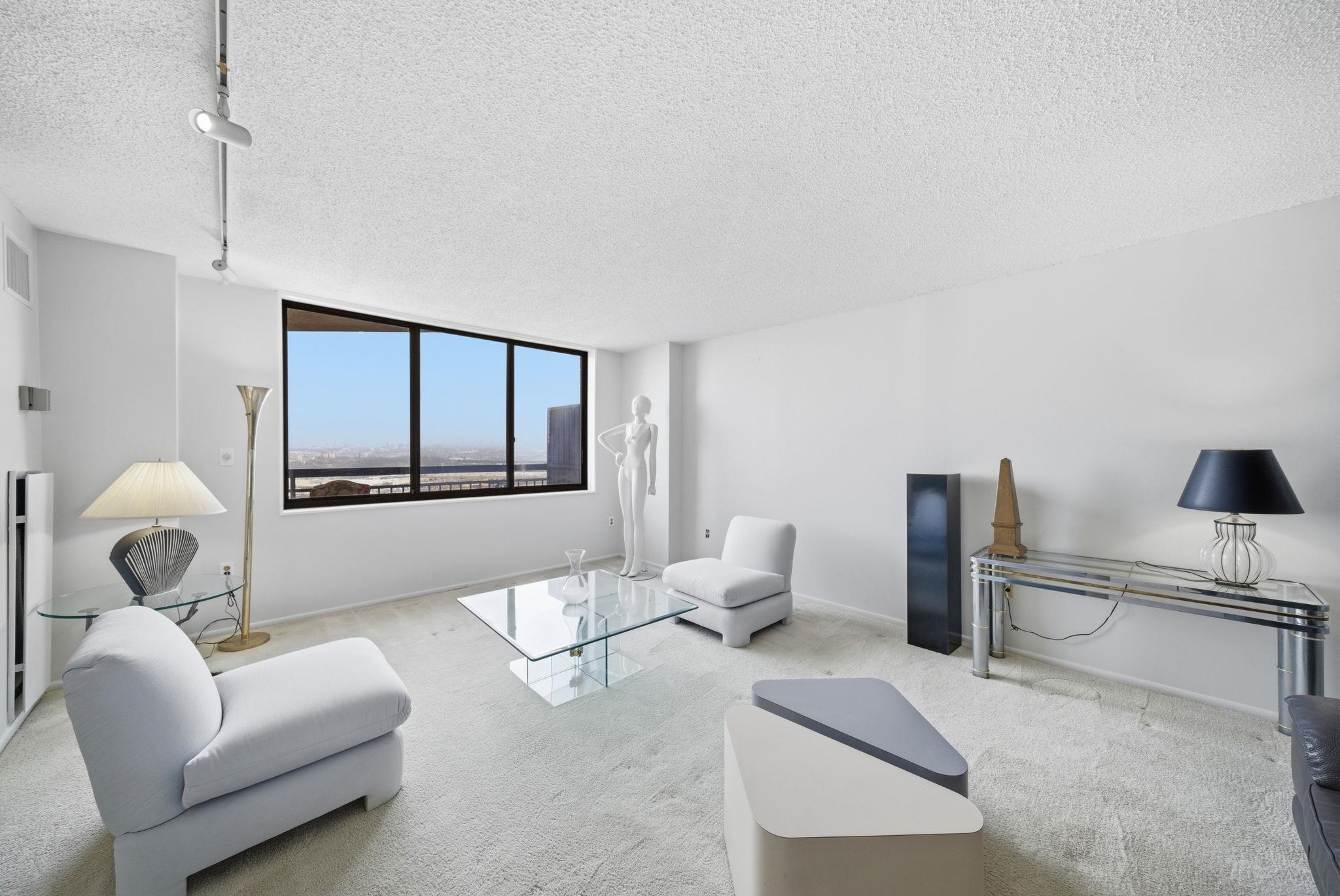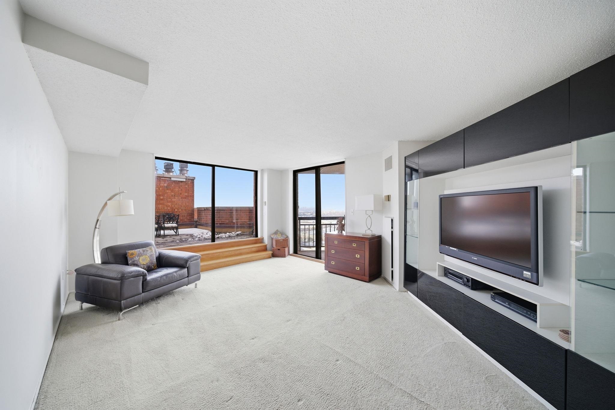 Experience the pinnacle of urban luxury in this stunning Penthouse duplex at Harmon Cove Towers. Boasting 2 bedrooms 2.5 baths, 1,853 sq. ft. of renovated living space, this 21st-floor gem features three private outdoor spaces, including a spectacular Private Rooftop Terrace with panoramic NYC Skyline views. The sun-drenched open floor plan flows seamlessly from the oversized living/dining area to a massive walk-out terrace. The chef’s eat-in kitchen is a showstopper, featuring brand-new stainless-steel appliances, granite countertops, plenty of modern cabinets and a generous pantry. Retreat to the palatial primary suite, upstairs, complete with a renovated master bathroom, private sauna, walk-in closet, walk- out terrace, and direct access to your rooftop sanctuary with spectacular NYC views—perfect for hosting BBQs, quiet sunbathing or gardening. 2nd bedroom with closet, Additional closet in the hallway, 2nd full bathroom & laundry area complete the 2nd level Freshly Painted, Only steps away from the elevator, rare floor plan, Central A/C, one deeded indoor/ covered parking space comes with the unit, in-unit Washer dryer, private & spacious bedrooms, ample closet space throughout. Enjoy premium amenities including a 24-hour doorman/ concierge, security, elevators, pool, kids' pool, gym with steam/ sauna room & locker room, tennis courts/ basketball court, game room/ recreation room, bike room, indoor kids playroom/ nursery, play area, dog park & much more. A commuter's Dream with covered bus-stop directly under the building with express NJ transit bus to NYC and proximity to Secaucus Junction. Quiet town w/ great schools, restaurants, parks, sports field, town pool, recreation center, stores etc. Great location close to NJ Turnpike, Route 3 & Newark Airport, NYC, MetLife Stadium & American Dream Mall.