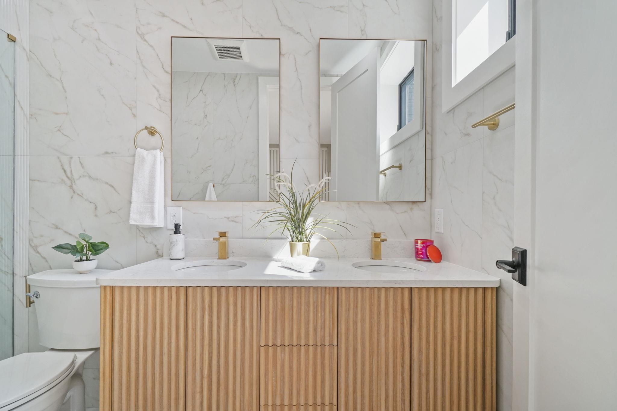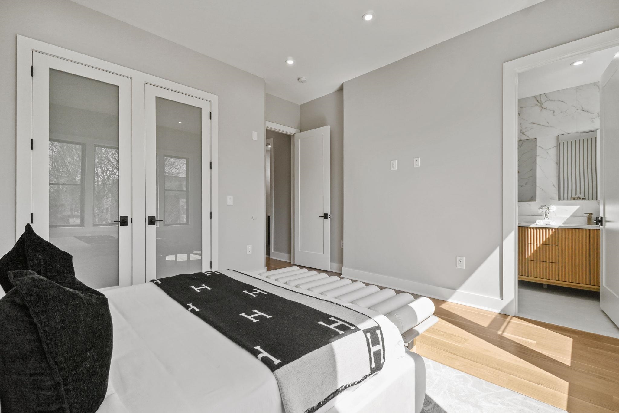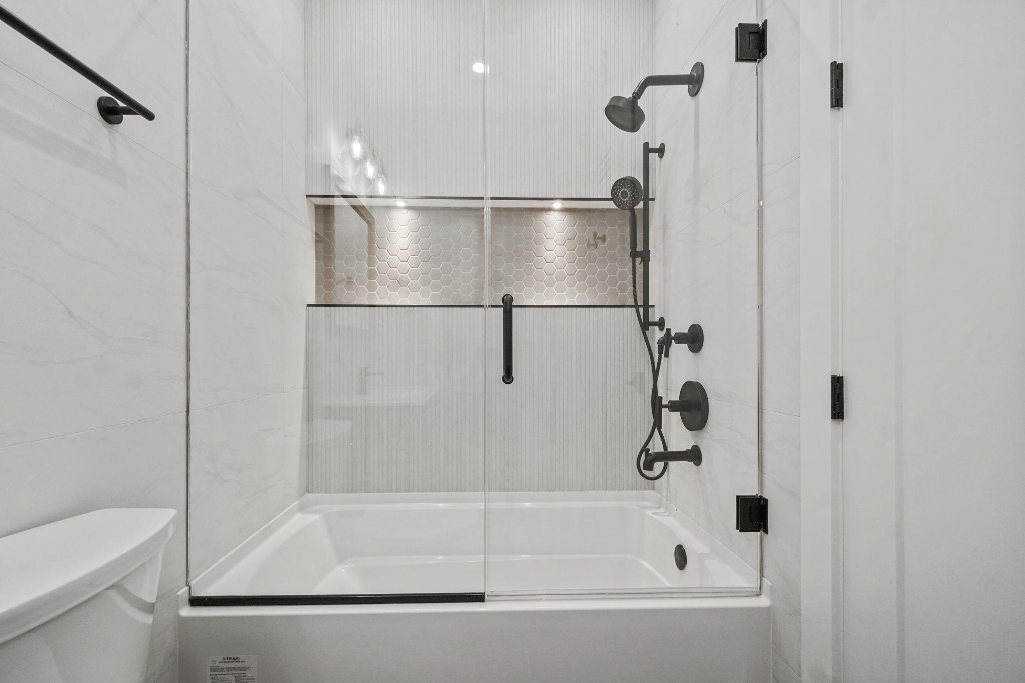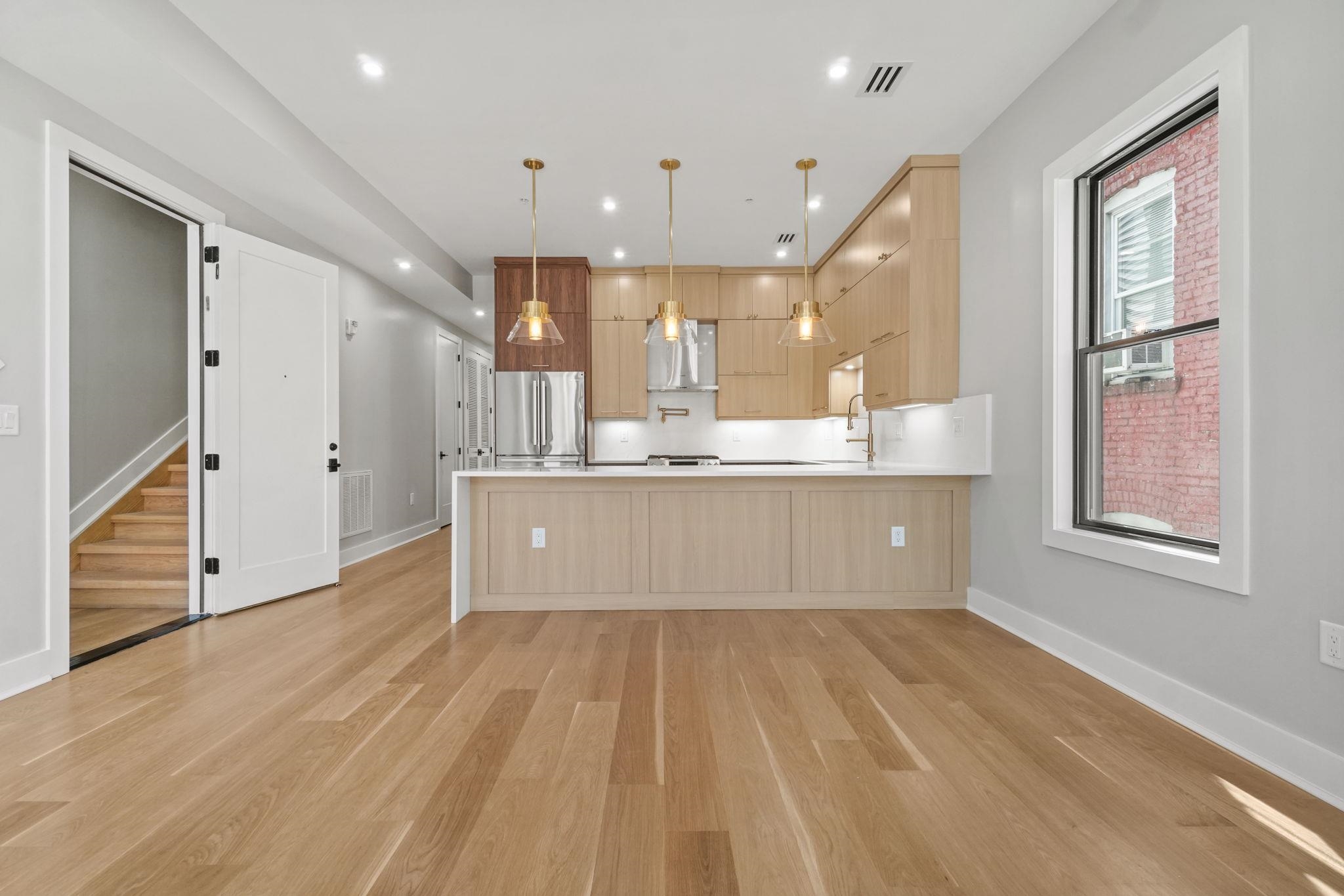 Seller offering up to 2 years of fenced in parking at 156 Central Ave! Welcome to 160 Central Ave Unit 2, a premier high-end new construction condo from NKAY Developers in the heart of Jersey City Heights, conveniently located across from Pershing Field Park. This second floor unit features 3 bedrooms, 2 full baths, balcony, and secure rental parking just 2 doors down. Sleek kitchen is designed with top of the line stainless steel Bosch appliances including dual zone wine fridge, quartz waterfall counters and backsplash, oversized stainless steel sink, two-tone custom cabinetry, pot filler, stylish gold hardware and fixtures, and high-end pendant lighting. West facing living and dining room are complete with a fireplace framed with custom millwork, oversized Andersen windows, and a large closet under the stairs for additional storage. Main bedroom suite faces east and offers ample natural light from the sliding glass door to the balcony. The bedroom boasts a custom millwork accent wall with dual pendant lighting, and walk-in closet with high-end custom built-in shelving and cabinets. Ensuite bathroom offers an oversized double vanity, floor-to-ceiling large format tiles, dramatic warm accent lighting, and a top of the line waterfall shower, complete with sprayer and jets. Each of the additional 2 bedrooms feature high end custom built-in closets. Washer/dryer in unit add to the convenience of the home. The home is equipped with a smart doorbell, keyless entry, Legrand smart dimmers, and energy-efficient Nest thermostats. The exterior facade has been designed with modern yet timeless features, exterior lighting, professional landscaping, and a fenced-in front yard. The property comes with a 10-year warranty. Please note that square footage is approximate. Amazing location is just steps from tons of restaurants, shopping, transit options to the city, and the 13-acre park with a trail/path, reservoir, multiple sport fields, heated pool, ice rink, and much more!
