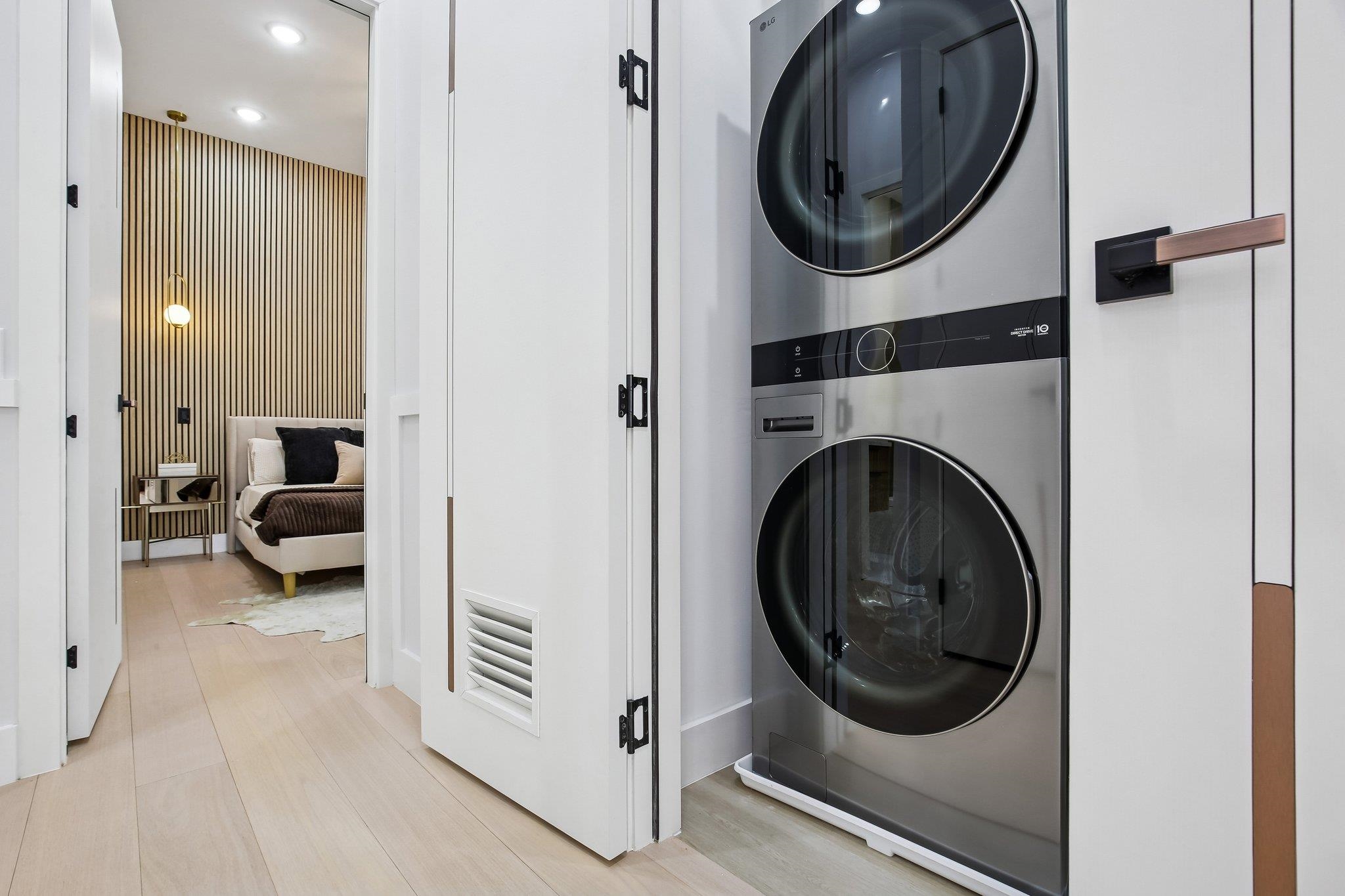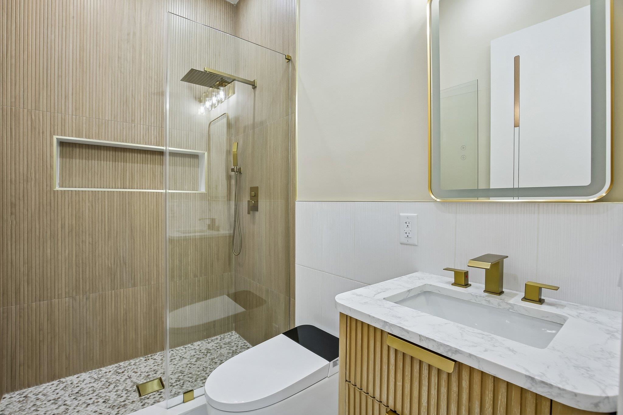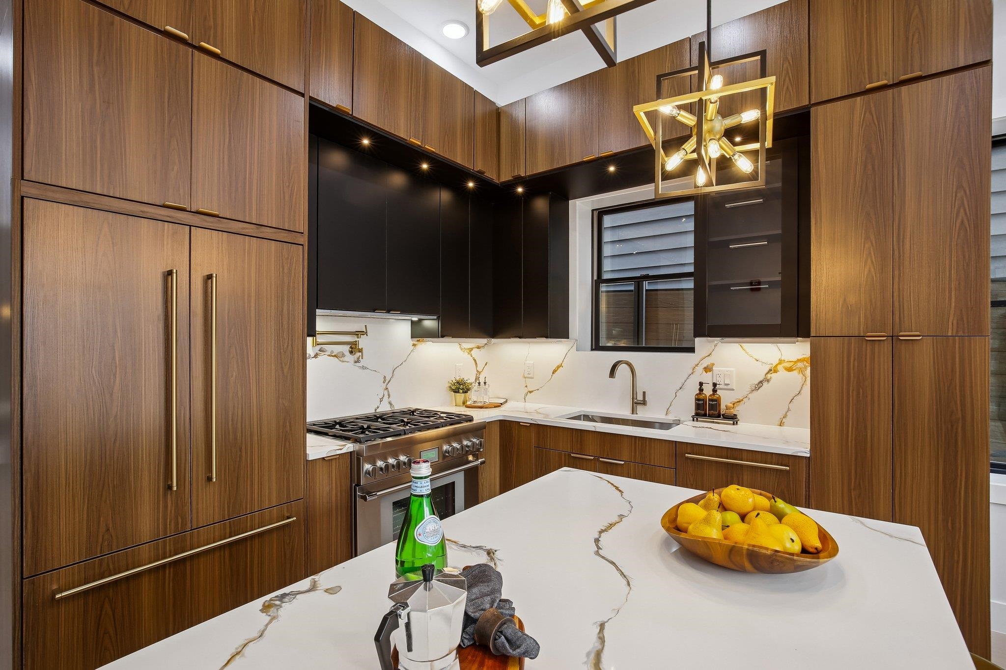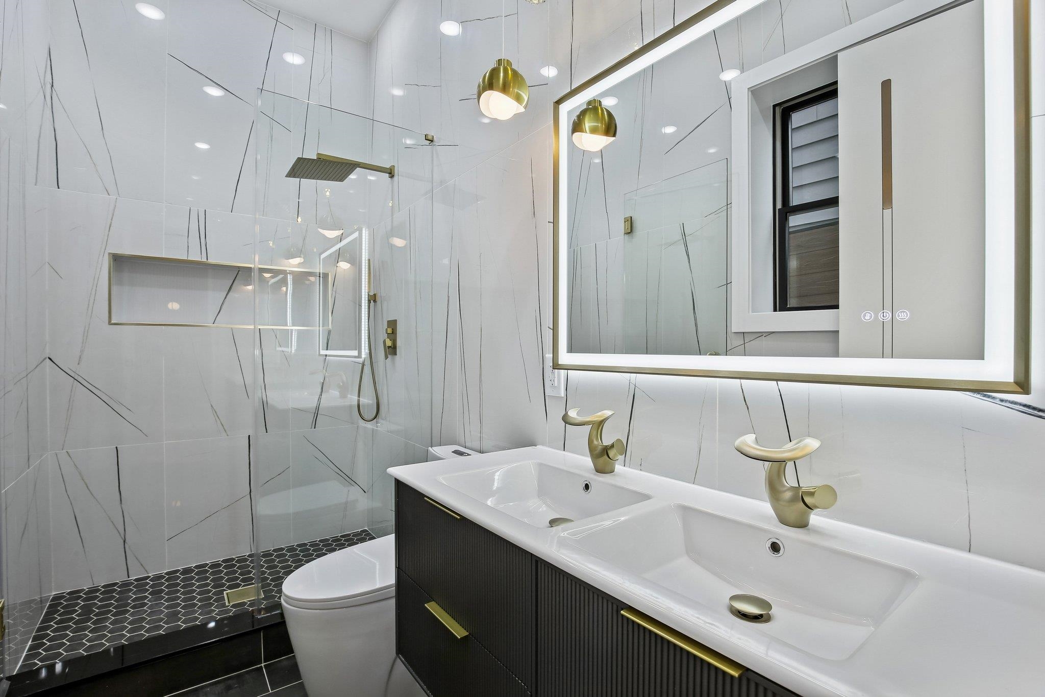 A statement in modern luxury, this newly constructed three-bedroom, two-bath residence is set on one of the most coveted streets in the prestigious Island section of Journal Square. Offering approximately 1,363 square feet of impeccably curated interiors, this PRIVATE BACKYARD home delivers a rare blend of architectural scale, refined finishes, and seamless indoor–outdoor living. Beyond a striking nine-foot custom entry door, the home unfolds into a dramatic open-concept living and dining space framed by soaring 12-foot ceilings and expansive Andersen windows that flood the interior with natural light. Six-inch wide-plank hardwood floors in a soft, contemporary finish enhance the airy, loft-like ambiance, while a bespoke electric fireplace anchors the space with understated elegance—equally suited for intimate evenings or elevated entertaining. The chef’s kitchen is designed to impress. Custom soft-close oversized cabinetry, quartz countertops, and a designer tile backsplash complement a substantial center island ideal for gathering. A full suite of premium Thermador appliances—including a concealed double-door refrigerator and six-burner professional range—offers both performance and polish for the discerning culinary enthusiast. The primary suite serves as a tranquil retreat, complete with a custom walk-in closet and a spa-inspired bath featuring a sleek rain shower and sophisticated designer finishes. Two additional generously scaled bedrooms provide oversized custom closets and abundant natural light, offering flexibility for guests, family, or a private home office. A true rarity in this market, the expansive PRIVATE BACKYARD extends the living experience outdoors—perfect for al fresco dining, curated entertaining, or serene morning coffee. Central heating and cooling and elevated finishes throughout complete the offering. Ideally positioned moments from downtown Jersey City and convenient NYC transportation, as well as neighborhood parks, cafés, and dining destinations, this residence presents a refined urban lifestyle defined by privacy, scale, and effortless luxury.
