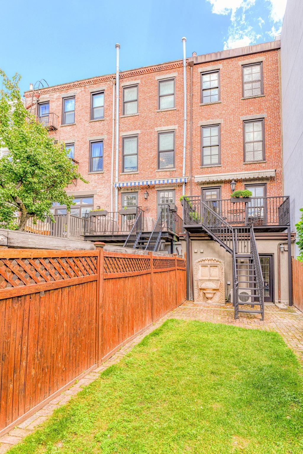 "Midtown Charmer". This 2-family gem is like living "tax-free" in Hoboken. 4-story Brick Rowhouse, convenient to everything Hoboken has to offer: transportation, shopping, restaurants, parks and more. 3 floors of elegant living in the owner's triplex comprising 3-4 Bedrooms, 2.5 Baths, and Chef's Kitchen with Viking Stove, Sub-Zero Fridge, Large Working Island and Farmhouse sink. Dine on the Beautiful Wrought-Iron Deck with steps to the sun drenched manicured yard. The ground floor unit can either be rented for income (easily pays the property taxes) or used as additional family space. Nothing like this on the market right now. Don't miss out!