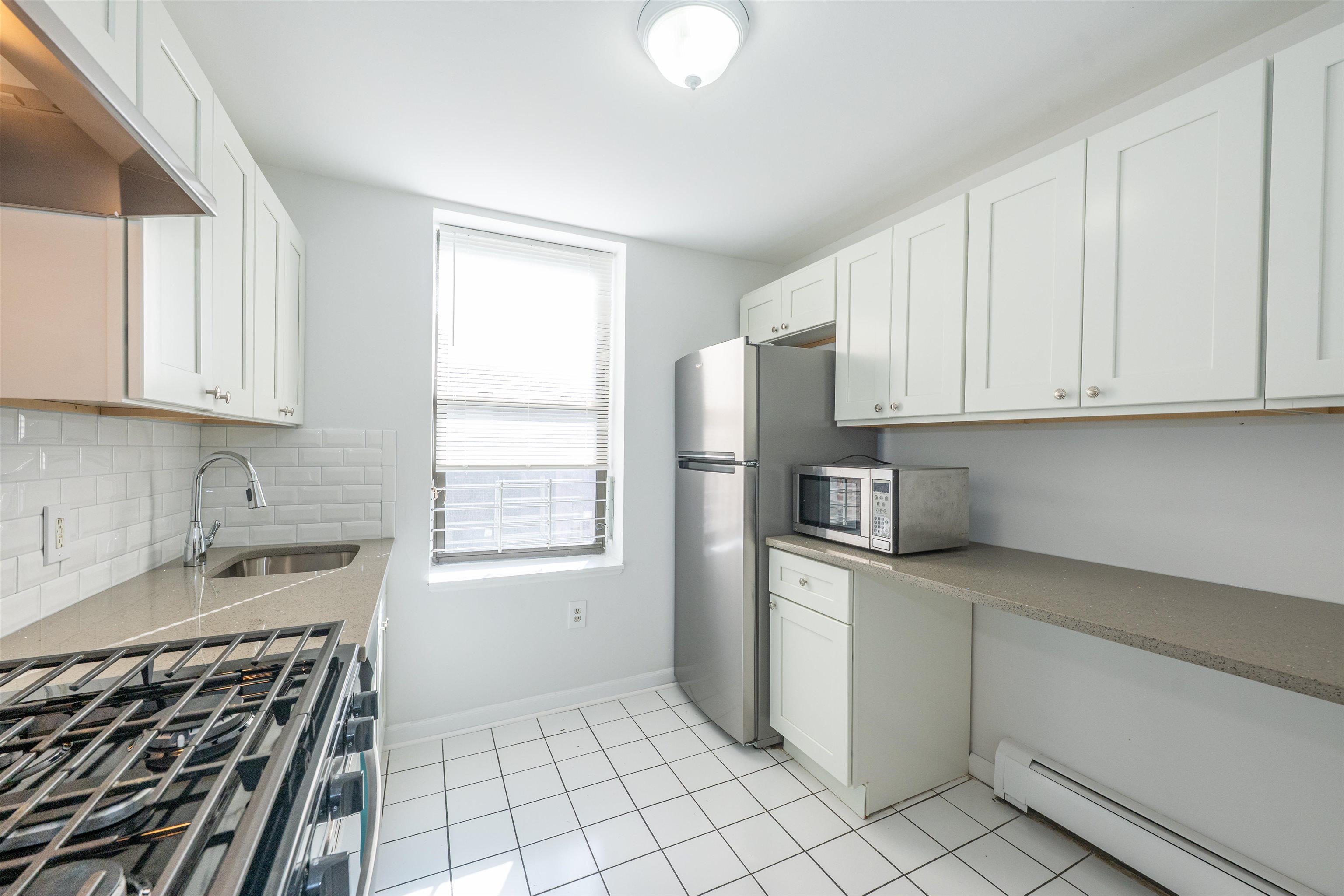 Discover a bright and spacious 2-bedroom, 1-bath condo in the heart of Jersey City Heights, offering the perfect mix of traditional character and modern comfort. Set in a classic 1900 brick building, this 818 sq ft home welcomes you with new high wood cabinets, breakfast tables, quartz counter tops and blacksplash, and a layout that feels open, functional, and easy to live in, Service Pets are allowed. The updated kitchen features stainless steel appliances, a dishwasher, and plenty of storage—ideal for cooking at home or hosting friends. The renovated bath adds a clean, modern touch, while both bedrooms offer generous space for sleeping, working, or creating a cozy retreat. With laundry in the building, basement storage, and secure intercom entry, everyday living stays simple and convenient. Just steps from Central Avenue’s vibrant shops, cafés, and dining, and moments from Pershing Field Park, Reservoir #3, and Leonard Gordon Park, this location places the best of the Heights right at your doorstep. Commuters will appreciate nearby NY and JSQ bus stops, Also, walkable distance to JSQ.