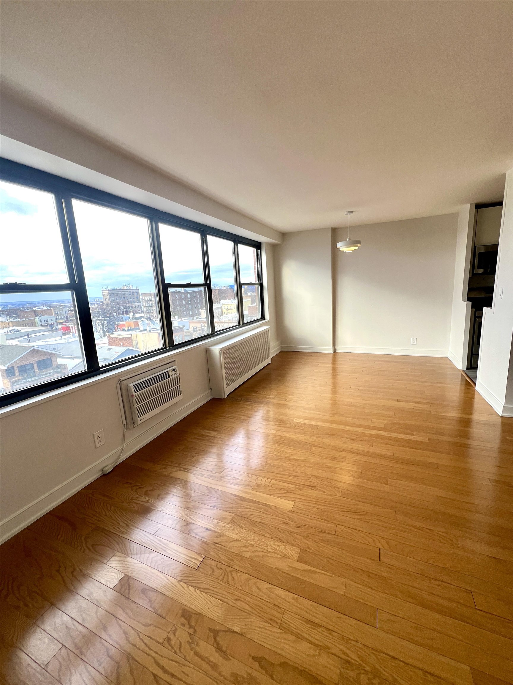 WELCOME HOME. Living Luxury on the 7TH floor. Renovated one Bedroom with sweeping Sunset & Skyline views facing West. An upgraded galley styled kitchen with 2 entries featuring white gloss cabinets, soft close drawers, and stainless steel appliances. Blonde hardwood floors throughout provides a modern feel. A large Bedroom with 2 closets and ample storage. Walk into an expansive Living/Dining open concept area with a wall of windows. Worry free maintenance includes heat, hot water, & cooking gas. The building offers a 24hr Concierge, shuttle service to Hoboken Path, Fitness Center, Residence lounge and more. Located in a vibrant part of the city, neighboring Jersey City Heights and Hoboken, the convenience and location only add to the appeal of the unit. Step out and visit Washington Park or a short walk over to Trader Joes. Come see luxury living at an affordable price.