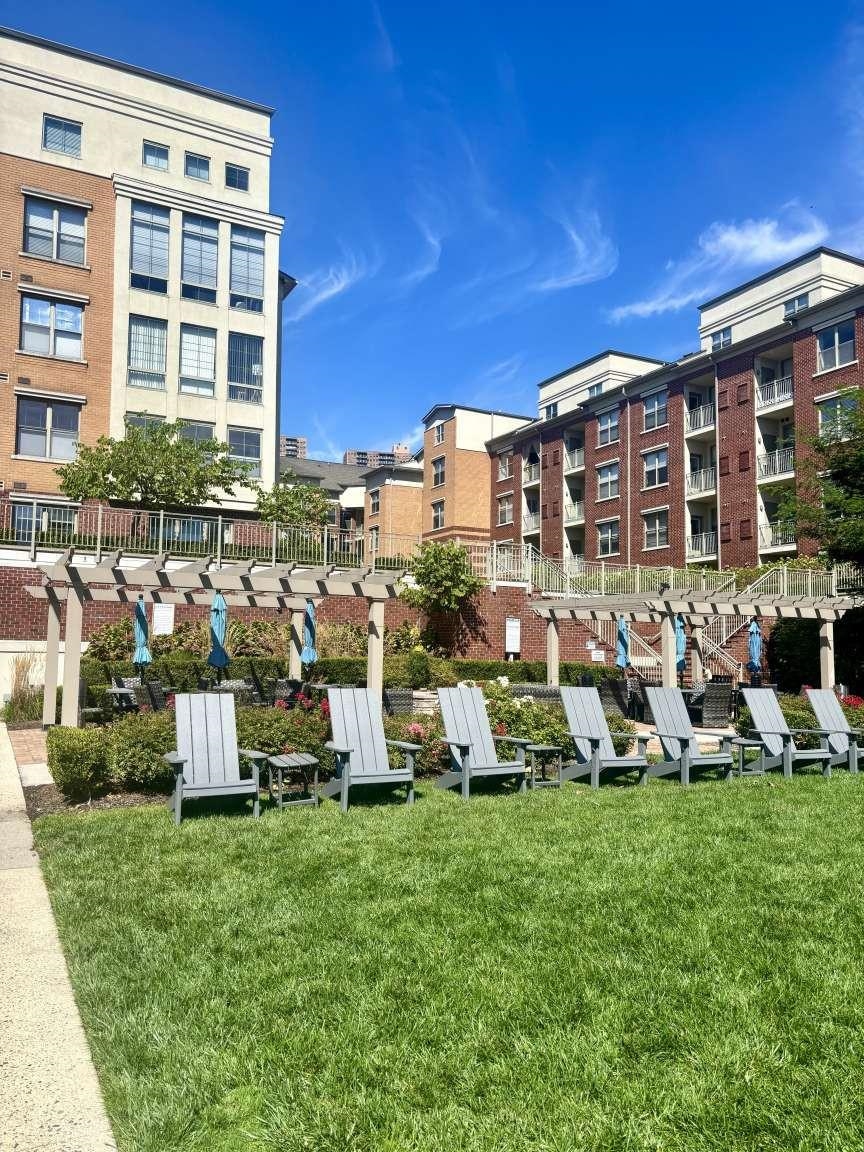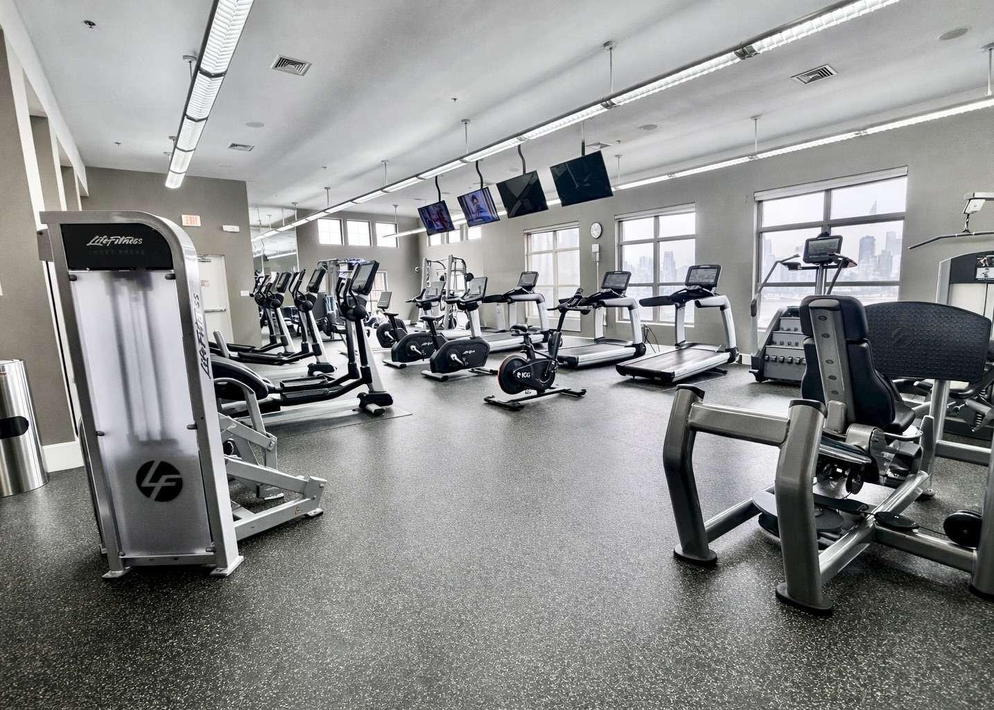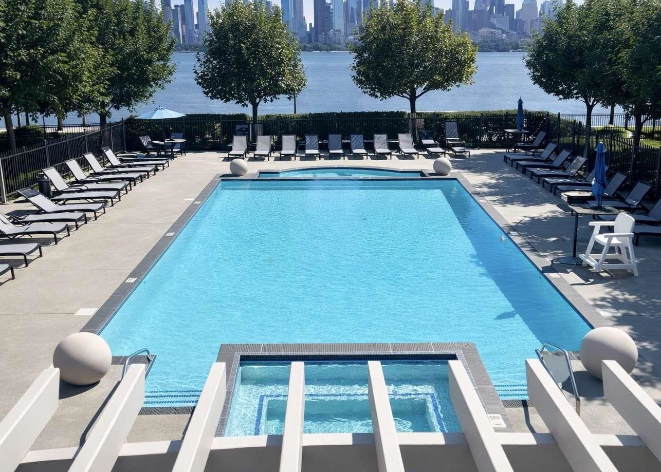 Welcome home to this beautifully maintained 1-bedroom, 1-bath corner unit offering 736 sq ft of comfortable, move-in-ready living in the highly desired Hudson Club waterfront community! Overlooking the courtyard, this home enjoys added privacy and a quiet atmosphere. The open living and dining area flows effortlessly to your private balcony - the perfect spot for morning coffee or unwinding at the end of the day. The updated kitchen features granite countertops and stainless steel appliances, including a new stove and new microwave. Additional upgrades include a new in-unit washer/dryer combo and a new hot water heater. The spacious bedroom offers a walk-in closet, direct access to the bathroom, and partial NYC skyline views. Located in the same building as the concierge, you’ll enjoy convenient access for deliveries. Taxes were successfully appealed and lowered in 2024, and one assigned outdoor parking space is included. Hudson Club residents enjoy resort-style amenities including an outdoor pool, fitness center, clubhouse, basketball and tennis courts, cinema room, fire pit, business center, community lounge, playground, and EV charging station. The HOA includes parking, security, concierge, cable, internet, water, and full amenity access. Ideally located along the Hudson River with easy access to the NYC Ferry, Light Rail, NJ Transit buses, Ferry shuttle service, and the Lincoln Tunnel, plus ACME, Starbucks, and local restaurants just steps away. This home offers the perfect balance of peaceful waterfront living and effortless NYC access!