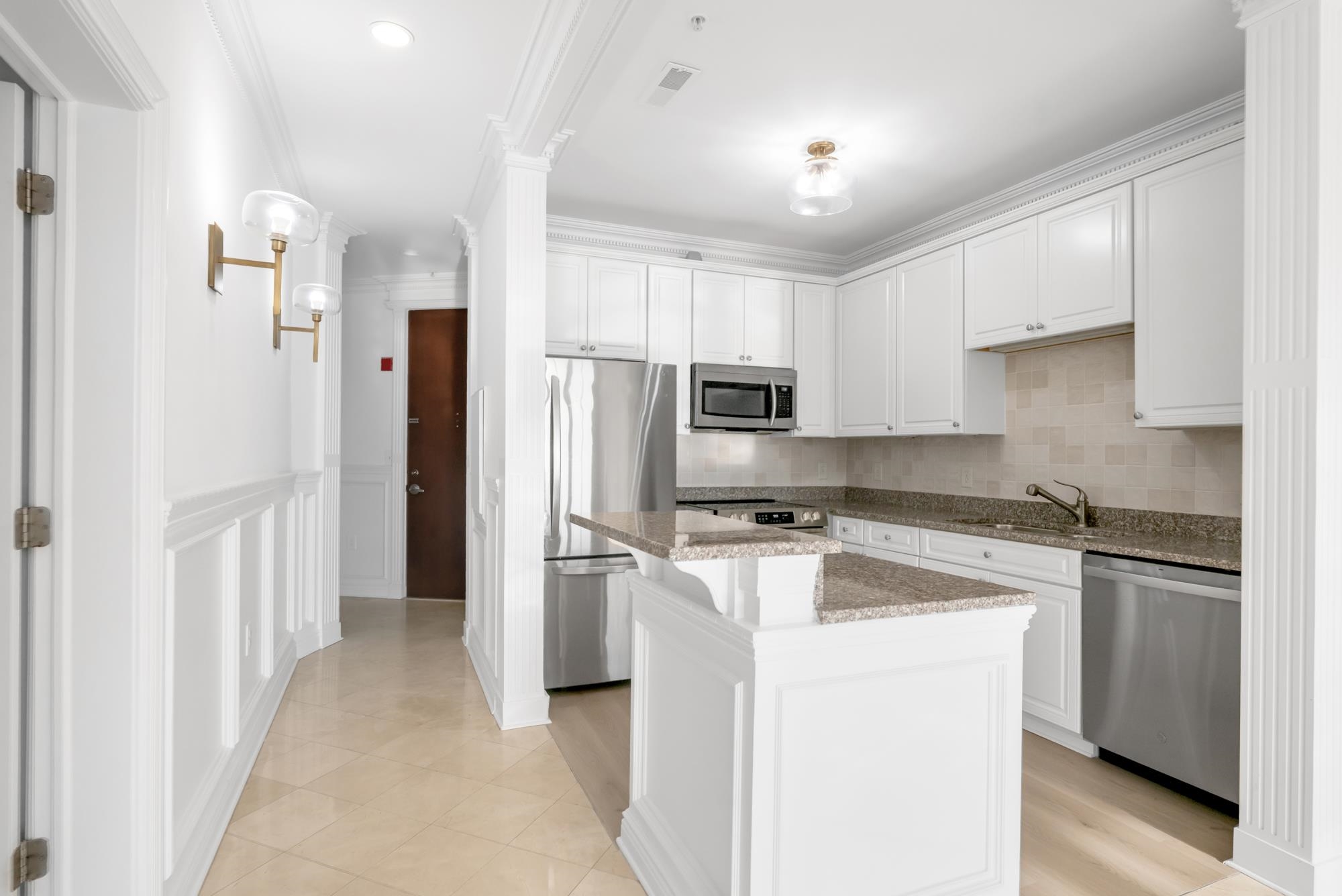World-class living awaits you in this stunning 2 Bedroom + Den / 2 Bathroom luxury home located in highly sought after Grandview I. Situated along the banks of the Hudson River and just steps from restaurants & shopping, this home features only the finest finishes. Stretching across 1,328 SqFt, this sun drenched home features direct South and East views of NYC and the Hudson River, gleaming floors, custom window treatments, custom molding and woodwork, one car garage parking, in-unit laundry, and balcony with stunning views. This corner unit floor plan includes entry foyer, living room / dining room combo, Chef's kitchen, two spacious bedrooms, renovated bathrooms, and bonus den / office. Chef's kitchen includes granite countertops, custom cabinets, SS appliances, and breakfast bar. Master bedroom features custom walk-in closet and renovated ensuite bathroom with dual vanity and linen closet. Grandview I includes 24 hour concierge, fitness center, resident lounge, outdoor pool with NYC views, and a pilot tax abatement program. Located next to ample shopping, restaurants, public transportation, and the waterfront walkway, this home is sure to please!
