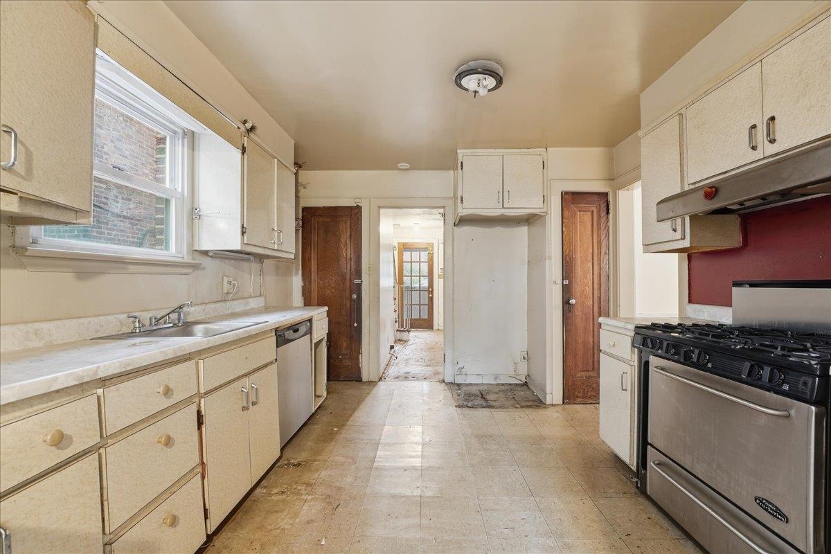 Bergen-Lafayette single-family home awaiting restoration to its original beauty. This brick-setback residence boasts great curb appeal, featuring a winding decorative brick walkway and an inviting front lawn. Inside, you’ll find 3 bedrooms, 3 full baths, a spacious kitchen, and a dining room, along with a full basement for extra space. The property offers garage parking plus additional room for 2 cars in the rear. Ideally located just steps from Arlington Park and Berry Lane Park, with easy access to the Light Rail and nearby Liberty State Park. Enjoy being part of the renaissance of this vibrant neighborhood, complete with local cafes and restaurants nearby.