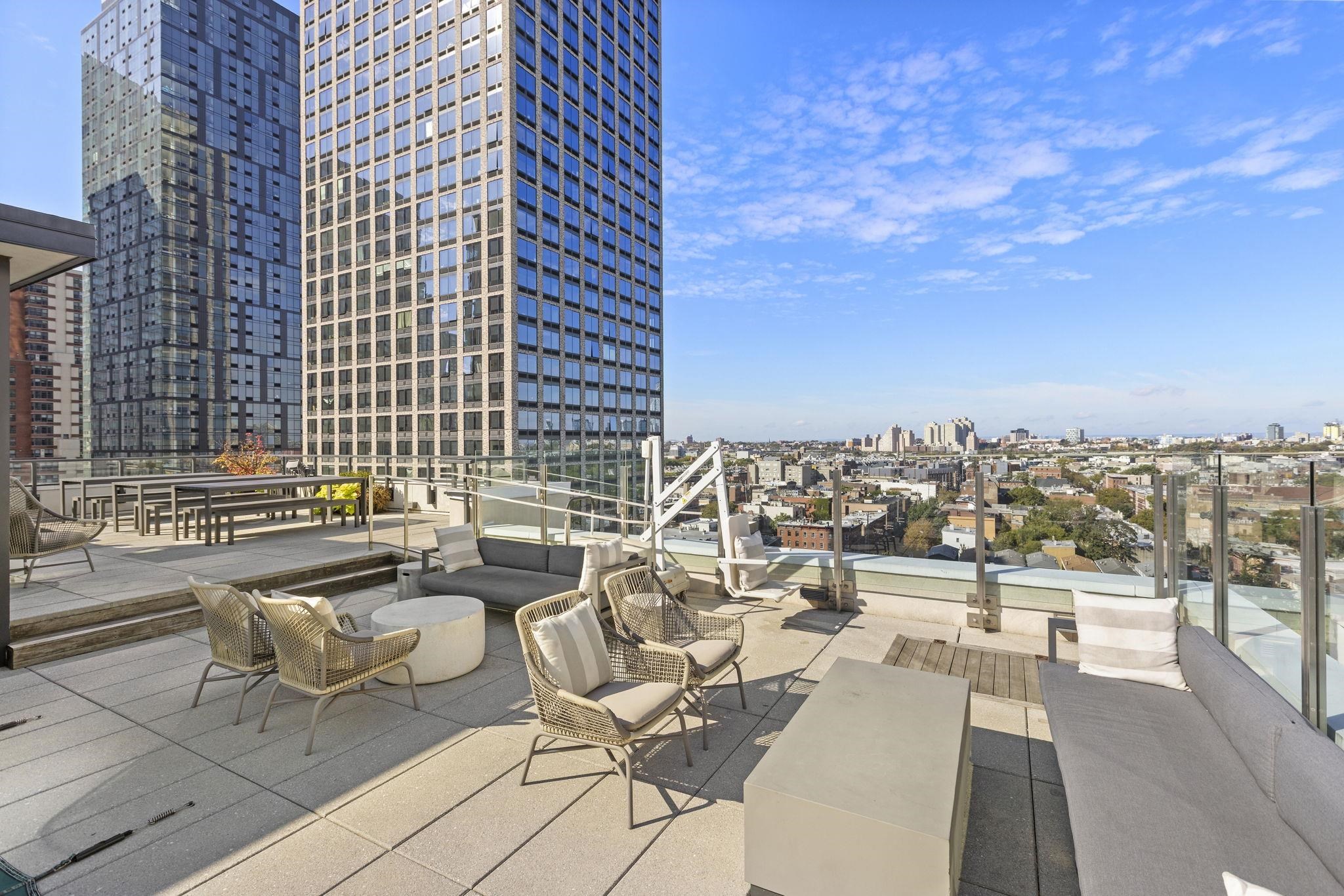 Live in the heart of Downtown Jersey City at The Oakman, one of the area’s most coveted full-service boutique buildings. This sleek 1-bed, 1-bath home features floor-to-ceiling windows, a private balcony, hardwood floors, in-unit washer/dryer, and a chef’s kitchen with Pedini cabinetry, Caesarstone waterfall peninsula, and premium appliances. The spa-like bath and tranquil bedroom complete the retreat. The Oakman offers hotel-style amenities: 24/7 doorman, fitness center, kids’ playroom, rooftop lounge, pool, sundeck with grills, valet parking, and more. Just 3 blocks from Grove St. PATH and surrounded by coffee shops, restaurants, fitness studios, and the upcoming Whole Foods—you’ll be at the center of it all.