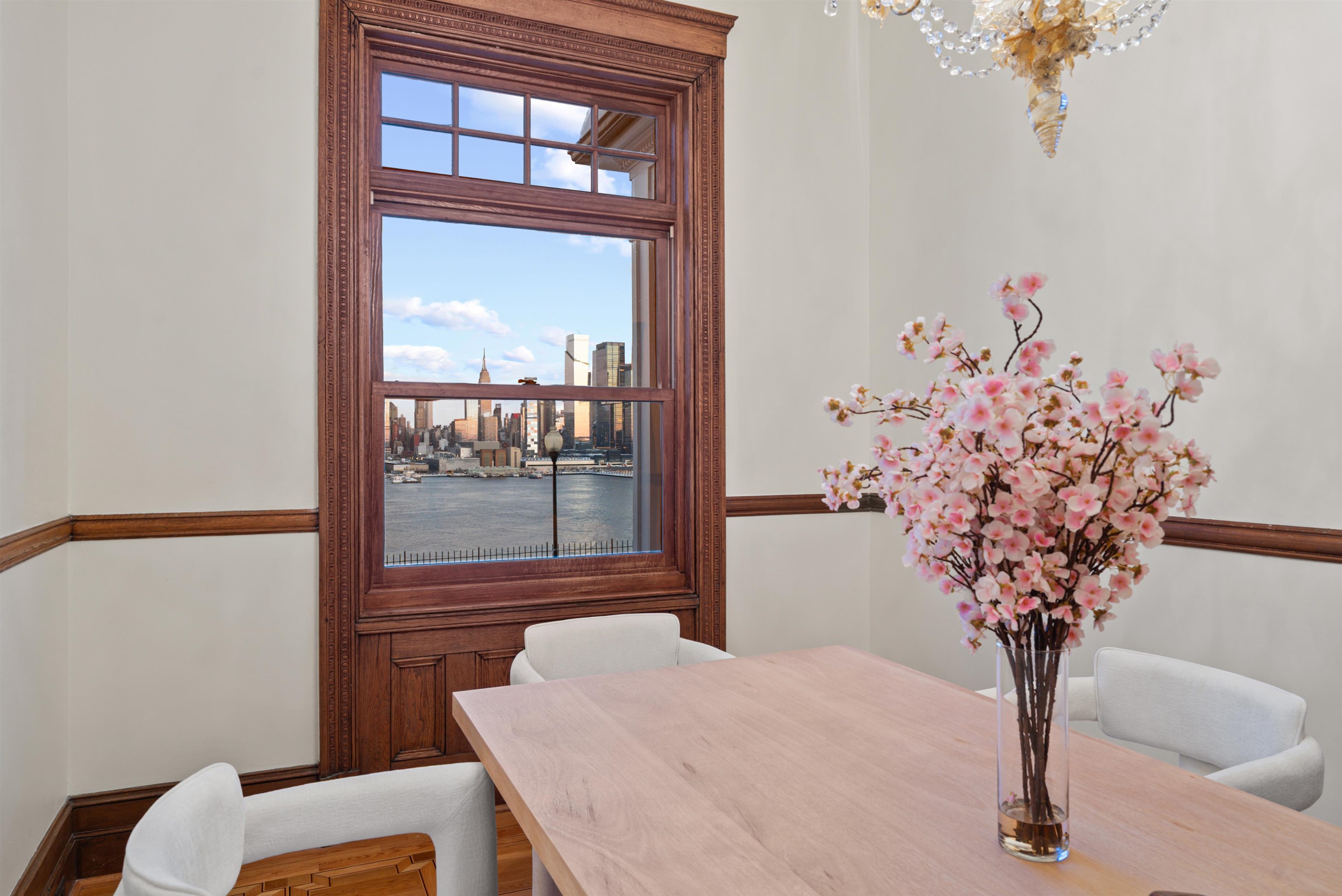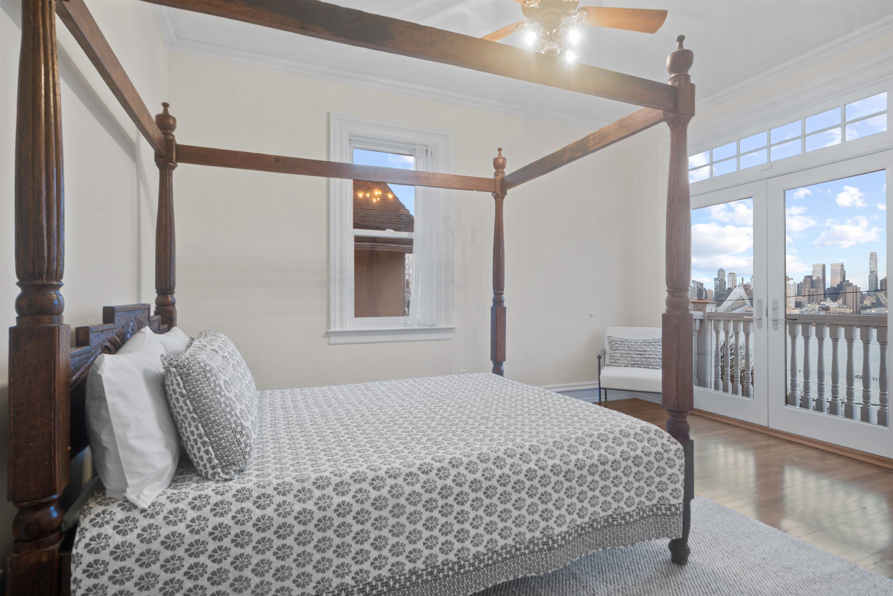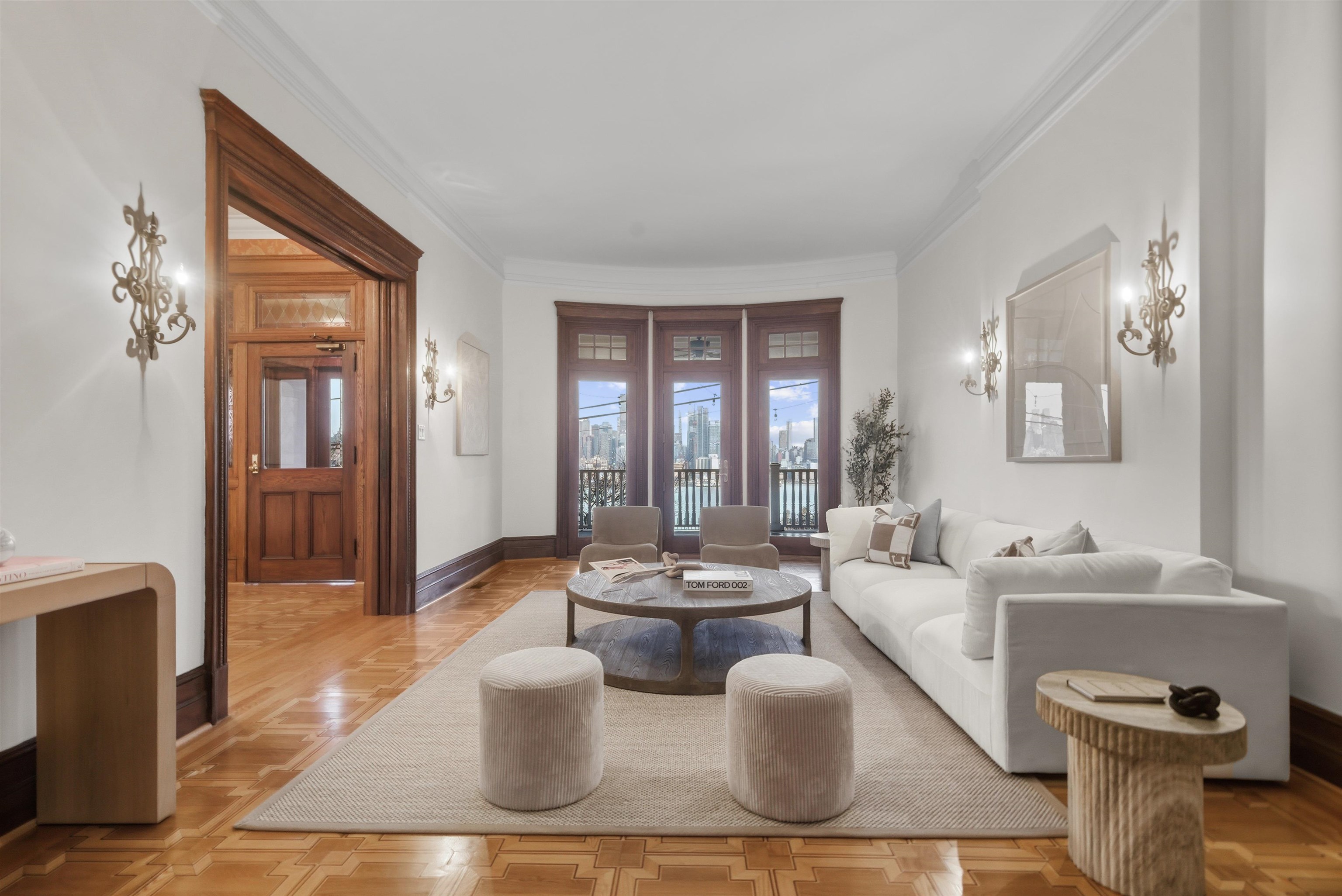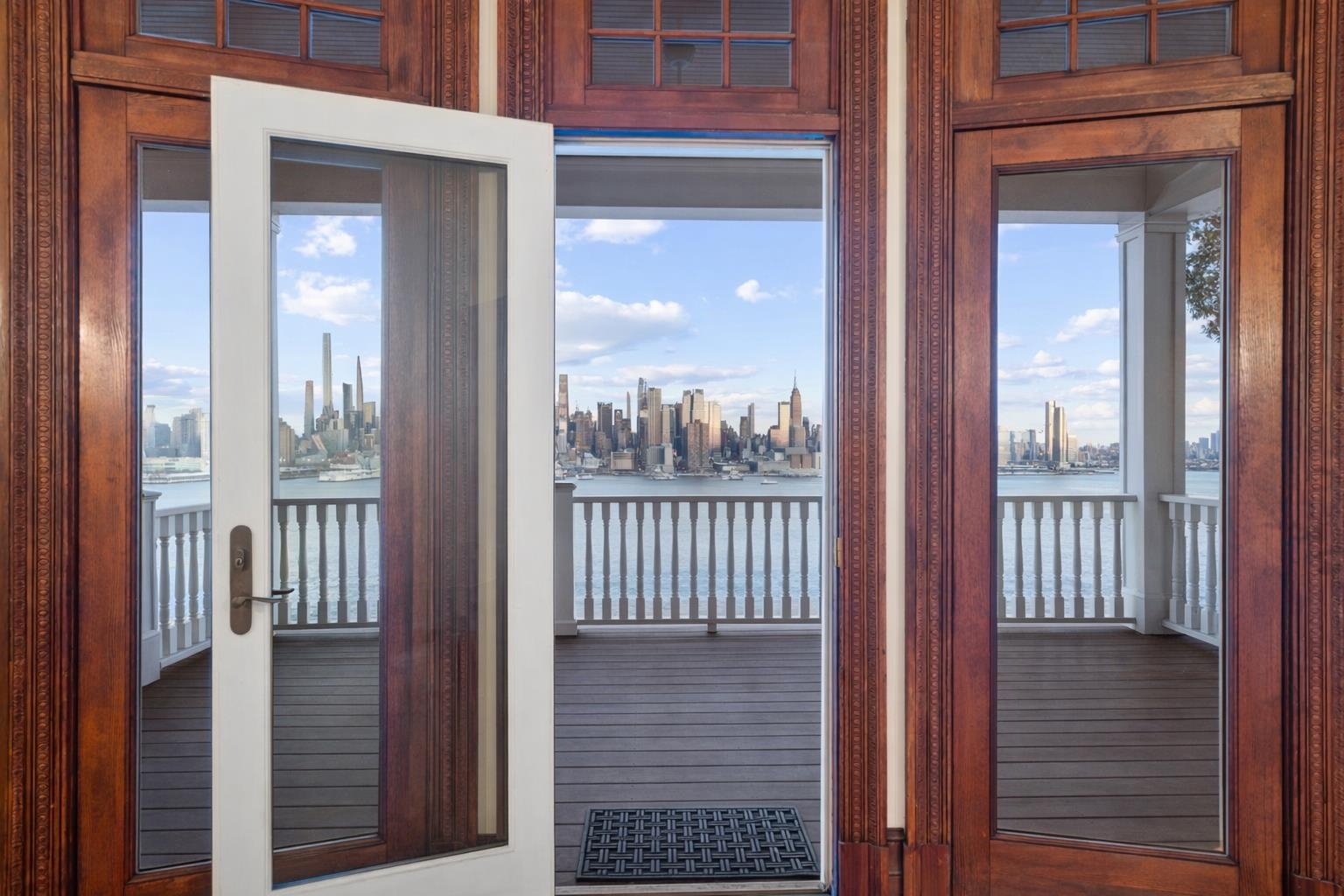 Set on one of the most private streets within the coveted Kings Bluff enclave, this masterfully restored Victorian commands sweeping, uninterrupted views of the New York City skyline — a backdrop as iconic as it is rare. Offering 7 bedrooms, 5.5 bathrooms and approximately 3821 square feet of refined living space, the home artfully balances historic character with modern sophistication. The chef’s kitchen is thoughtfully designed with premium granite surfaces, custom-crafted cabinetry and a 48-inch Viking range, seamlessly opening to an inviting dining space ideal for both everyday living and elevated entertaining. Architectural integrity remains at the forefront, highlighted by intricate inlaid wood flooring, original pocket doors, a striking coffered ceiling and impressive 11-foot ceilings on the main level. Expansive windows frame the skyline from multiple vantage points, creating a living work of art from nearly every room. A rare three-car garage adds exceptional convenience, while access to jitney, bus, light rail, ferry or car makes commuting effortless. An extraordinary offering where privacy, craftsmanship and world-class views converge.