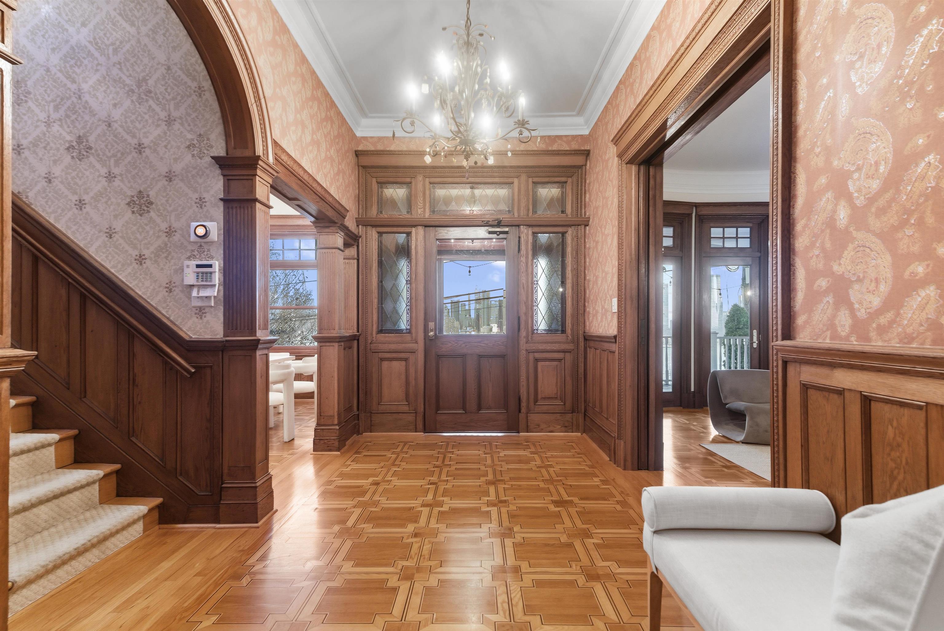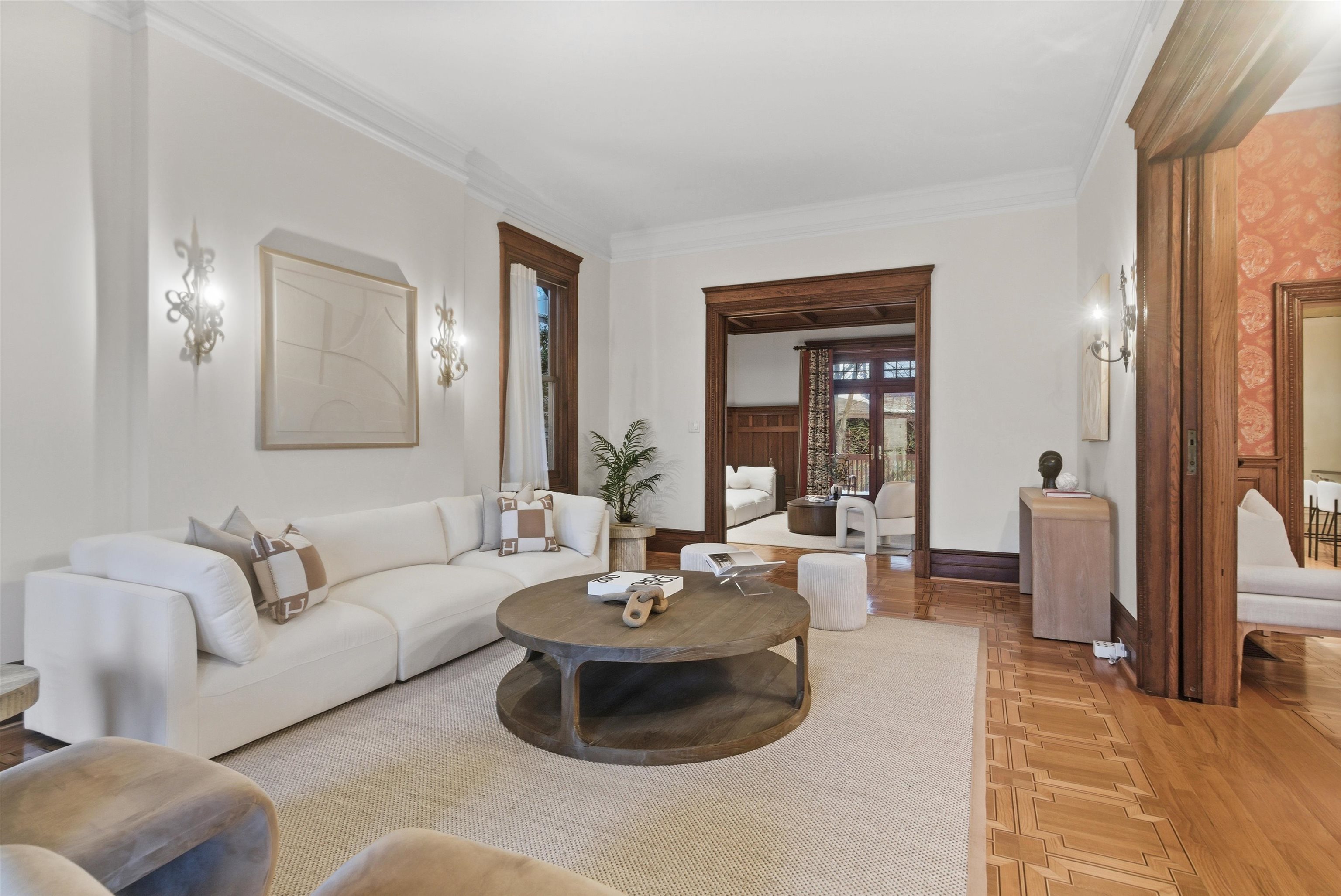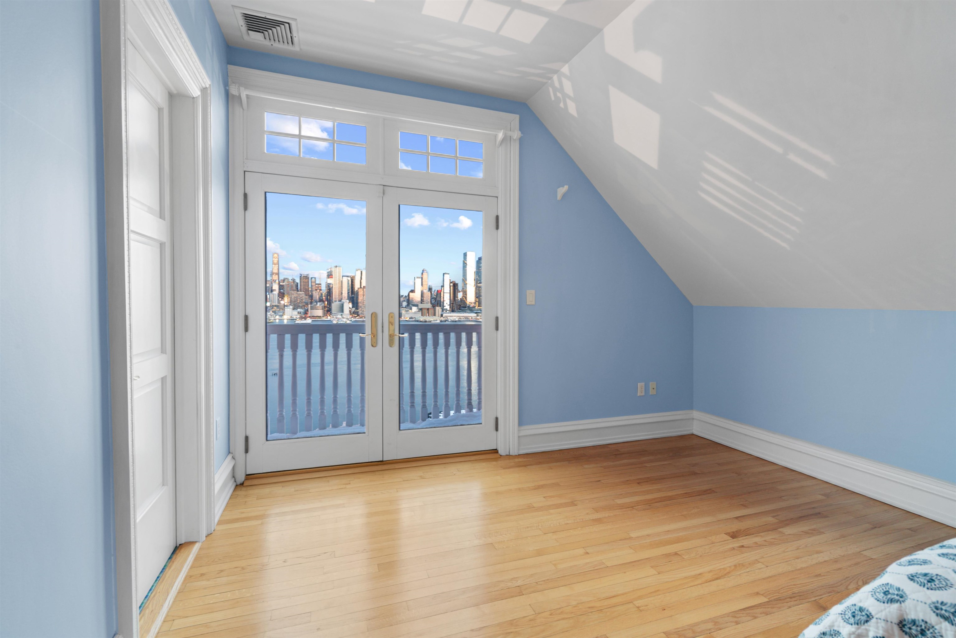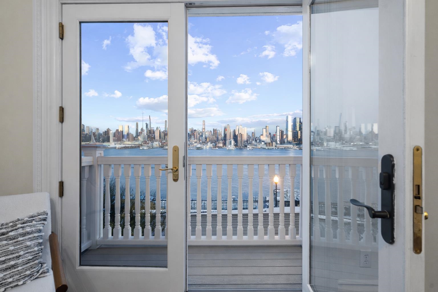 Set on one of the most private streets within the coveted Kings Bluff enclave, this masterfully restored Victorian commands sweeping, uninterrupted views of the New York City skyline — a backdrop as iconic as it is rare. Offering 7 bedrooms, 5.5 bathrooms and approximately 3821 square feet of refined living space, the home artfully balances historic character with modern sophistication. The chef’s kitchen is thoughtfully designed with premium granite surfaces, custom-crafted cabinetry and a 48-inch Viking range, seamlessly opening to an inviting dining space ideal for both everyday living and elevated entertaining. Architectural integrity remains at the forefront, highlighted by intricate inlaid wood flooring, original pocket doors, a striking coffered ceiling and impressive 11-foot ceilings on the main level. Expansive windows frame the skyline from multiple vantage points, creating a living work of art from nearly every room. A rare three-car garage adds exceptional convenience, while access to jitney, bus, light rail, ferry or car makes commuting effortless. An extraordinary offering where privacy, craftsmanship and world-class views converge.