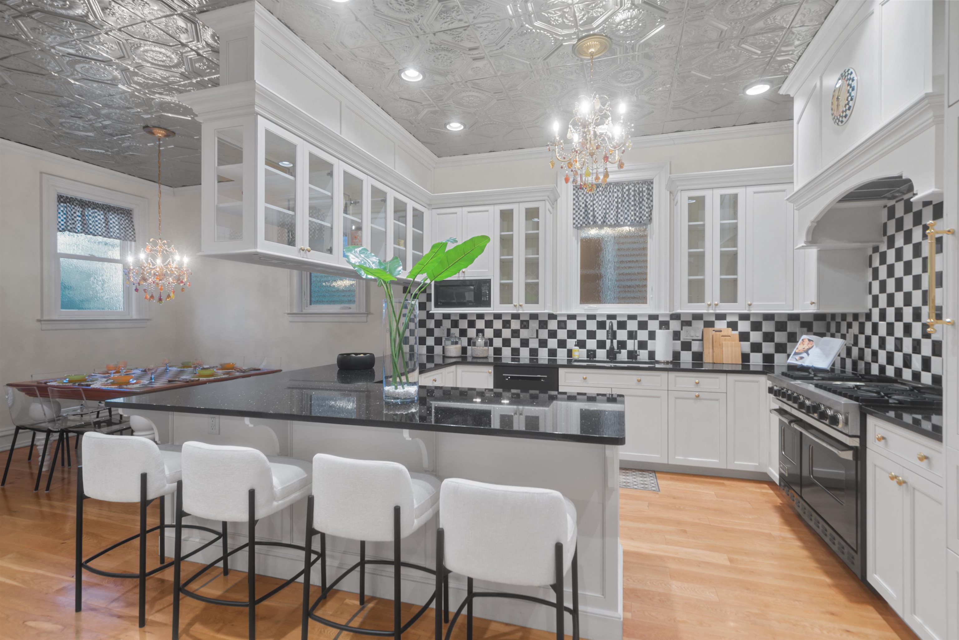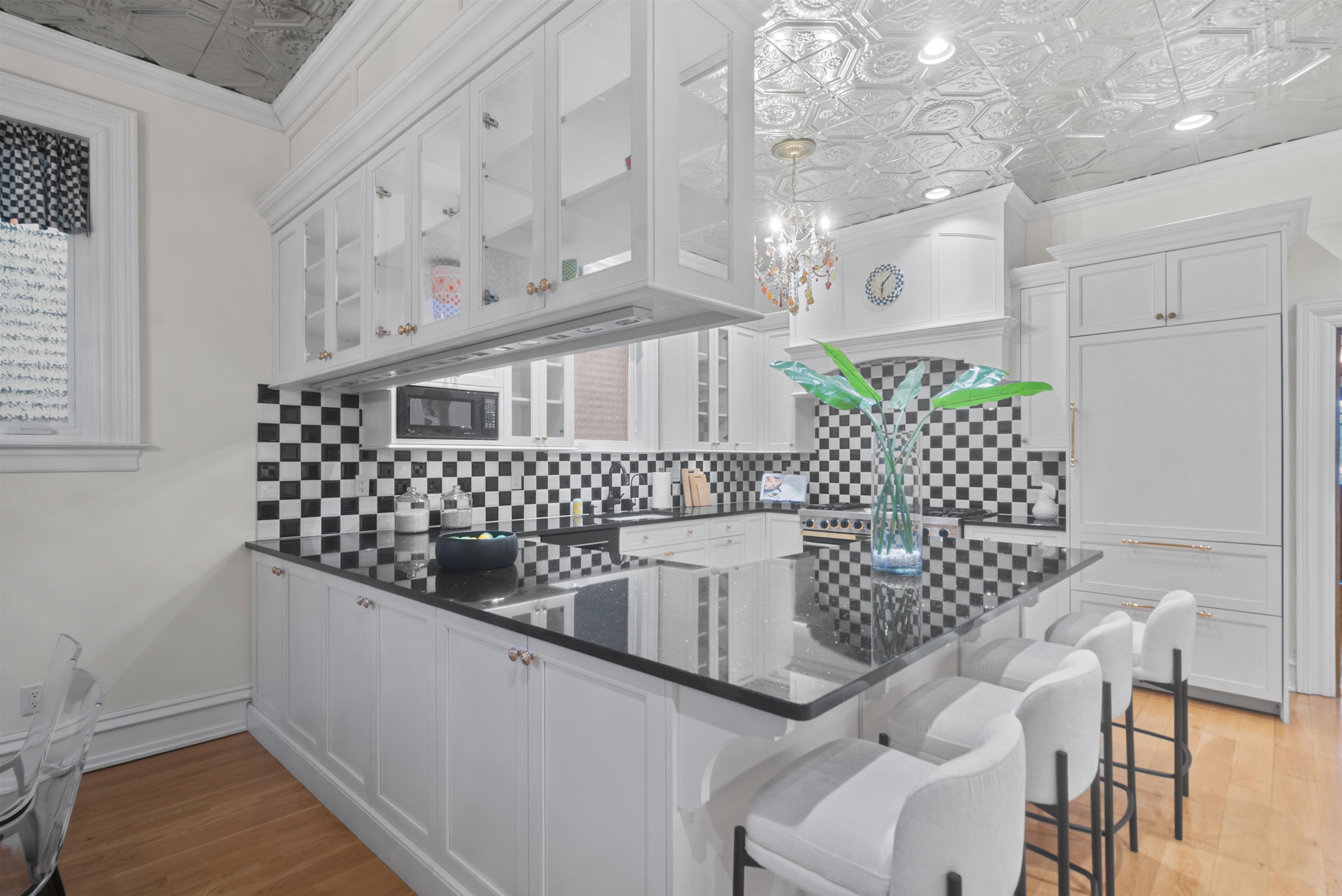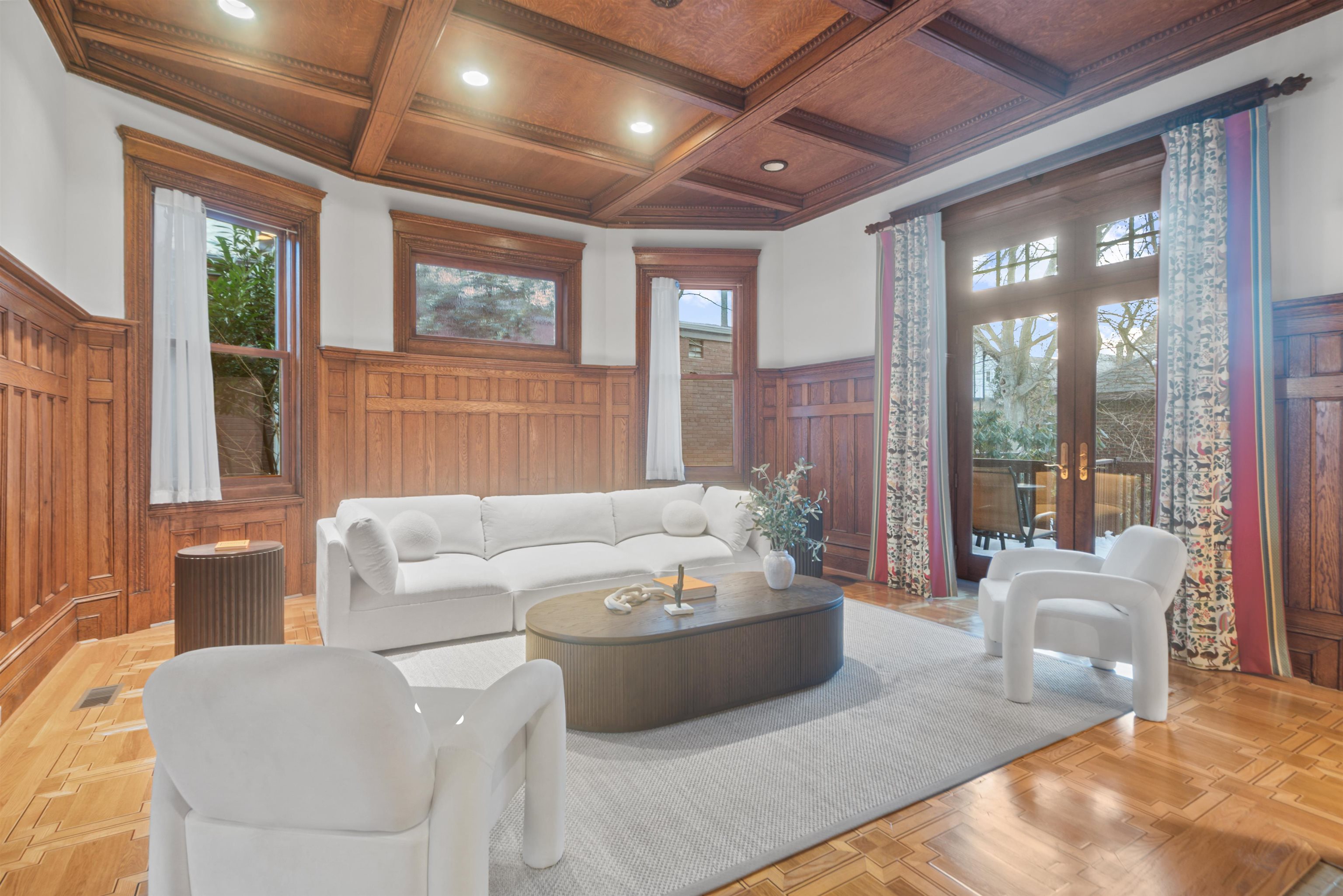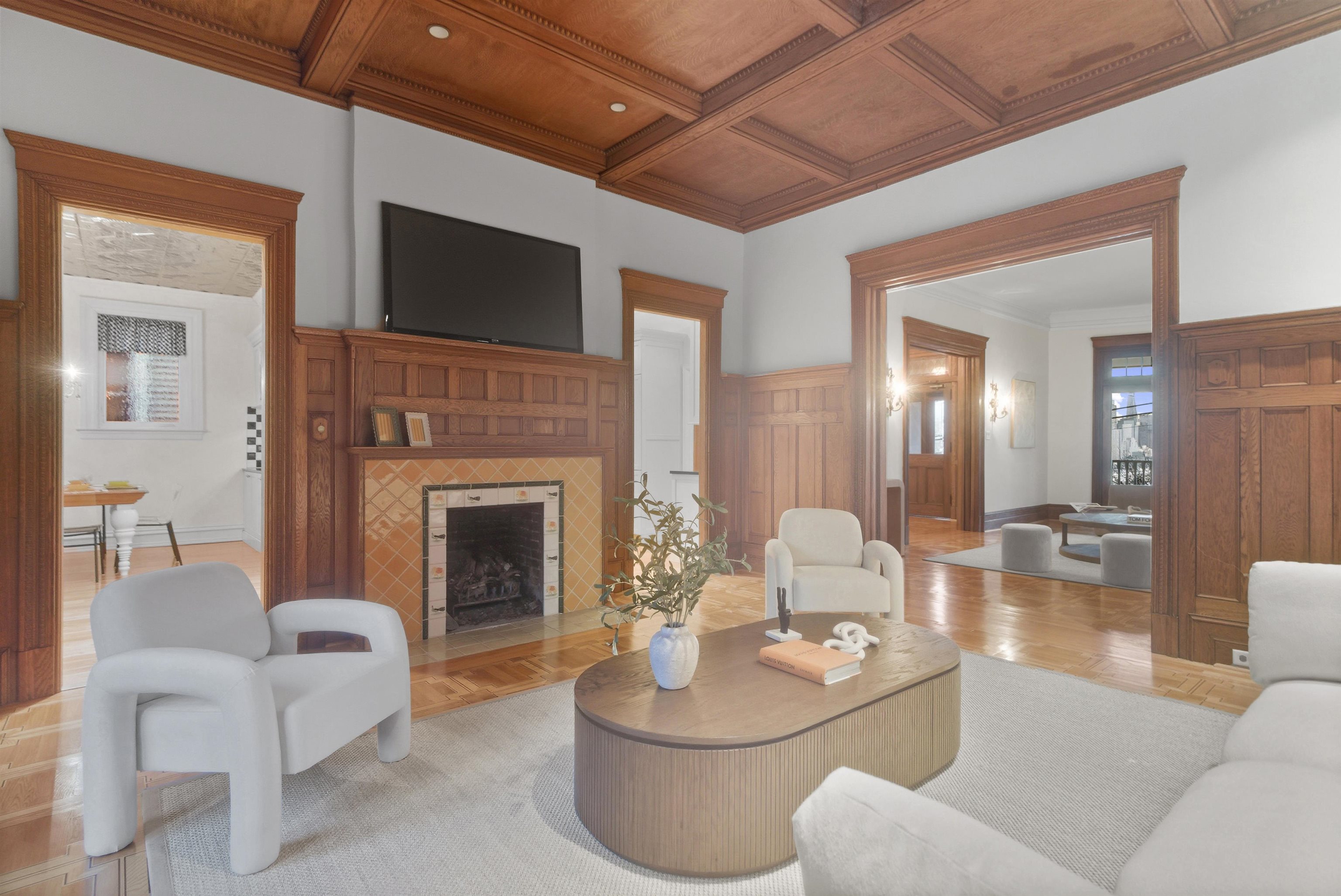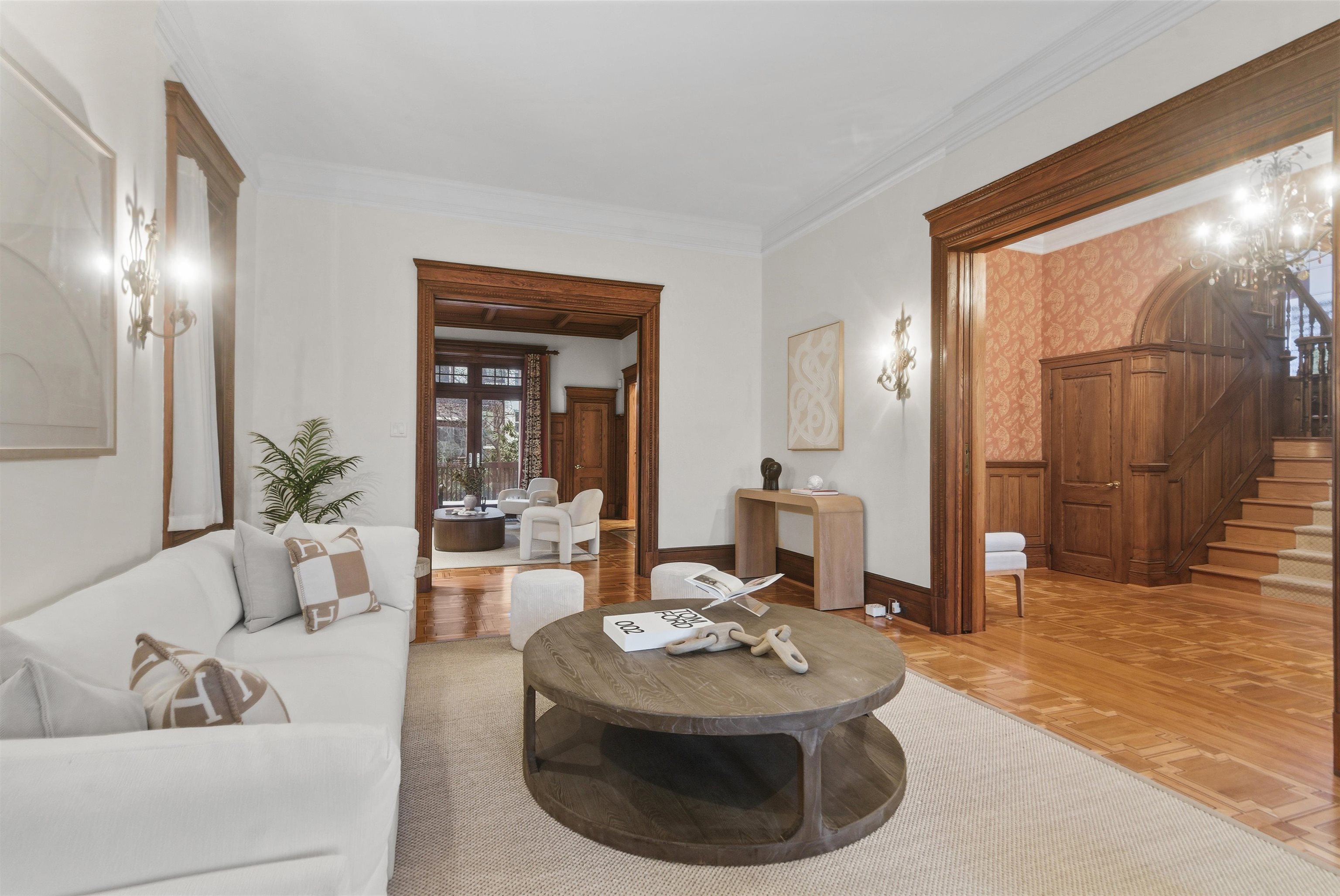 Set on one of the most private streets within the coveted Kings Bluff enclave, this masterfully restored Victorian commands sweeping, uninterrupted views of the New York City skyline — a backdrop as iconic as it is rare. Offering 7 bedrooms, 5.5 bathrooms and approximately 3821 square feet of refined living space, the home artfully balances historic character with modern sophistication. The chef’s kitchen is thoughtfully designed with premium granite surfaces, custom-crafted cabinetry and a 48-inch Viking range, seamlessly opening to an inviting dining space ideal for both everyday living and elevated entertaining. Architectural integrity remains at the forefront, highlighted by intricate inlaid wood flooring, original pocket doors, a striking coffered ceiling and impressive 11-foot ceilings on the main level. Expansive windows frame the skyline from multiple vantage points, creating a living work of art from nearly every room. A rare three-car garage adds exceptional convenience, while access to jitney, bus, light rail, ferry or car makes commuting effortless. An extraordinary offering where privacy, craftsmanship and world-class views converge.