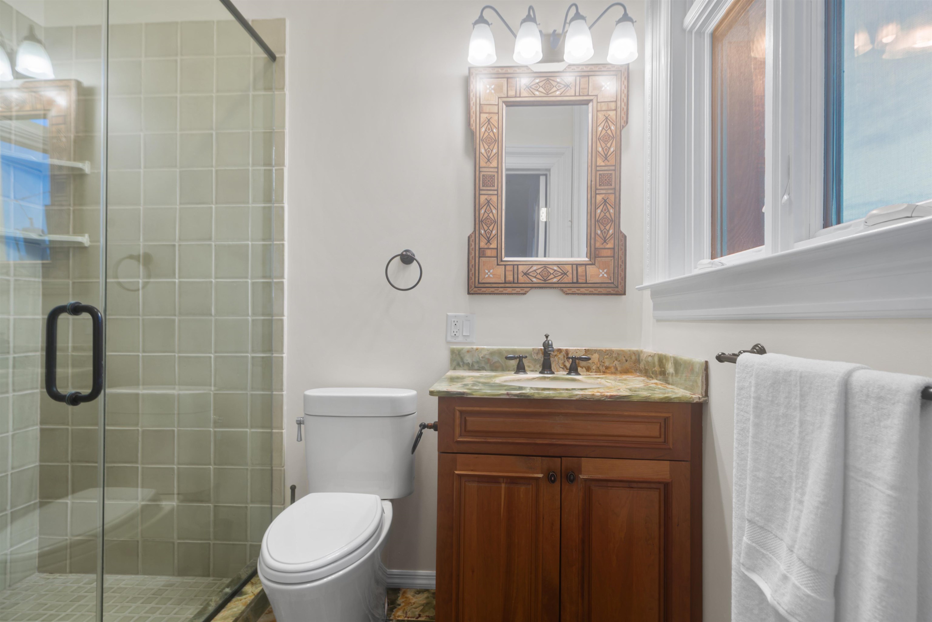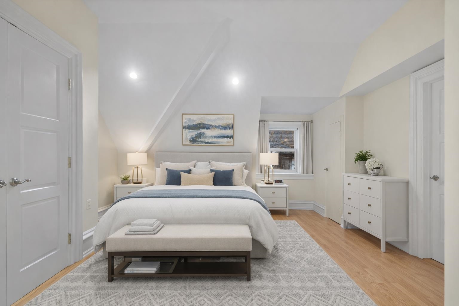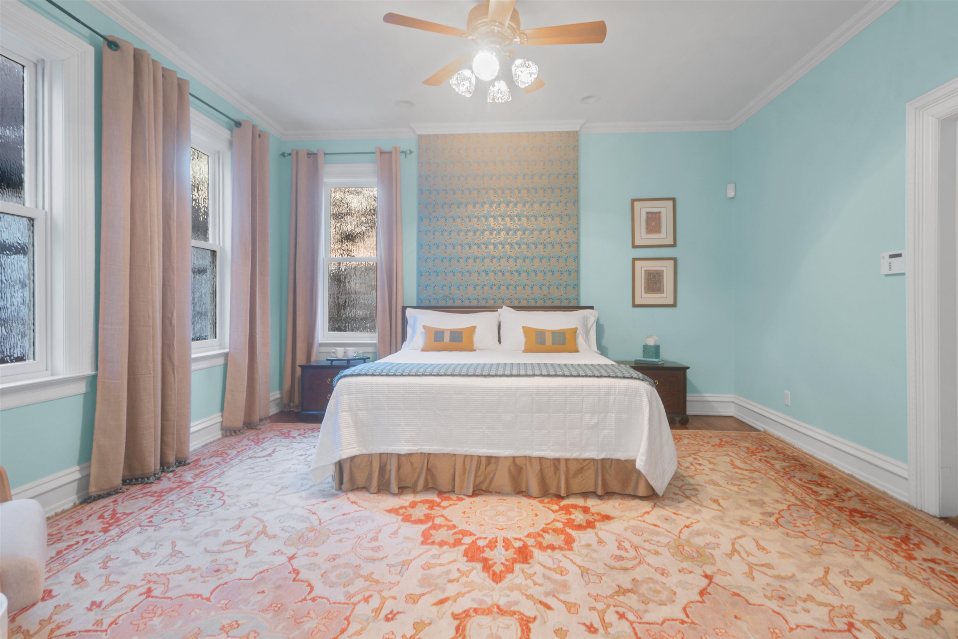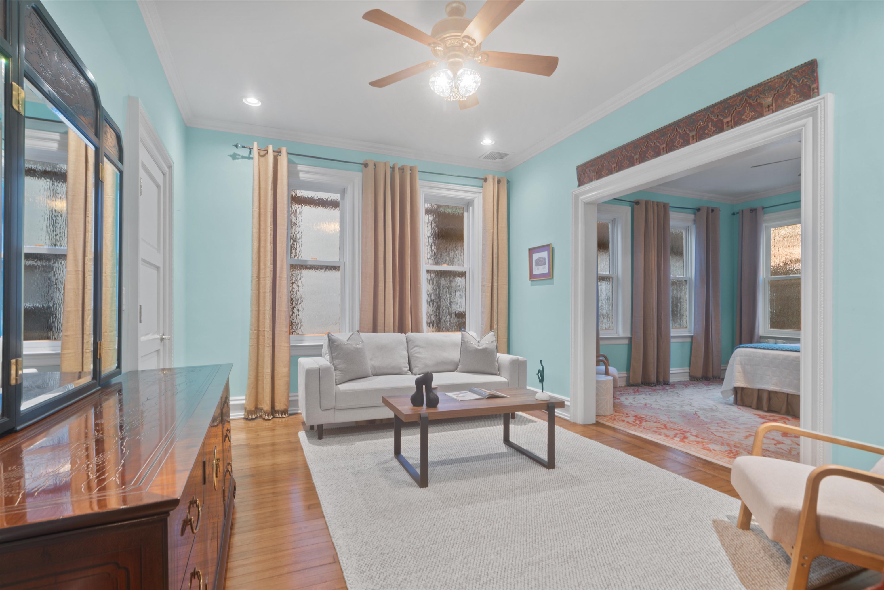 Set on one of the most private streets within the coveted Kings Bluff enclave, this masterfully restored Victorian commands sweeping, uninterrupted views of the New York City skyline — a backdrop as iconic as it is rare. Offering 7 bedrooms, 5.5 bathrooms and approximately 3821 square feet of refined living space, the home artfully balances historic character with modern sophistication. The chef’s kitchen is thoughtfully designed with premium granite surfaces, custom-crafted cabinetry and a 48-inch Viking range, seamlessly opening to an inviting dining space ideal for both everyday living and elevated entertaining. Architectural integrity remains at the forefront, highlighted by intricate inlaid wood flooring, original pocket doors, a striking coffered ceiling and impressive 11-foot ceilings on the main level. Expansive windows frame the skyline from multiple vantage points, creating a living work of art from nearly every room. A rare three-car garage adds exceptional convenience, while access to jitney, bus, light rail, ferry or car makes commuting effortless. An extraordinary offering where privacy, craftsmanship and world-class views converge.