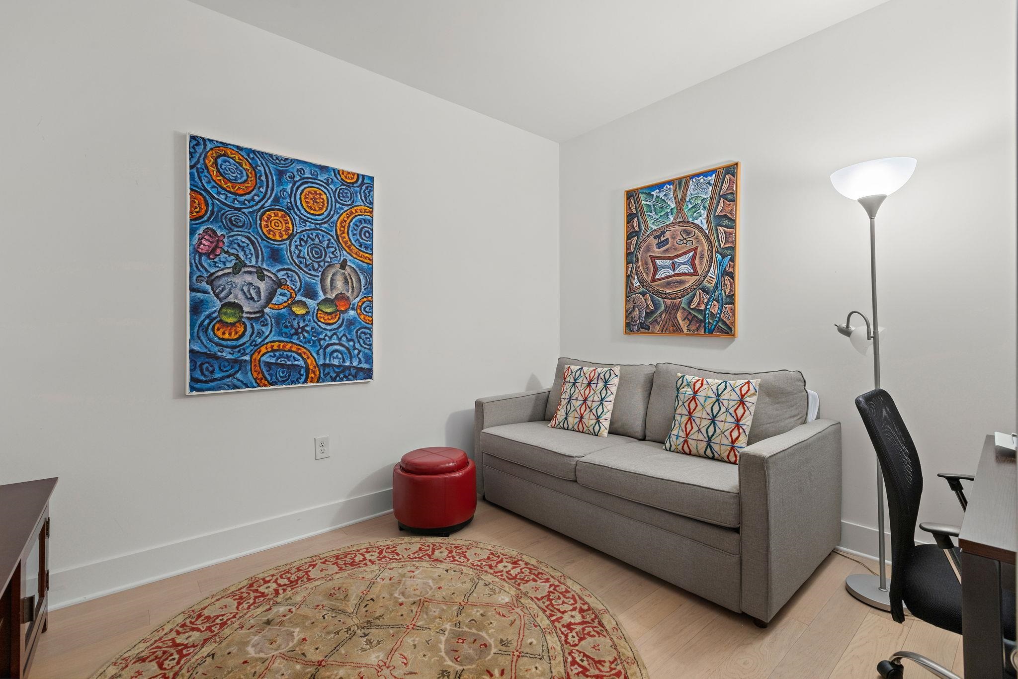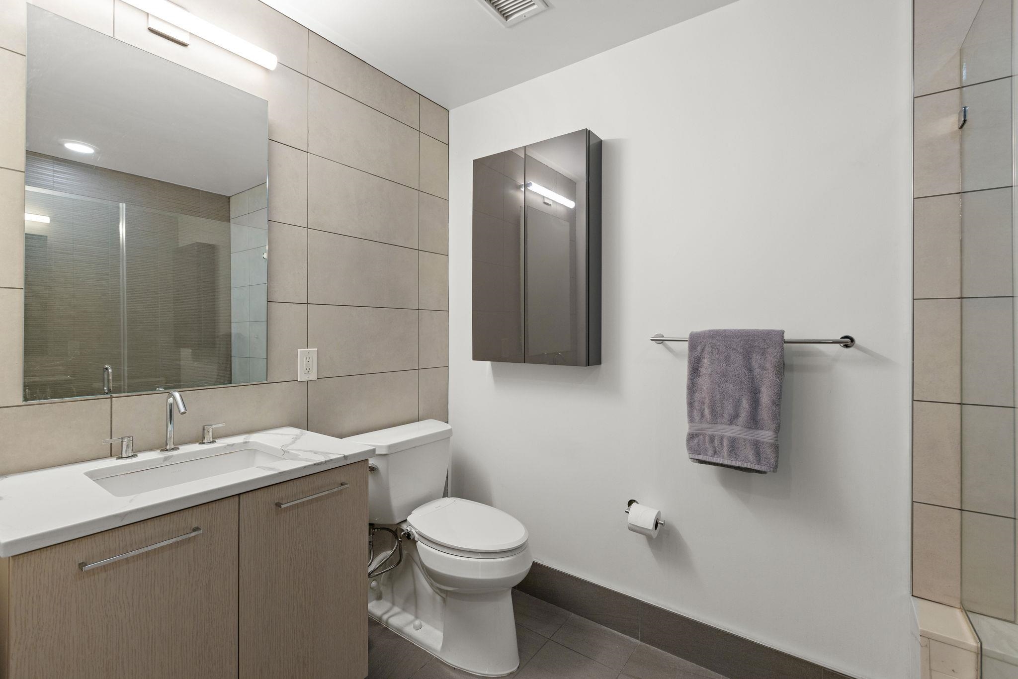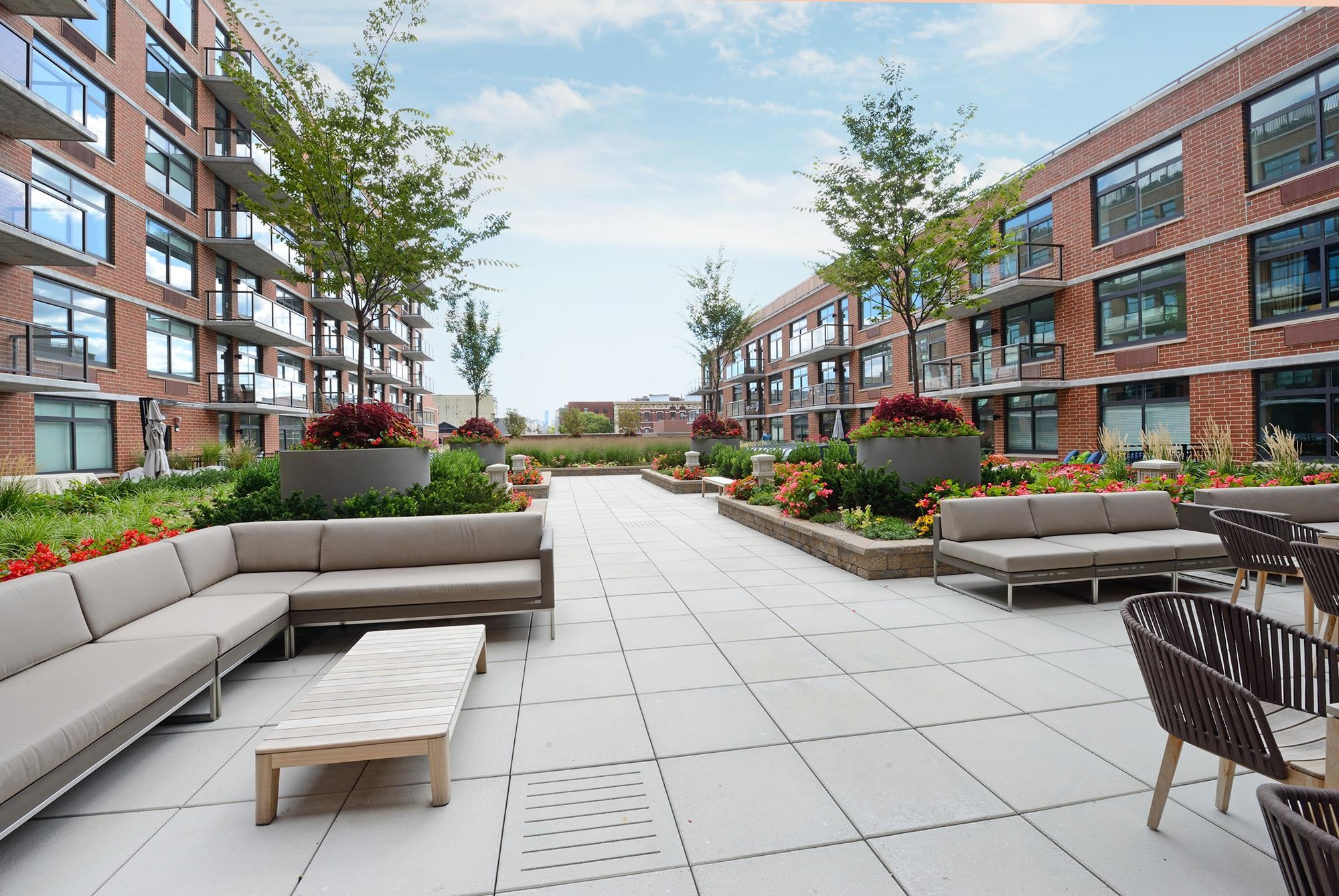 Incredible 1150sqft 1 bed + den with parking in the luxury community of 1400 Hudson! Modern chef’s kitchen includes quartz countertops, stainless-steel appliances, and breakfast bar. Spacious living area includes west-facing bay windows and extra-high ceilings. Primary bedroom has a walk-in closet and ensuite bathroom. Oversized den is perfect as an additional bedroom or office space. The home also features an additional half bath, hardwood floors, in-unit washer/dryer and 1 parking spot #25 conveniently on the same floor. Building amenities include 24/7 concierge, yoga room, cardio gym, weight room, rooftop pool, resident’s lounge, billiards lounge, courtyard, several rooftops with firepits & BBQ grills, playroom, and shuttle to and from the Path train. Located near the ferry, bus to NYC, shops, restaurants, and everything uptown Hoboken has to offer.