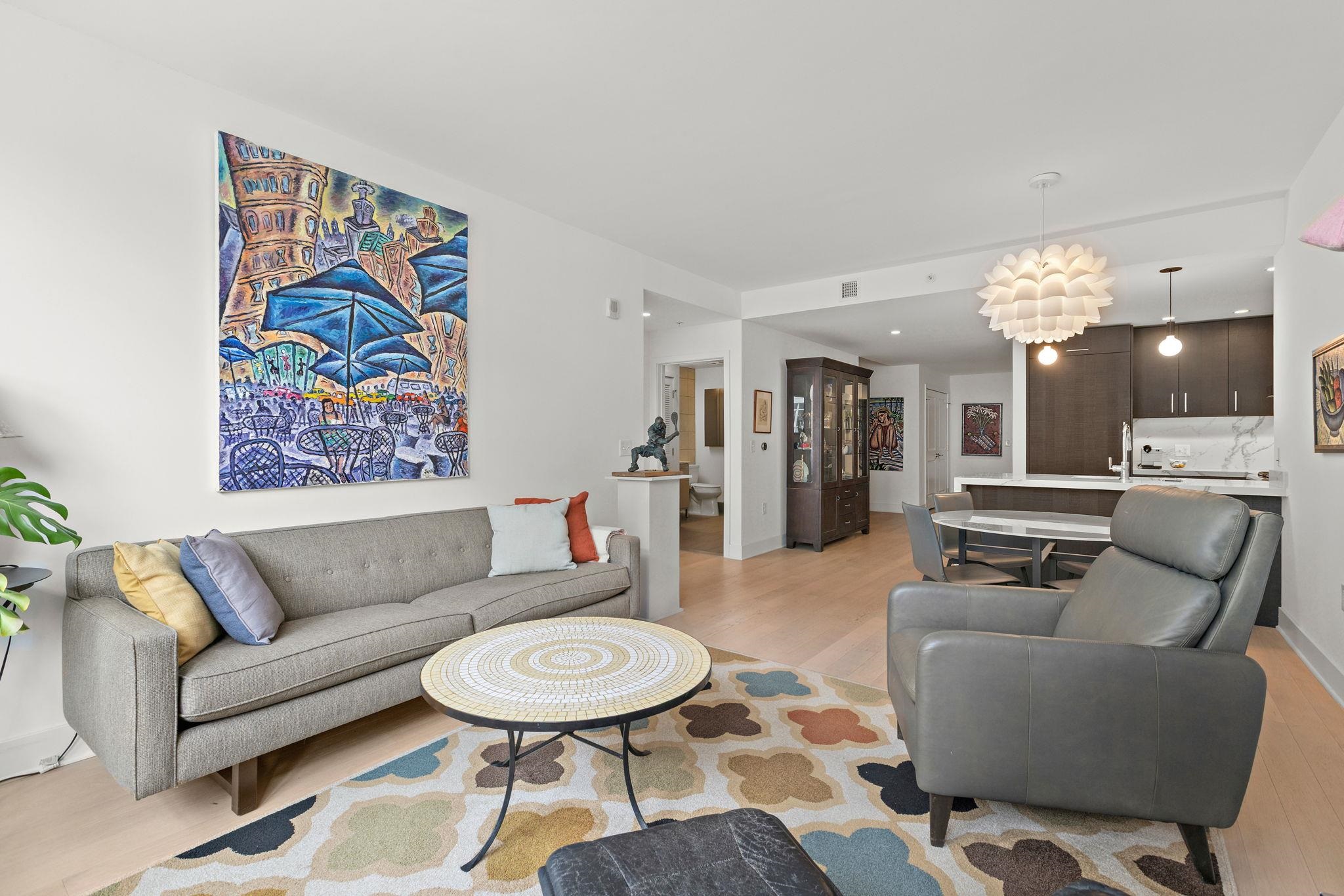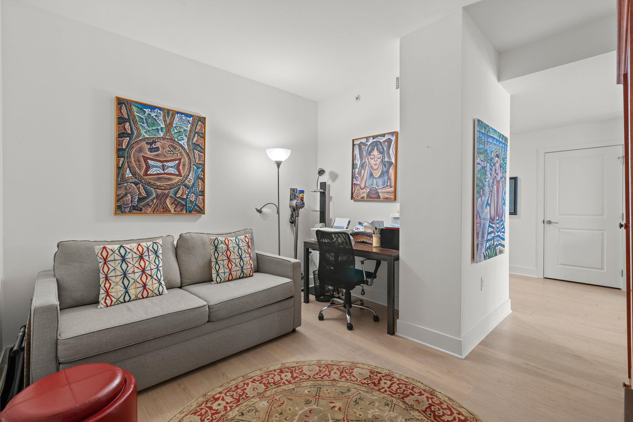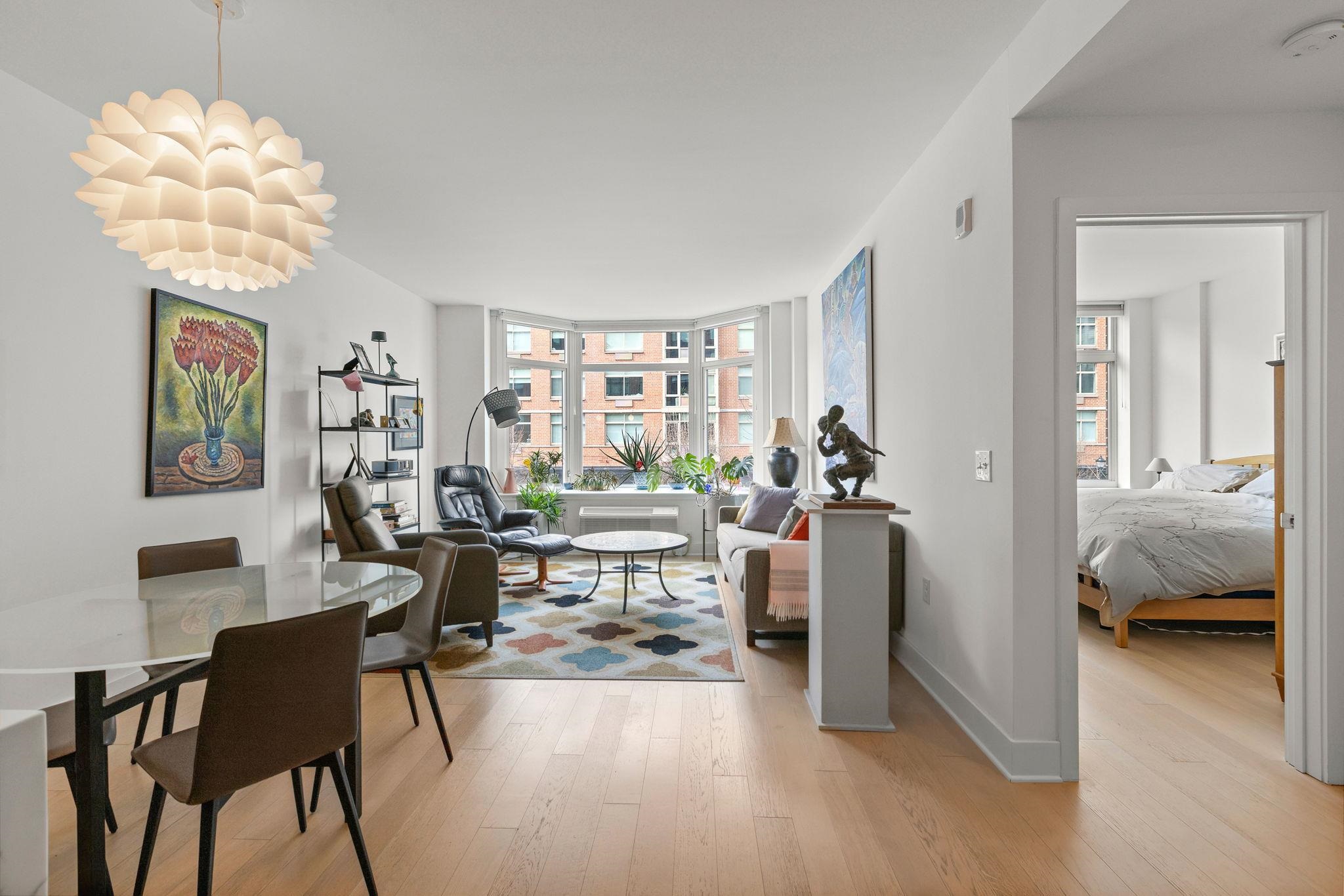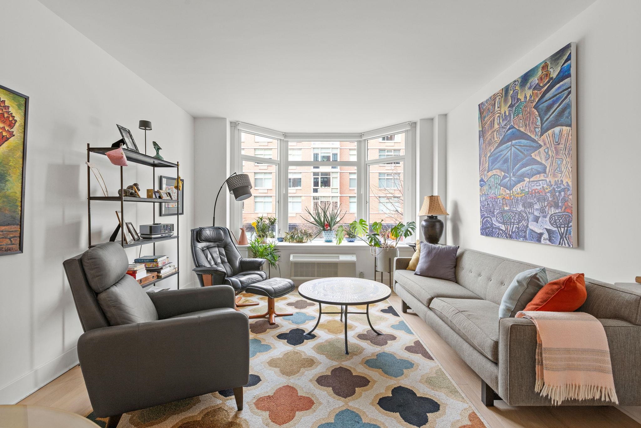 Incredible 1150sqft 1 bed + den with parking in the luxury community of 1400 Hudson! Modern chef’s kitchen includes quartz countertops, stainless-steel appliances, and breakfast bar. Spacious living area includes west-facing bay windows and extra-high ceilings. Primary bedroom has a walk-in closet and ensuite bathroom. Oversized den is perfect as an additional bedroom or office space. The home also features an additional half bath, hardwood floors, in-unit washer/dryer and 1 parking spot #25 conveniently on the same floor. Building amenities include 24/7 concierge, yoga room, cardio gym, weight room, rooftop pool, resident’s lounge, billiards lounge, courtyard, several rooftops with firepits & BBQ grills, playroom, and shuttle to and from the Path train. Located near the ferry, bus to NYC, shops, restaurants, and everything uptown Hoboken has to offer.