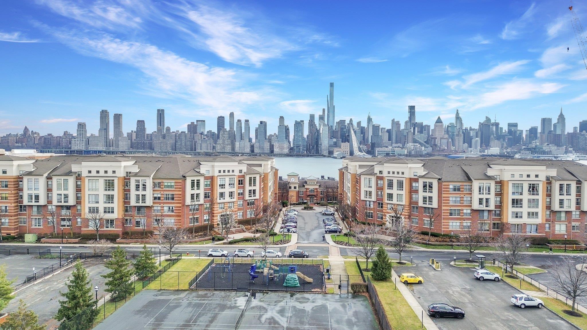 Wake up to sunlight pouring through oversized windows and start your day with the kind of calm you usually have to leave the waterfront to find. This newly renovated 2-bedroom, 2-bath home at Hudson Club offers nearly 1,100 square feet of real, usable space with a layout that makes everyday life feel smoother. Defined living and dining areas give you room to spread out, host comfortably, and keep work and downtime separate without sacrificing an open feel. And for the combination of size, condition, amenities, and NYC access, it is an incredible value. The home is truly move-in ready with fresh paint, a new range, brand new bathroom vanities, and a professionally cleaned finish that feels crisp and polished from day one. In-unit laundry and smart storage keep the details handled so your routine stays simple. Hudson Club is built for elevated, low-friction living with a 24-hour concierge, full fitness center, yoga room, basketball court, movie theater, pool, fire pit, resident lounges, and guest parking. And the feature you will feel every day: a deeded private parking space, so coming home is always easy. Monthly HOA includes water, gas, internet, and cable, keeping your monthly costs predictable and streamlined. The location is a true lifestyle win: steps to grocery stores, Starbucks, and the Port Imperial Ferry to NYC, a fast, direct, and genuinely enjoyable commute into Manhattan. Outside your door you also have waterfront paths and neighborhood conveniences that make day-to-day living feel effortless. If you want a home that feels finished, calm, and perfectly positioned for NYC access without giving up space, this is the one. Schedule your private tour today.