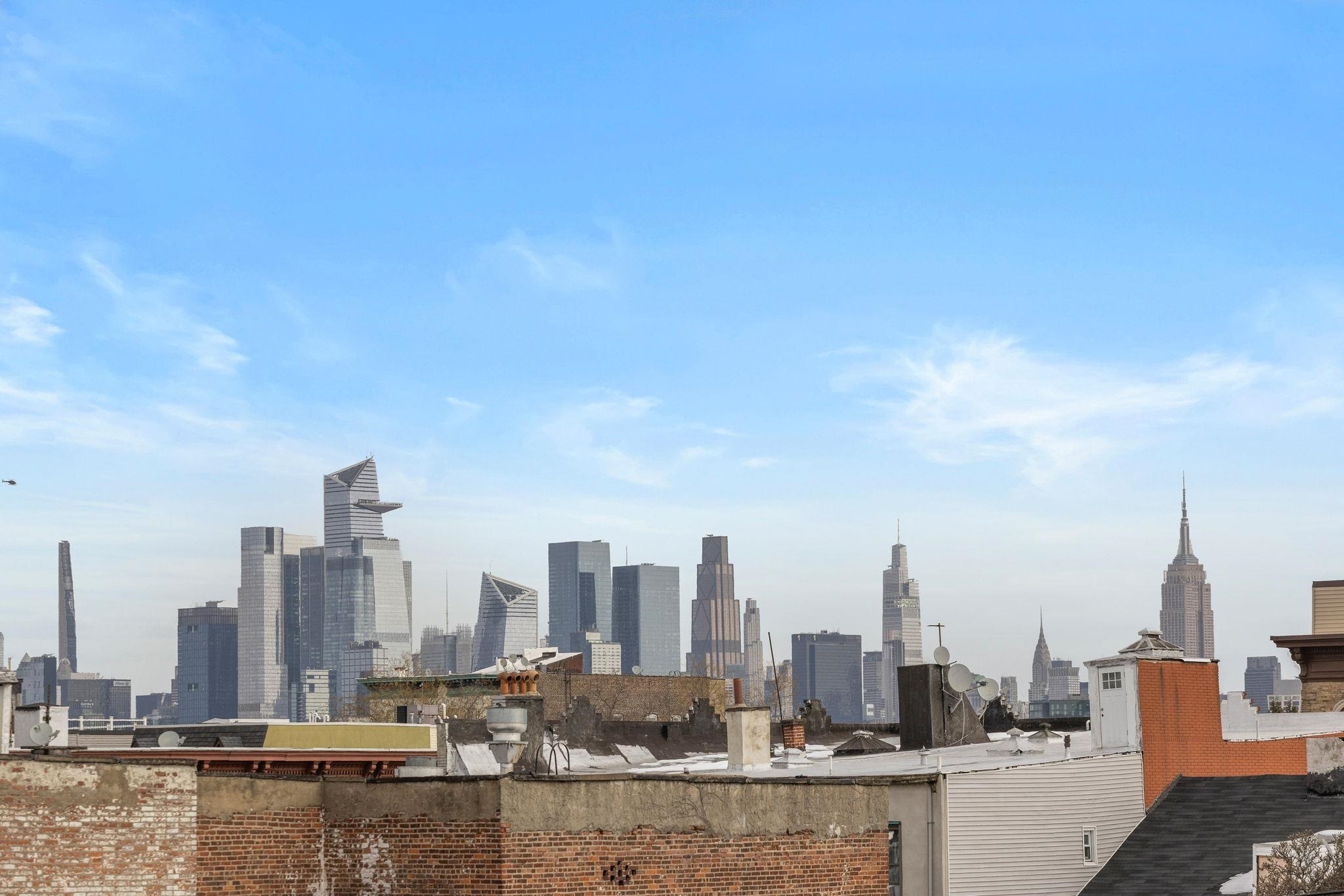 Behold, 139 New York Avenue! Built in 2023 by respected local builder Blue Chip Properties, this beautifully maintained 3BR / 2BA condo offers contemporary design and high-end finishes in one of Jersey City’s most desirable neighborhoods. Conveniently located near Hoboken, the Light Rail, and Riverview-Fisk Park. Open-concept living/dining area with 12’ ceilings, oversized Andersen windows and fully glass stairway provide exceptional natural light. The chef’s kitchen is fully equipped with WOLF range, smart stainless-steel appliances, pot filler, waterfall quartz island, and porcelain backsplash. The primary suite includes custom millwork, walk-in closet, private balcony, and ensuite bathroom. The private rooftop terrace features spectacular NYC views, a large section of syn-lawn, modern planter boxes with irrigation system, and gas/water/electric hookups plus a wet bar and wine refrigerator in the bulkhead. Additional highlights include laundry closet, Smart Home system (Google Nest doorbell & thermostat), non-tandem garage parking with EV charging outlet.