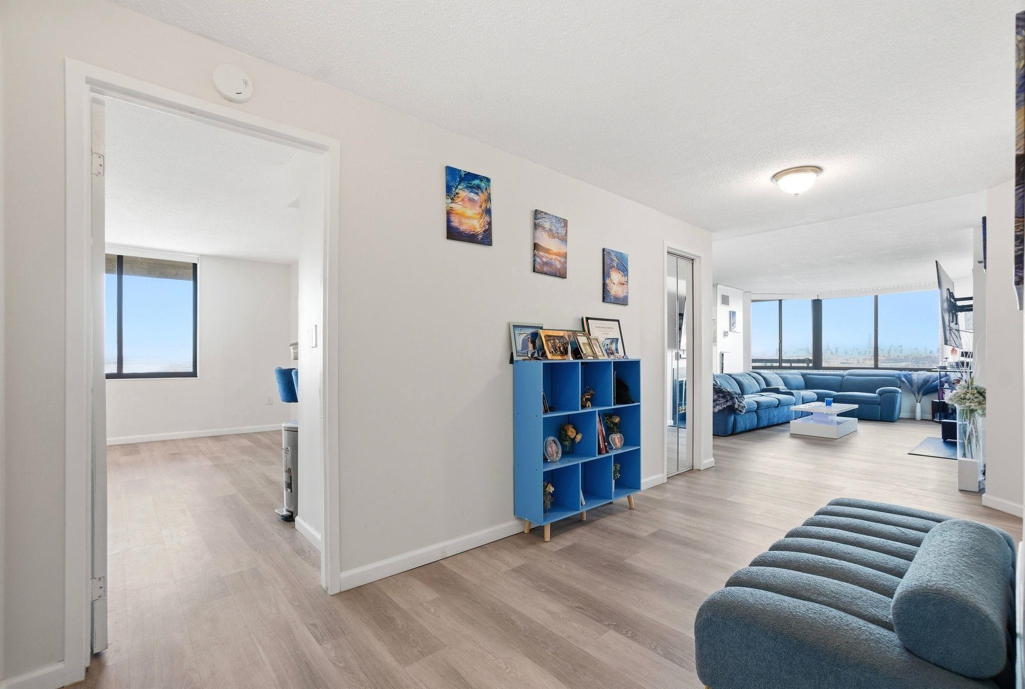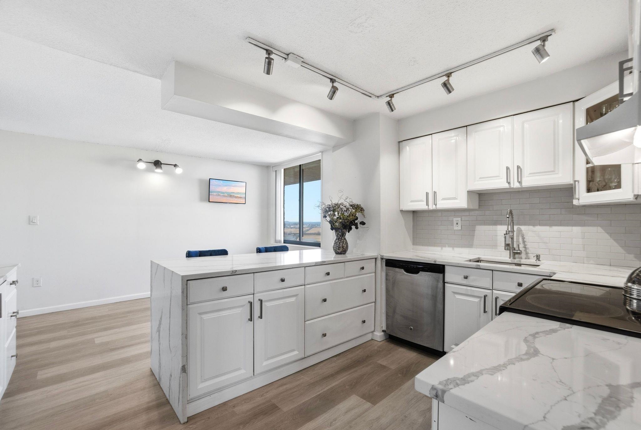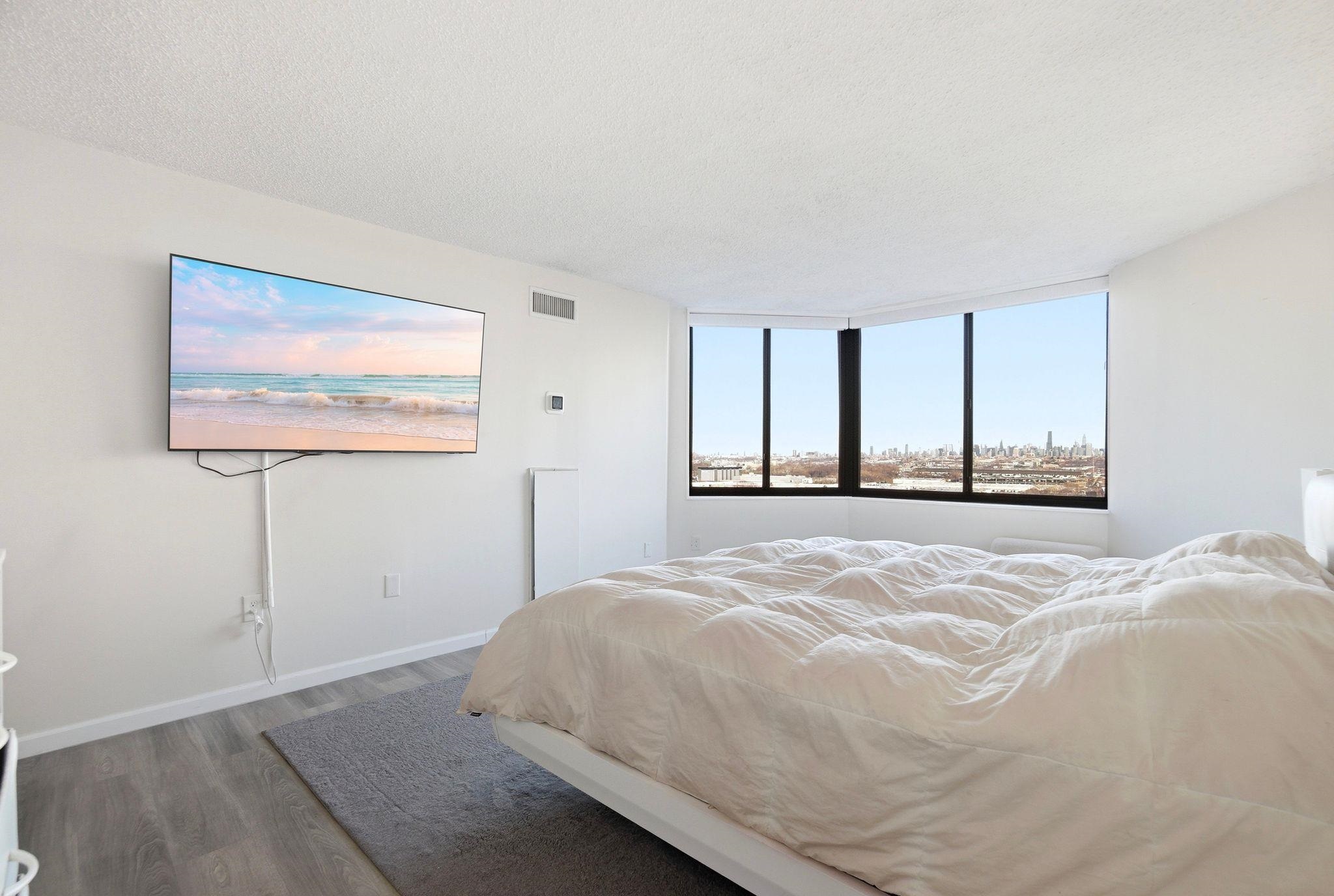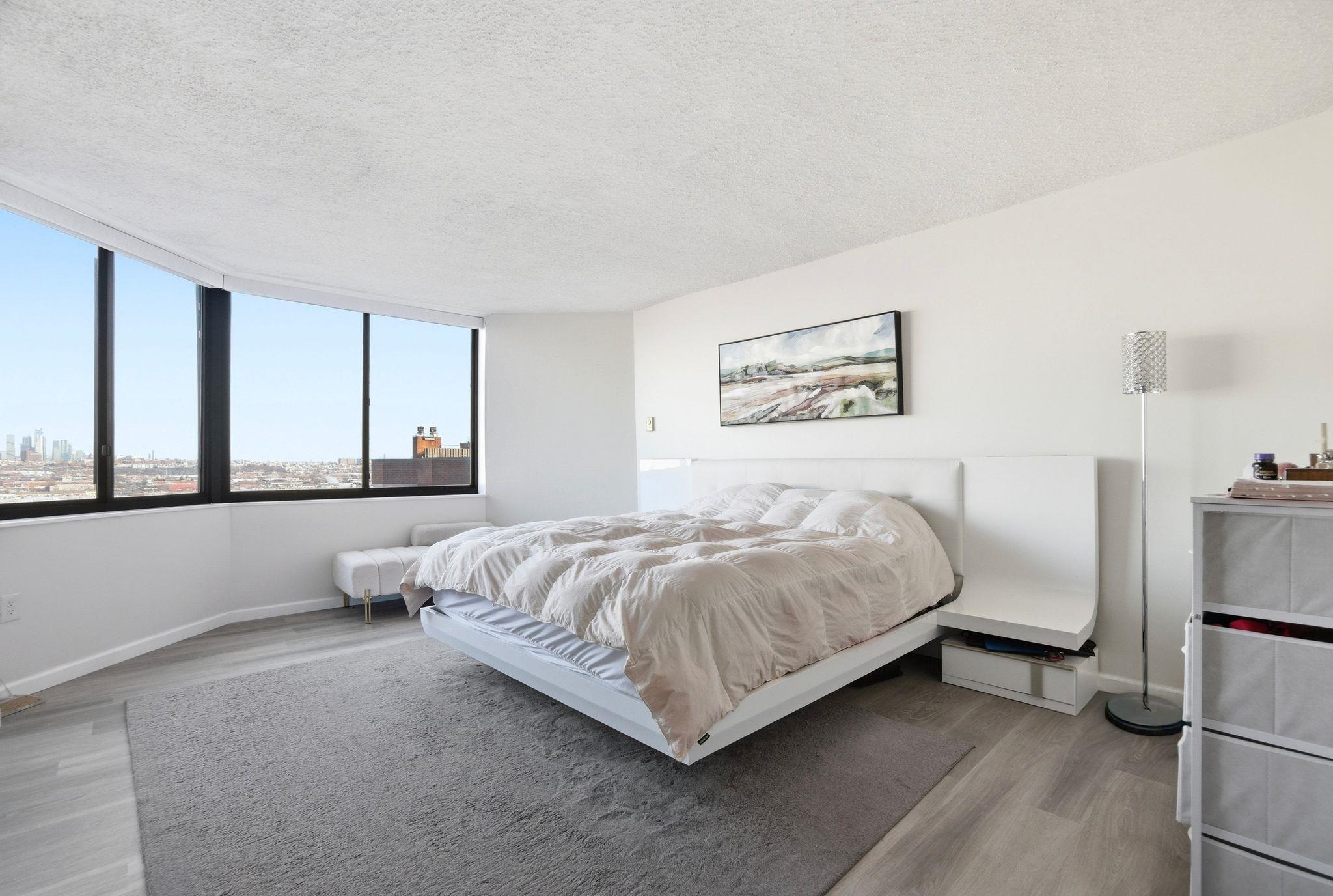 Welcome to this beautiful, oversized, and rare corner condo offering breathtaking NYC skyline views! This stunning and renovated residence features 2 bedrooms and 2 full bathrooms, plus an oversized eat-in kitchen with bonus den space ideal for additional seating or a work-from-home setup. Located on the 16th floor just steps from the elevator, this bright and spacious home is filled with natural light throughout. Enjoy spectacular, unobstructed NYC skyline views from both inside the home and your private walk-out terrace — the perfect place to relax, unwind, and take in the city lights. The thoughtfully designed layout includes a large entry foyer, expansive living room, formal dining area, and an eat-in kitchen equipped with quartz countertops and stainless steel appliances. The luxurious primary suite features a walk-in closet and an oversized bathroom complete with Jacuzzi tub, separate standing shower, and double sinks. Wake up and fall asleep to stunning NYC skyline views visible from the bedrooms as well. A generously sized second bedroom and full hallway bath complete the home. Additional highlights include central A/C, in-unit washer/dryer, and one deeded indoor parking space. Indoor storage and extra parking spots available through management. Residents of Harmon Cove Towers enjoy resort-style amenities including 24-hour doorman/concierge, security, elevators, pool and kids’ pool, fitness center, steam room, basketball and tennis courts, children’s playroom, game room, outdoor play area, and vibrant community social events. Commuters’ dream location with on-site NYC transportation, NJ Transit express bus directly under the building, and close proximity to Secaucus Junction, NJ Turnpike, Routes 3, and Newark Airport. Situated in a quiet town with well-regarded schools and variety of shopping stores. Move right in and enjoy luxury living with unbeatable NYC access!