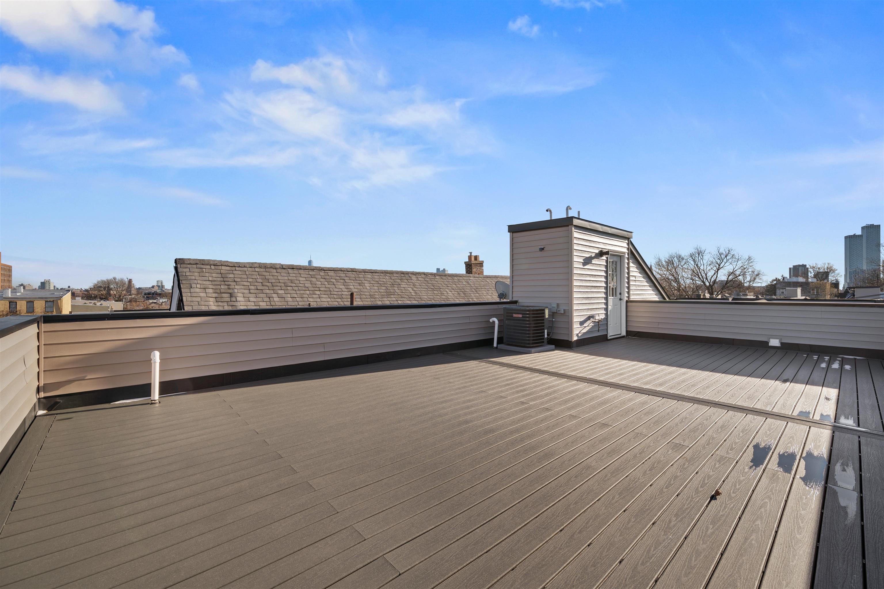 2026 LUXURY Brand New Construction! Welcome to the Grandeur of these captivating NEW CONSTRUCTION LUXURY CONDOS in Jersey City Heights and prepare to be amazed! Unit 2 is a glamorous MEGA CONDO full of opulence and character! Upon entering this unit, you are greeted with an expansive floor to ceiling glass wall and epic 14 FT. high cathedral coffered ceilings with natural skylights. Your eyes will be dazzled with the enormity of the living area, which features a stunning fireplace within a decorative accent wall. The huge kitchen is a MASTERPIECE!, personified with exquisite gold veined Calcutta Quartz countertops with matching backsplashes, natural hardwood cabinets, and a high end appliance package w/ wine fridge. The bathrooms are adorned with exquisite Italian tiling, beautiful vanities, and sharp light up mirrors. Make your way up to your LARGE private rooftop deck with insane & unobstructed NYC views. Rooftop deck also comes with its own gas line for those summertime BBQ's. Other luxury features include 4in natural hardwood floors, Anderson Windows, and a RING doorbell. Your guests are guaranteed to be mesmerized by this truly Jaw-dropping condo! Unit comes with a 10-year new home warranty. 5 year Tax Abatement has been GRANTED & APPROVED for the property! * virtually staged photos.