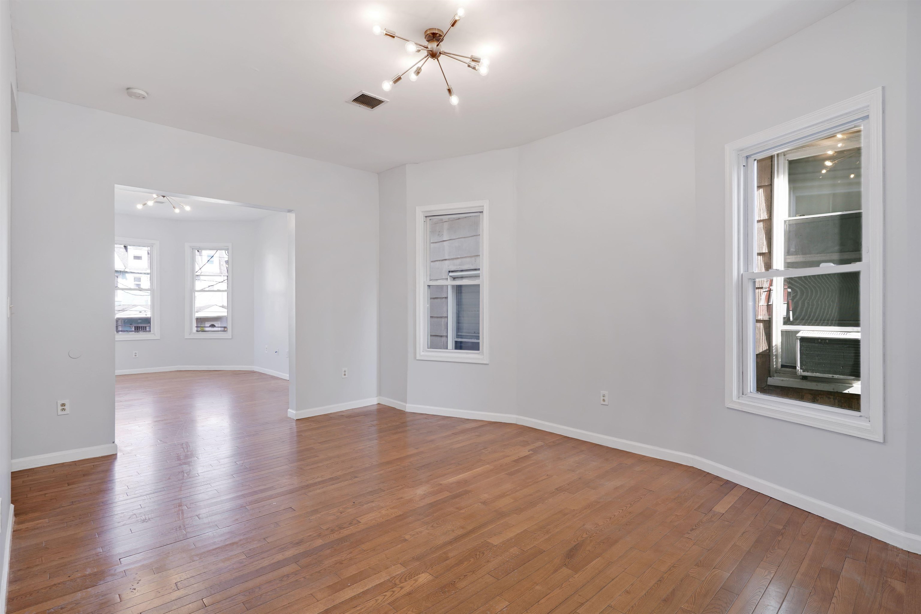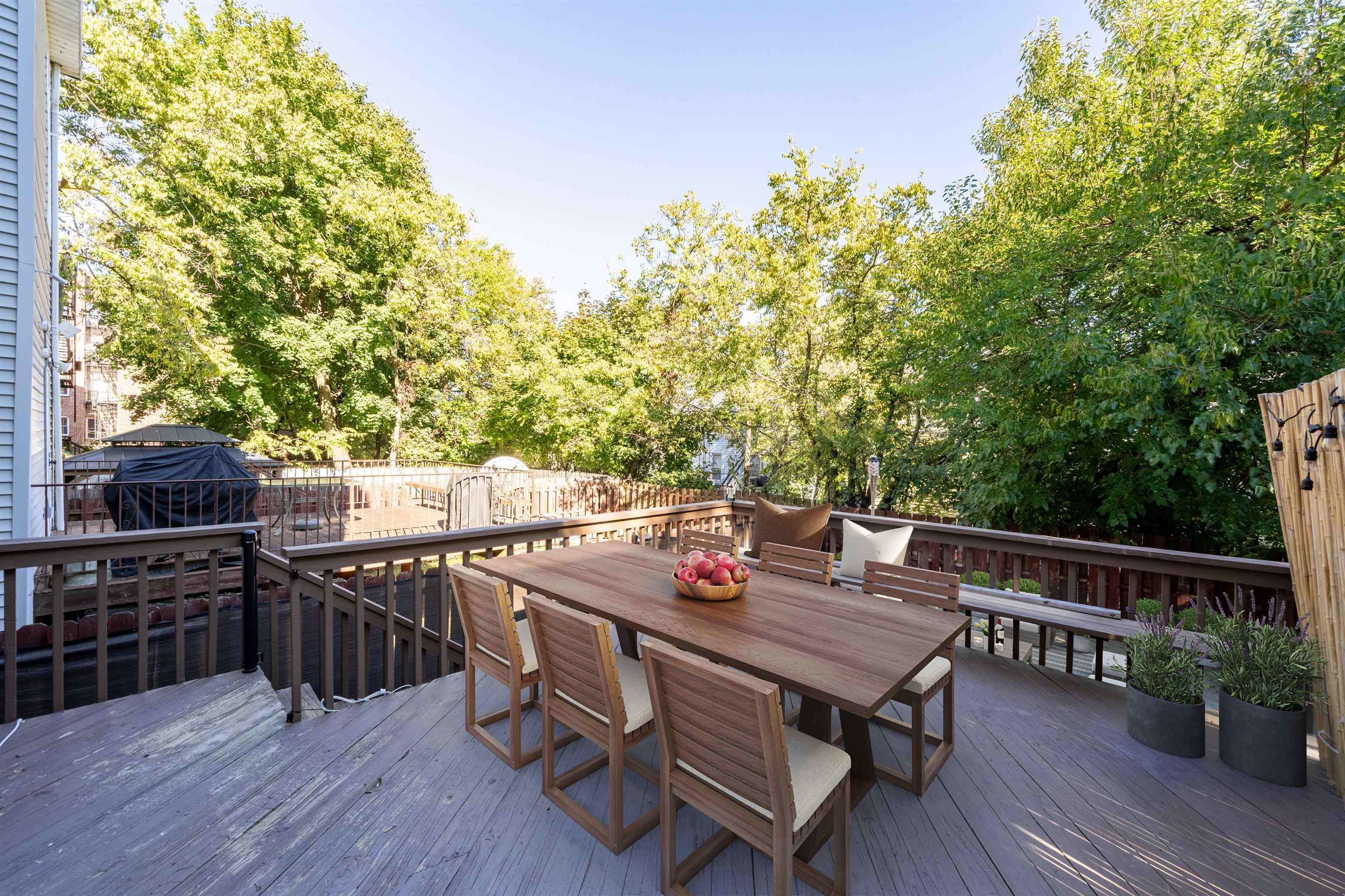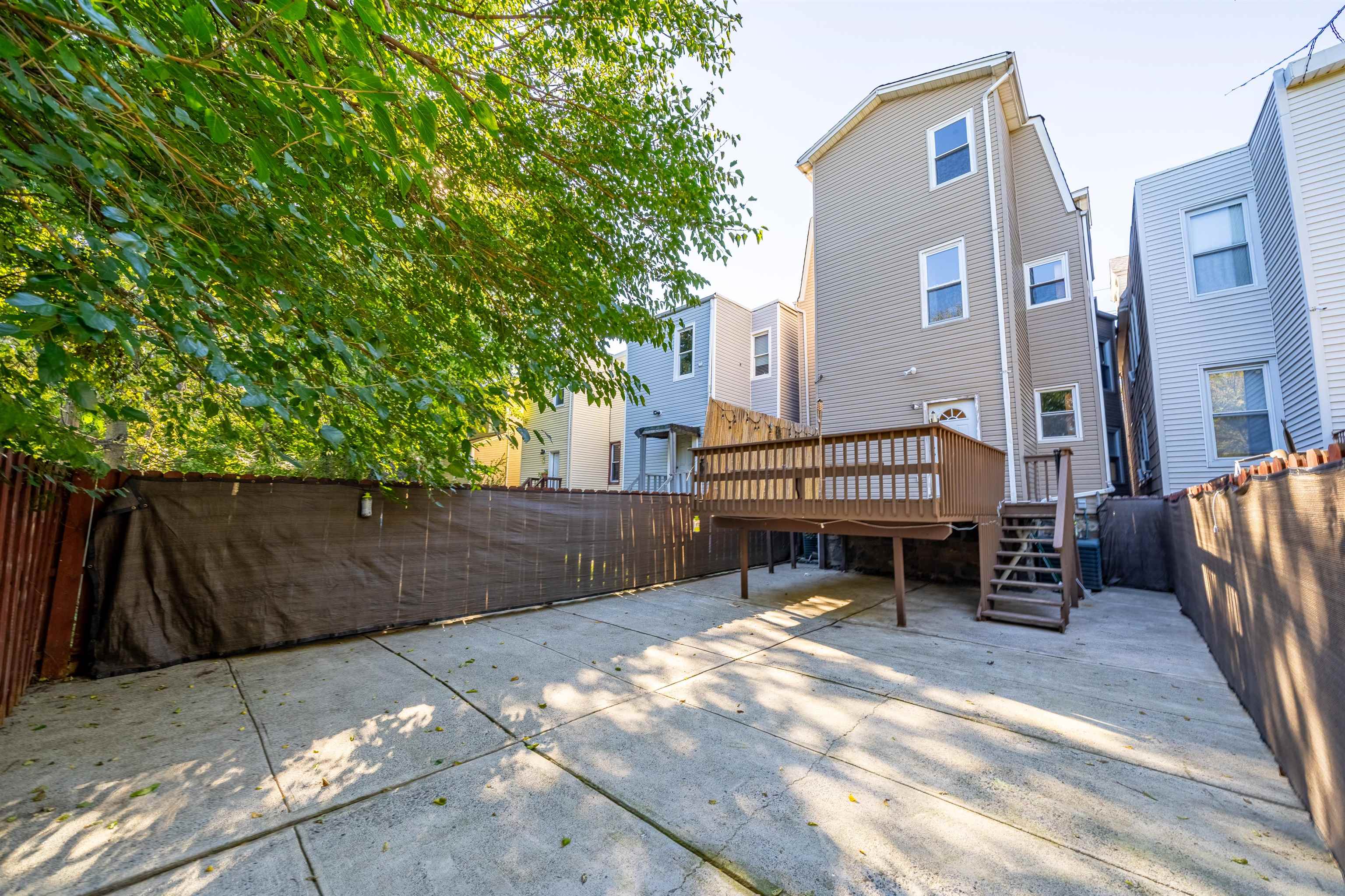 Every convenience you can imagine is included in this exceptional two-family property located on a quiet, tree-lined Bergen-Lafayette street. Offering a combined 4,200 sq. ft. of interior space, this home is perfect for either an owner-occupant or investor. Unit 1 is a large 3 bed 1 bath with approximately 1,400 sq. ft of living space and features a spacious kitchen with updated cabinets and stainless steel appliances, a large living and dining area, abundant storage, and a large deck and a private backyard. Unit 2 spans the top two floors with 4 bedrooms and 2 baths across approximately 2,800 sq. ft., including a main level kitchen with updated cabinets and stainless steel appliances, large open living and dining areas, a private terrace, 3 bedrooms and a full bath on this level. Upstairs is an expansive primary suite with its own bathroom, walk-in closet, and partial city views. Throughout the building you’ll find hardwood floors, contemporary lighting, central A/C, in-unit washer/dryers, abundant closet space, and 2 off-street parking spots. Located minutes from Garfield Ave. and MLK Dr. Light Rail stations for effortless commuting, it’s a short stroll to Jackson Square, the City Hall Annex, Extra Supermarket, and Berry Lane Park, offering neighborhood conveniences on a peaceful residential block.