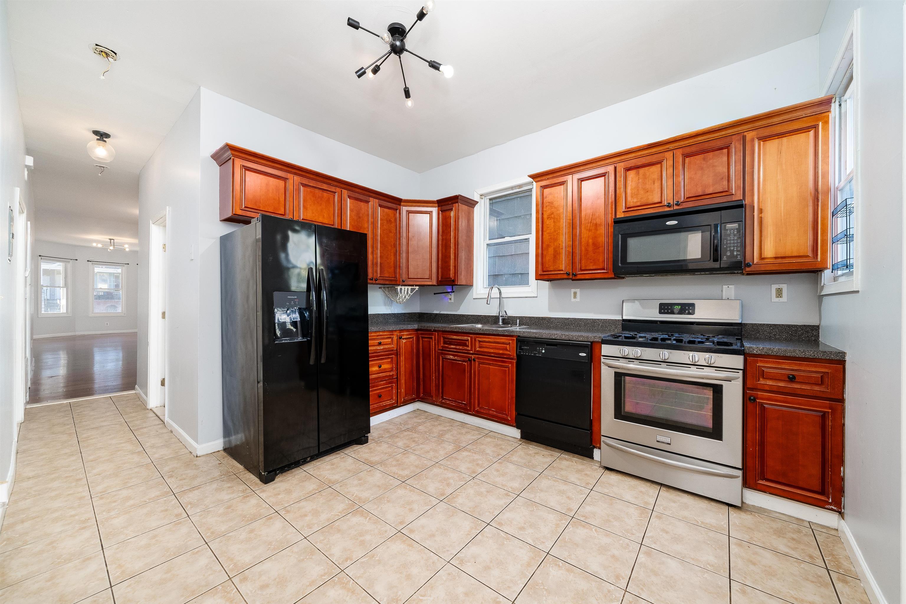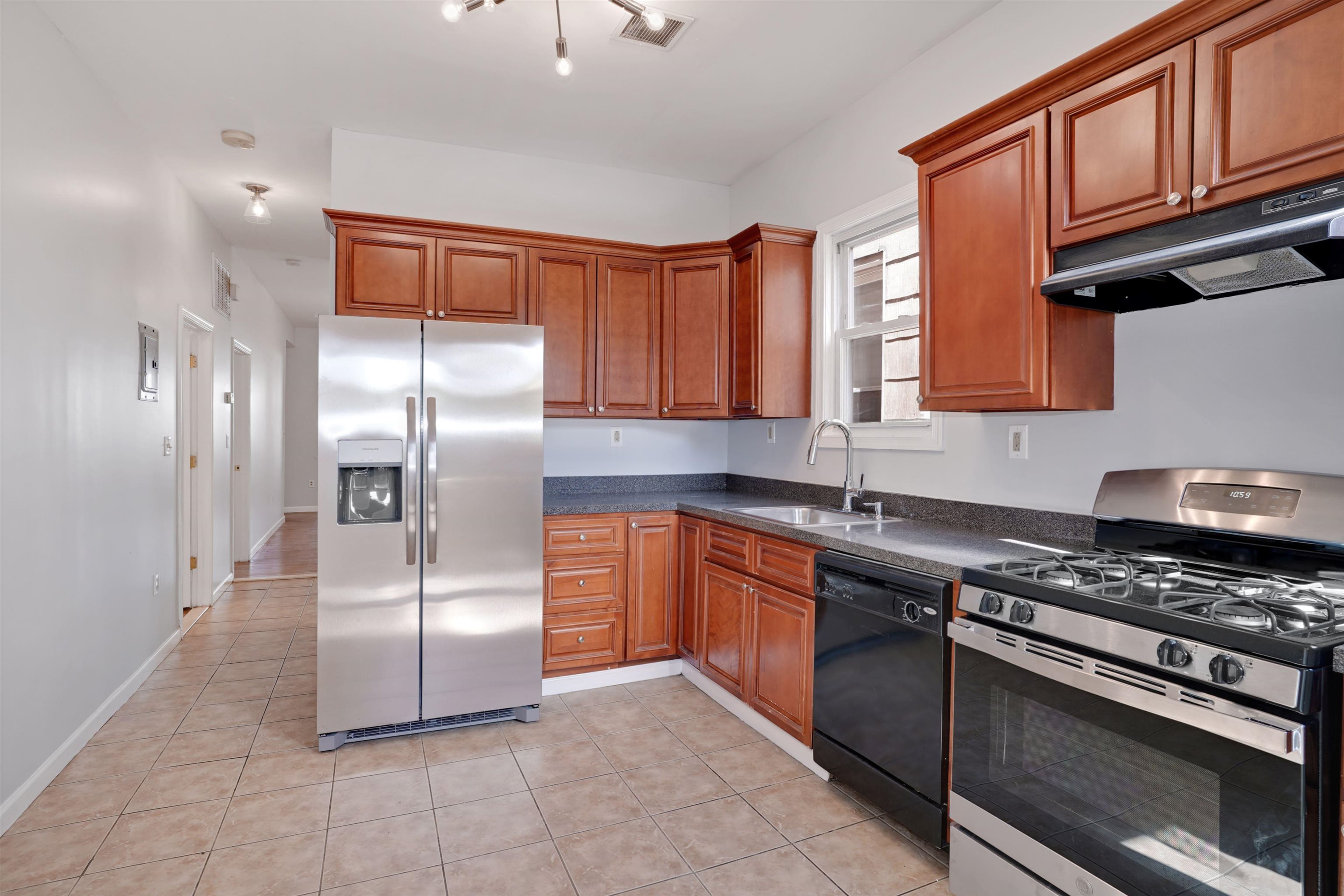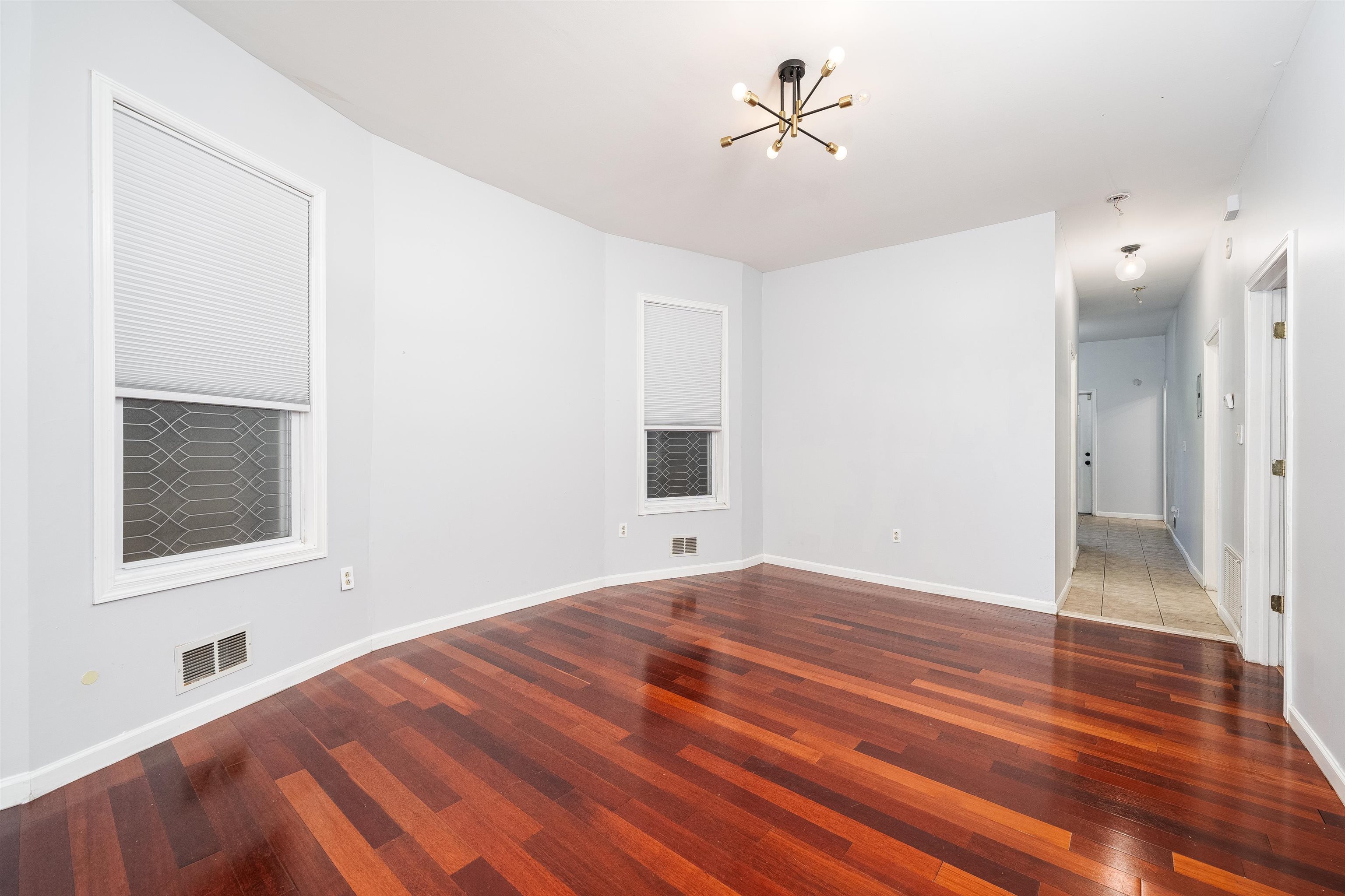 Every convenience you can imagine is included in this exceptional two-family property located on a quiet, tree-lined Bergen-Lafayette street. Offering a combined 4,200 sq. ft. of interior space, this home is perfect for either an owner-occupant or investor. Unit 1 is a large 3 bed 1 bath with approximately 1,400 sq. ft of living space and features a spacious kitchen with updated cabinets and stainless steel appliances, a large living and dining area, abundant storage, and a large deck and a private backyard. Unit 2 spans the top two floors with 4 bedrooms and 2 baths across approximately 2,800 sq. ft., including a main level kitchen with updated cabinets and stainless steel appliances, large open living and dining areas, a private terrace, 3 bedrooms and a full bath on this level. Upstairs is an expansive primary suite with its own bathroom, walk-in closet, and partial city views. Throughout the building you’ll find hardwood floors, contemporary lighting, central A/C, in-unit washer/dryers, abundant closet space, and 2 off-street parking spots. Located minutes from Garfield Ave. and MLK Dr. Light Rail stations for effortless commuting, it’s a short stroll to Jackson Square, the City Hall Annex, Extra Supermarket, and Berry Lane Park, offering neighborhood conveniences on a peaceful residential block.