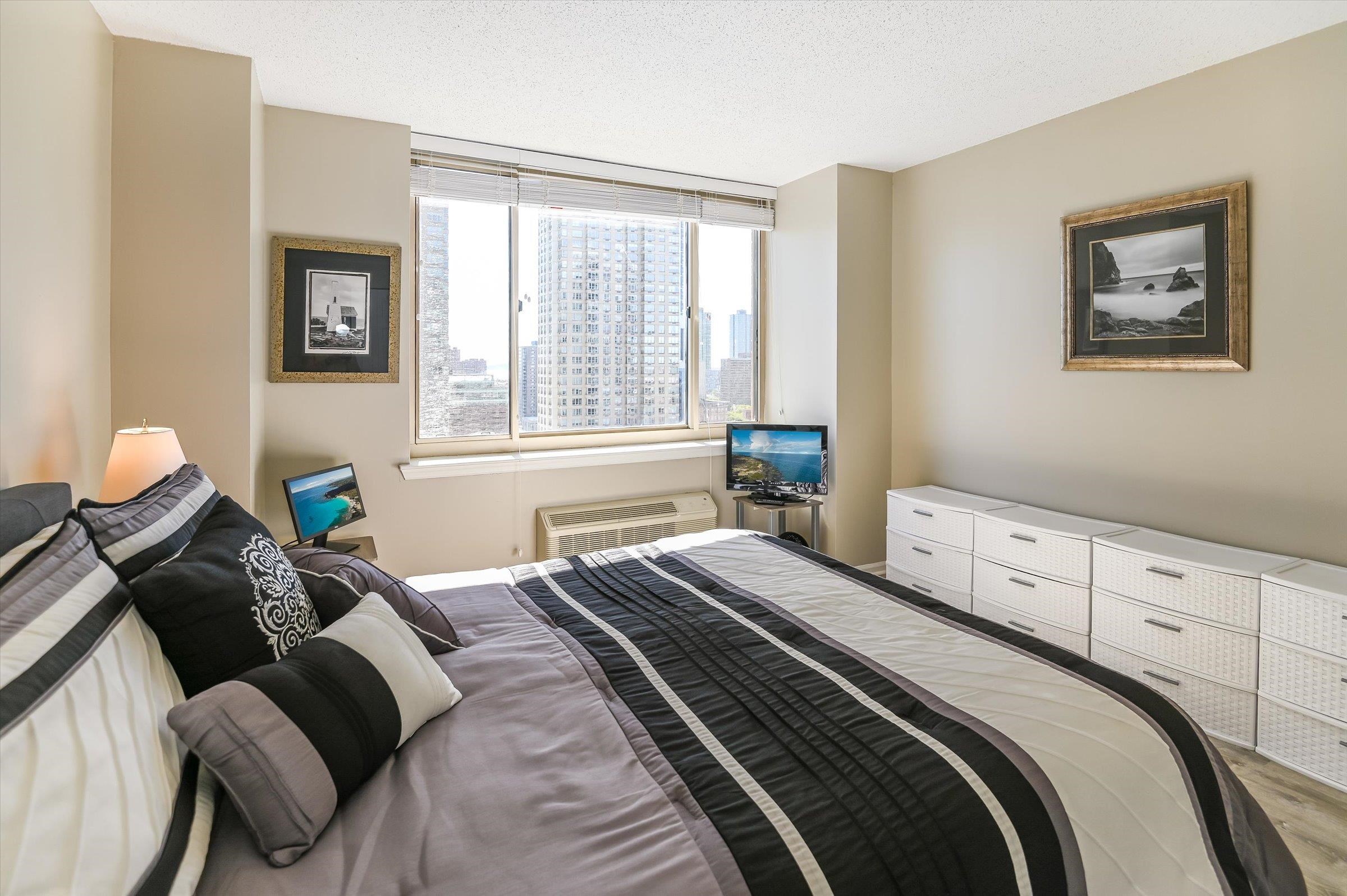 Welcome to your dream home at Portofino, one of Jersey City's premier waterfront luxury buildings. This sun-drenched, south-facing 1-bedroom condo boasts large bay windows that frame spectacular panoramic views of downtown Manhattan, flooding the space with natural light throughout the day. Immaculately maintained, the home features modern flooring, a generously sized living area, a peaceful bedroom retreat and a kitchen with brand new astainless steel appliances. Situated on a quiet, tree-lined street, this waterfront condominium provides an array of resort style amenities, including: 24/7 Concierge, Heated Pool, Well Equipped Gym, Game Room, Children's Playroom, Residents Lounge, Business Lounge, BBQ Grills & a newly renovated Dog Run. HOA includes water, high-speed internet, and DirectTV. This beautiful home is just minutes from Exchange Place & Newport PATH, ferry, light rail, Newport Mall, groceries, and tons of restaurants & bars. Don't miss this rare opportunity to enjoy luxury waterfront living with breathtaking NYC views and outstanding amenities.