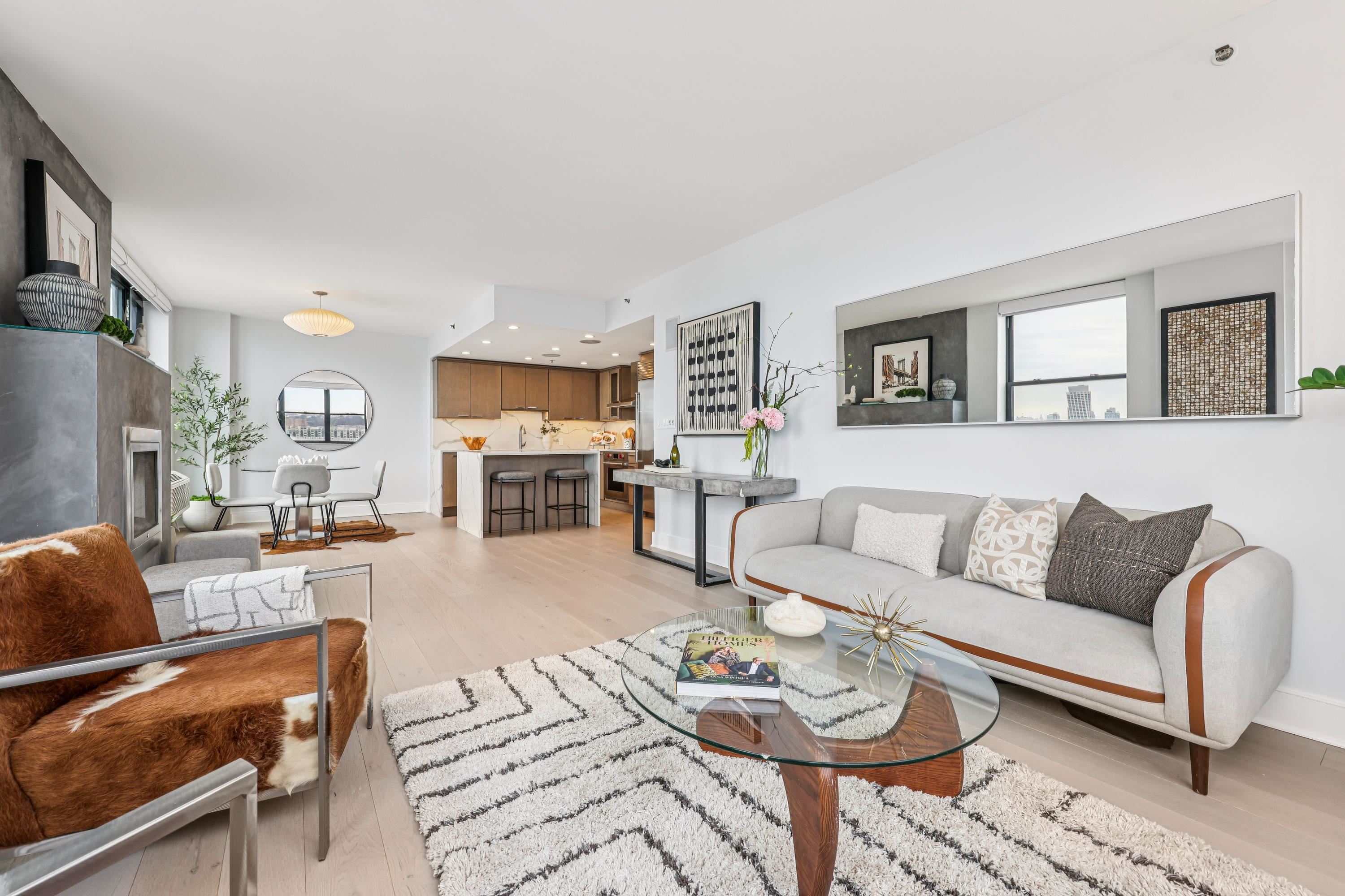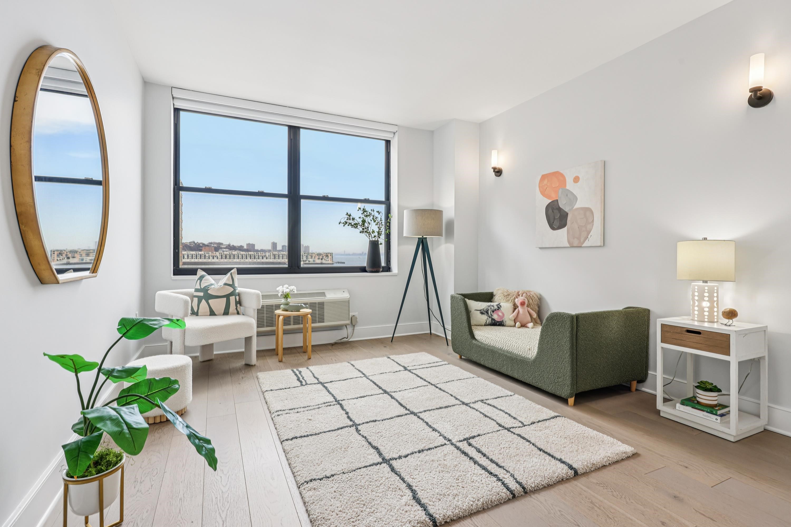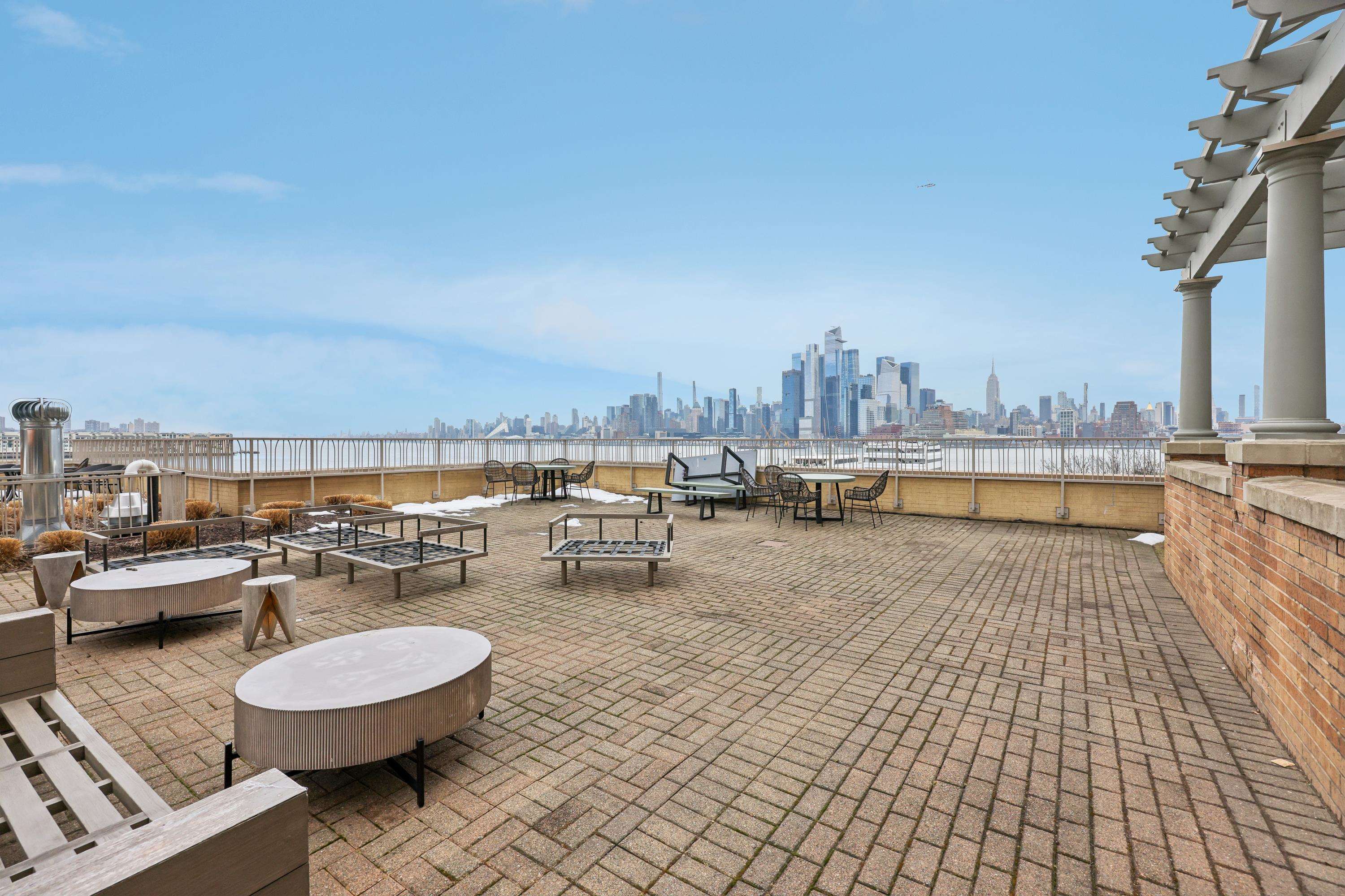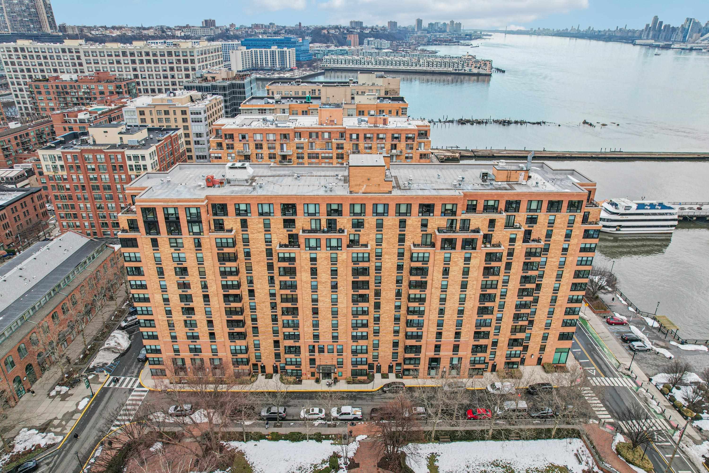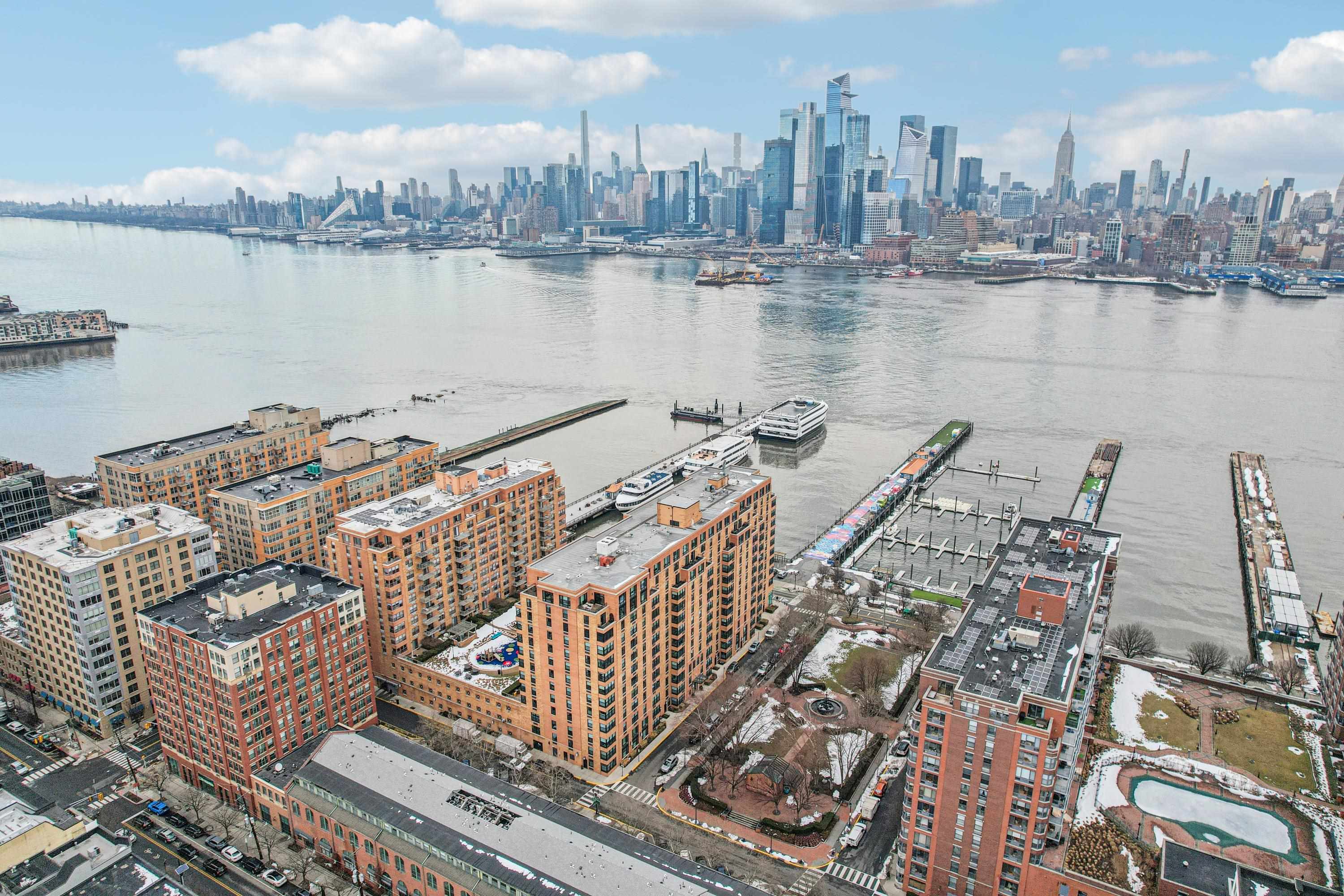 Rarely available northeast corner residence showcasing direct, panoramic views of the Manhattan skyline and Hudson River from every room. Perched within one of Hoboken’s most coveted waterfront communities, this sun-drenched 3-bedroom, 2.5-bath home offers an extraordinary vantage point, where sunrise light pours in and the city skyline becomes your daily backdrop. Thoughtfully designed with meticulous attention to detail, the open-concept layout is anchored by a stunning designer kitchen positioned to capture direct NYC views. Outfitted with top-of-the-line appliances including a Wolf stove with induction cooktop and a SubZero refrigerator, the space is complemented by elegant quartz countertops and a full-height backsplash. Custom finishes throughout include wide-plank oak hardwood floors, Hunter Douglas electric blinds, Lutron lighting, a Hearth Cabinet ventless fireplace, spa-inspired bathrooms with Toto fixtures, and abundant custom closet space. Well-proportioned rooms, natural light from multiple exposures, and refined design elements create a seamless blend of sophistication and comfort. Residents enjoy full-service luxury amenities including a 24/7 concierge, dual elevators, a gym on the third floor, a landscaped fourth-floor courtyard with a children’s play area, seasonal outdoor pools (add'l fee), and on-site garage parking options (add'l fee). Perfectly positioned on the uptown Hoboken waterfront, you are just minutes from the ferry and bus to NYC, the 13th Street Pier, waterfront promenade, parks, marina, top-rated schools, and the vibrant shops and restaurants along Washington Street. This is waterfront luxury living at its finest, offering peaceful riverfront serenity without sacrificing convenience, connectivity, or style. Come unpack, enjoy, and make this your new home today!