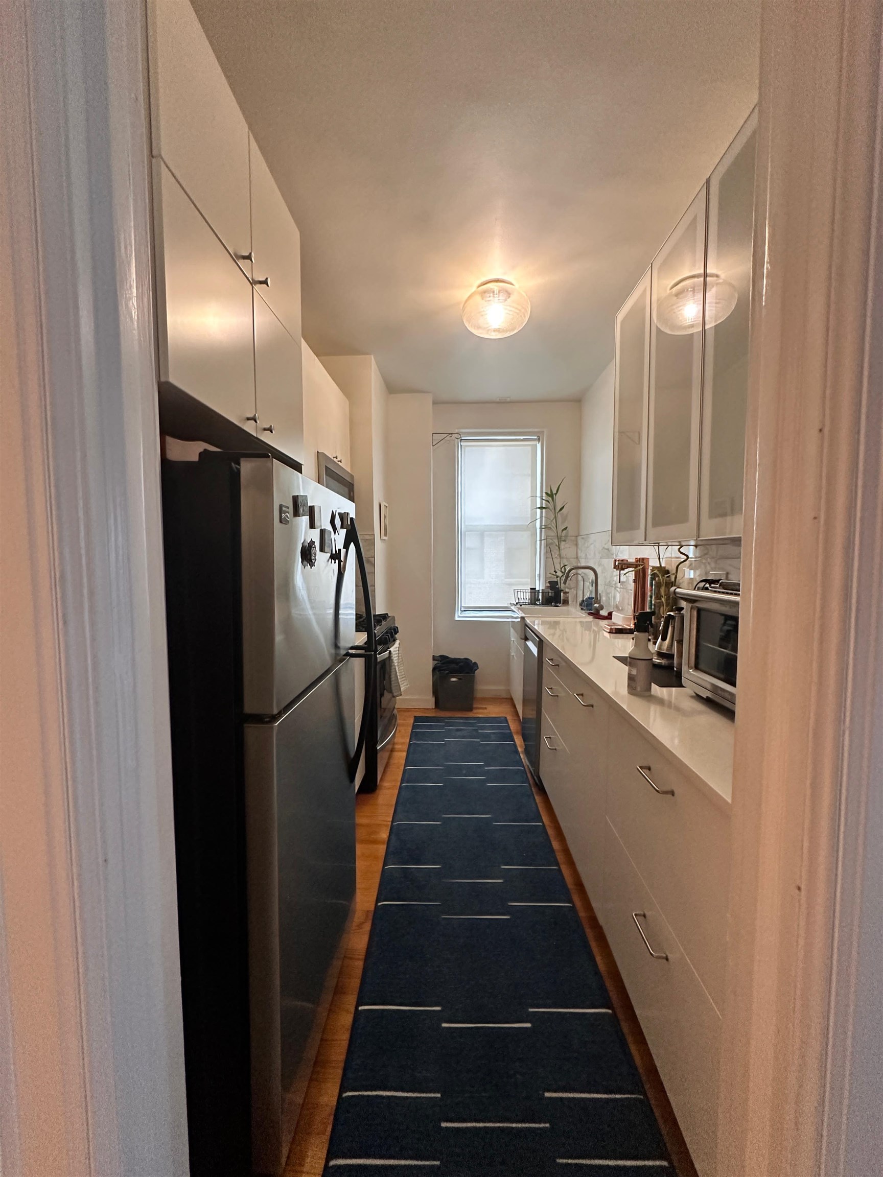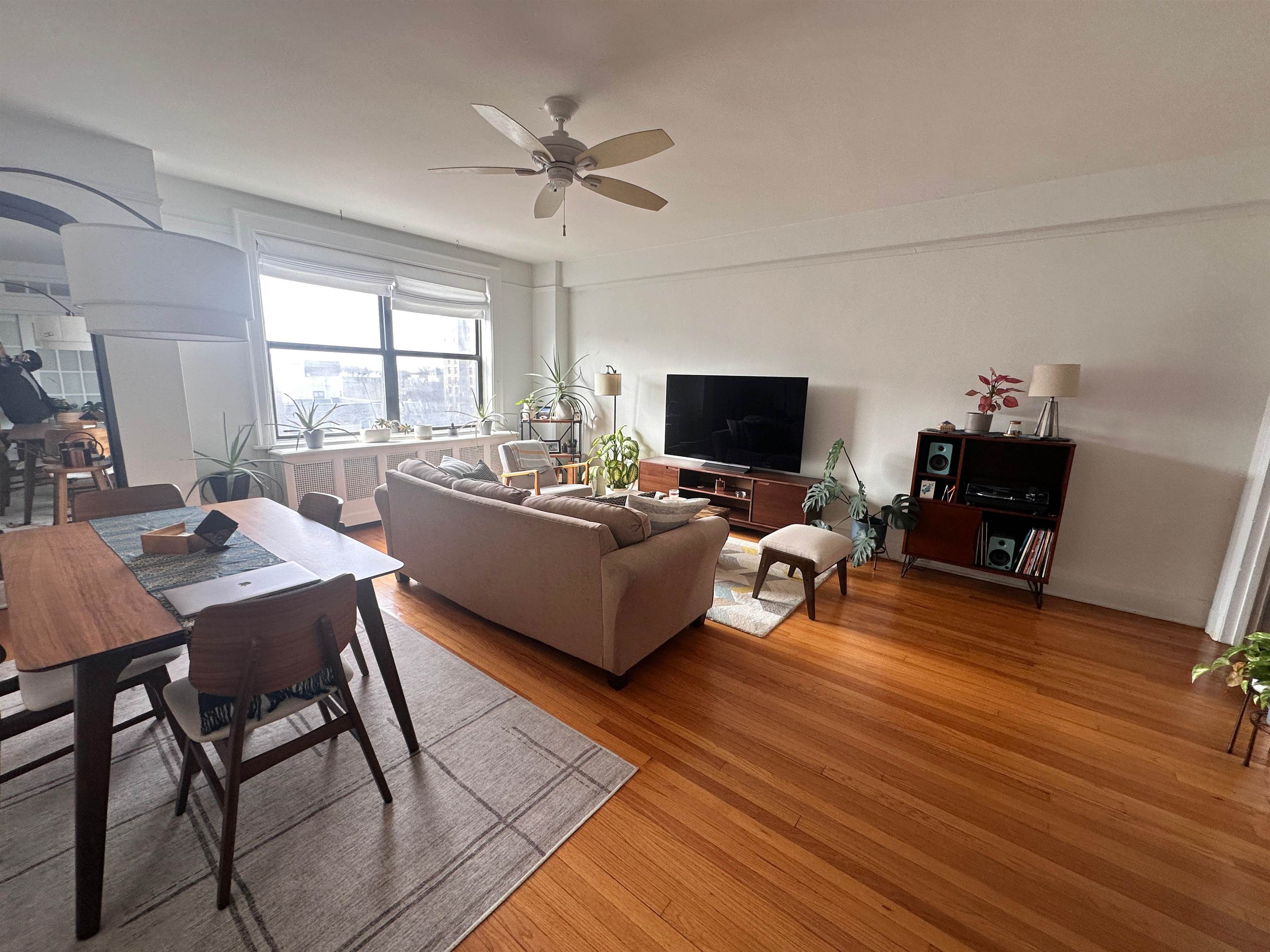 Enter this spacious 2 bed 1 bath 1335 square feet condo apartment in the "Haque" building with a formal foyer! The kitchen is renovated with granite counter tops, SS appliances. Living space with high ceilings and decorative lighting fixtures. The flooring is all hardwood. Lots of lighting in the apartment as the windows face south. The 2nd bedroom can be converted into a dining room if so desired. The 2 closets are huge. The condo apartment is close to Lincoln Park, St. Peter's University and 15 minutes from Journal Square Path Station, NJ transit bus. Lots of restaurants, coffee shops and markets nearby. HOA fees include heat, gas and water. Building amenities include a large laundry room and gym. Gym has a nominal fee.