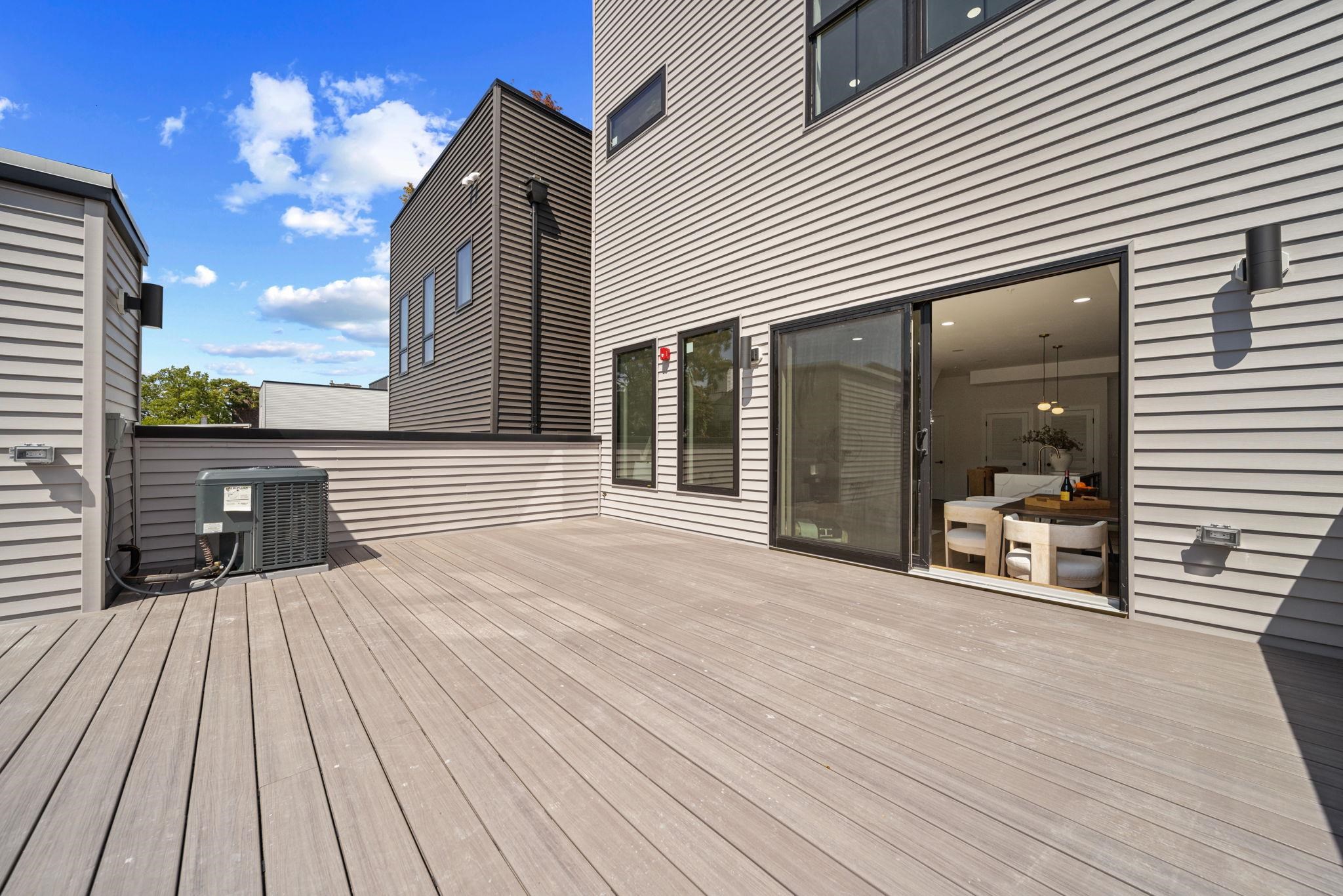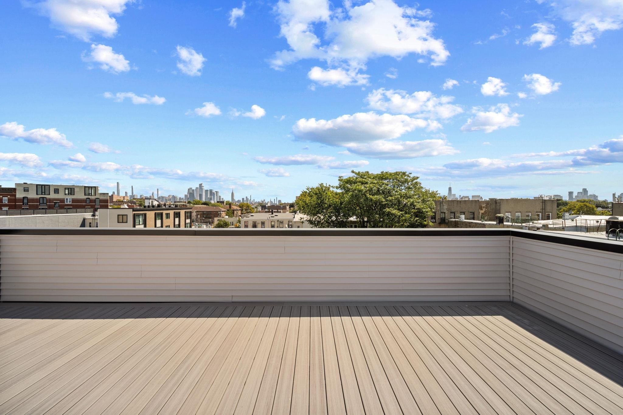 Elegant 3 Bedroom, 2.5 Bath Duplex with Two Private Roof Decks in Jersey City Heights. Beautifully appointed and bathed in natural sunlight, this exceptional 3 bedroom, 2.5 bath duplex offers the perfect blend of space, style, and modern comfort in the highly desirable Jersey City Heights. Spanning two thoughtfully designed levels, the home features an open-concept layout that transitions seamlessly from the living and dining areas to a private roof deck ideal for effortless indoor–outdoor dining and entertaining. A second private rooftop deck crowns the residence, offering a secluded retreat with sweeping city views. Oversized windows throughout flood the interiors with sunlight, accentuating the home’s generous proportions and refined finishes. The chef’s kitchen is a striking focal point, equipped with professional-grade appliances including a pot filler, double wall oven with microwave, air-fry, and speed-cook functions, a fully vented hood, and custom cabinetry that balances timeless elegance with practical functionality. The serene primary suite includes a spacious walk-in closet and a sleek en suite bath featuring radiant heated floors. Bathrooms throughout the home showcase designer tilework and premium fixtures, underscoring the property’s meticulous attention to detail. Additional highlights include private, dedicated basement storage and a state-of-the-art SwiftReader facial recognition system for secure, keyless front entry. Every element of this residence has been carefully curated, offering exceptional craftsmanship, abundant natural light, and the rare luxury of two private outdoor spaces. Nearby indoor garage parking available for additional fee. Five year tax abatement. Attractive rate buy-down options offered.
