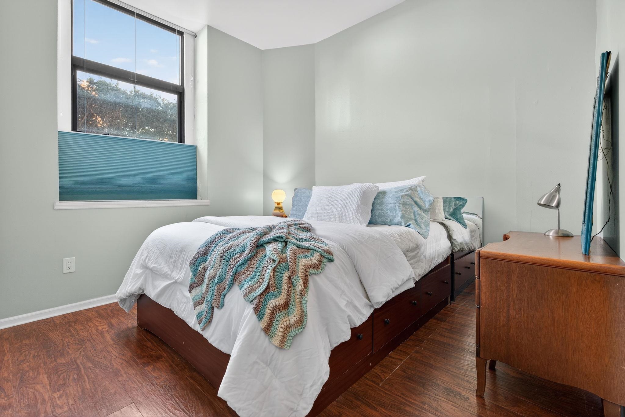 This one bedroom in a historic converted school house is exactly what you've been looking for! This cozy corner unit is private and spacious, with windows facing the building's quiet courtyard. The bedroom has the oversized walk-in closet of your dreams as well as additional overhead storage. The pet-friendly building features a welcoming common courtyard, a washer/dryer room on the same floor as the unit, and all in the heart of Jersey City Heights! Enjoy immediate access to the vibrant neighborhood's shops and restaurants, only one block from Washington Park. Commuting is effortless with a direct bus to the Port Authority Bus Terminal and to the Hoboken Terminal stopping right outside your door. The 9th Street Light Rail Station is also a short trip around the corner-- this is a location you cannot beat. Schedule your private viewing today!