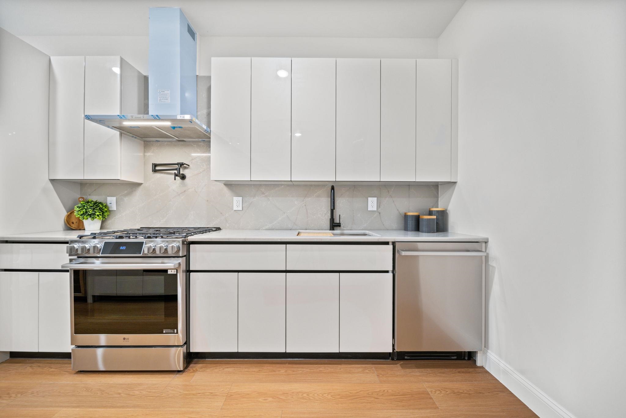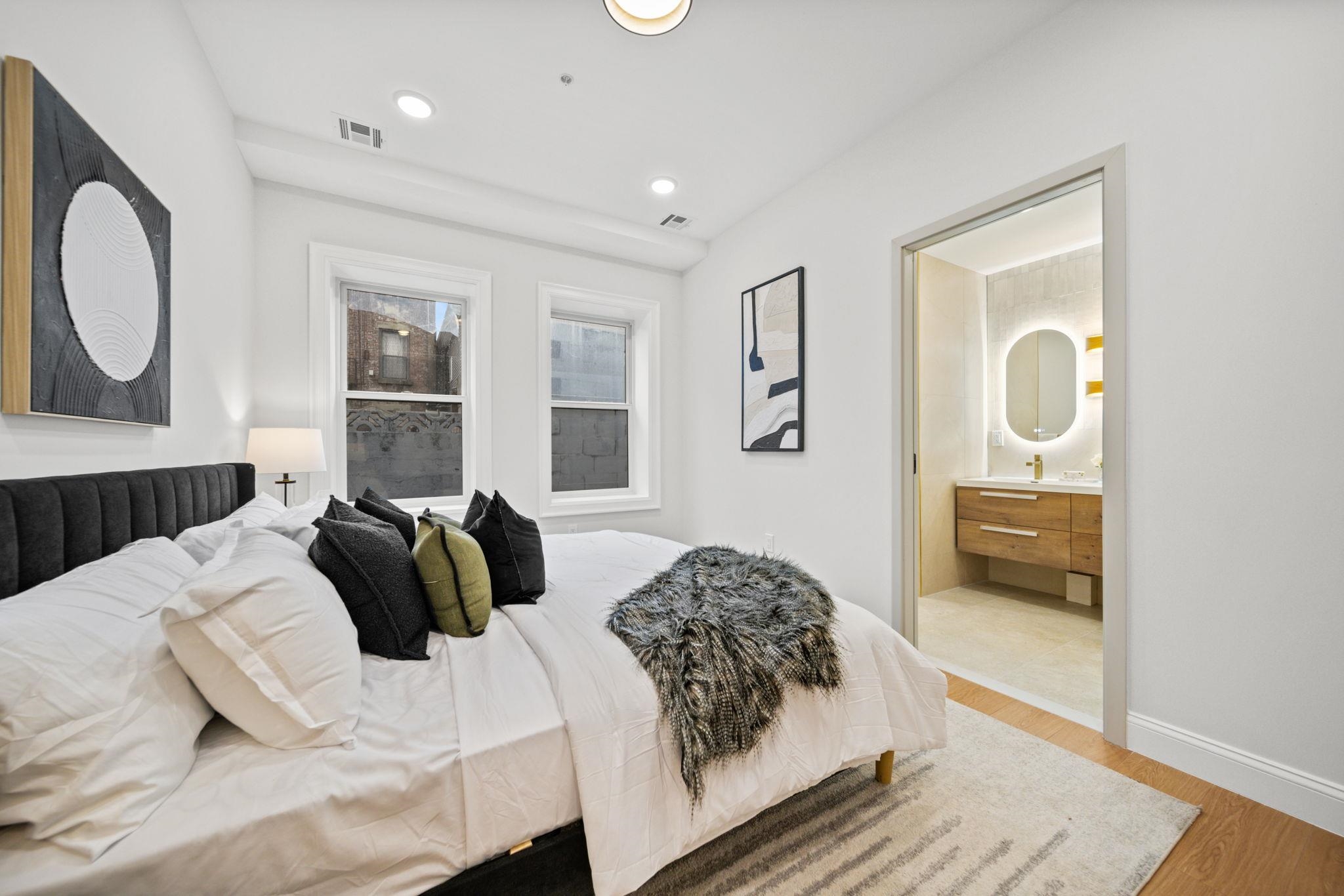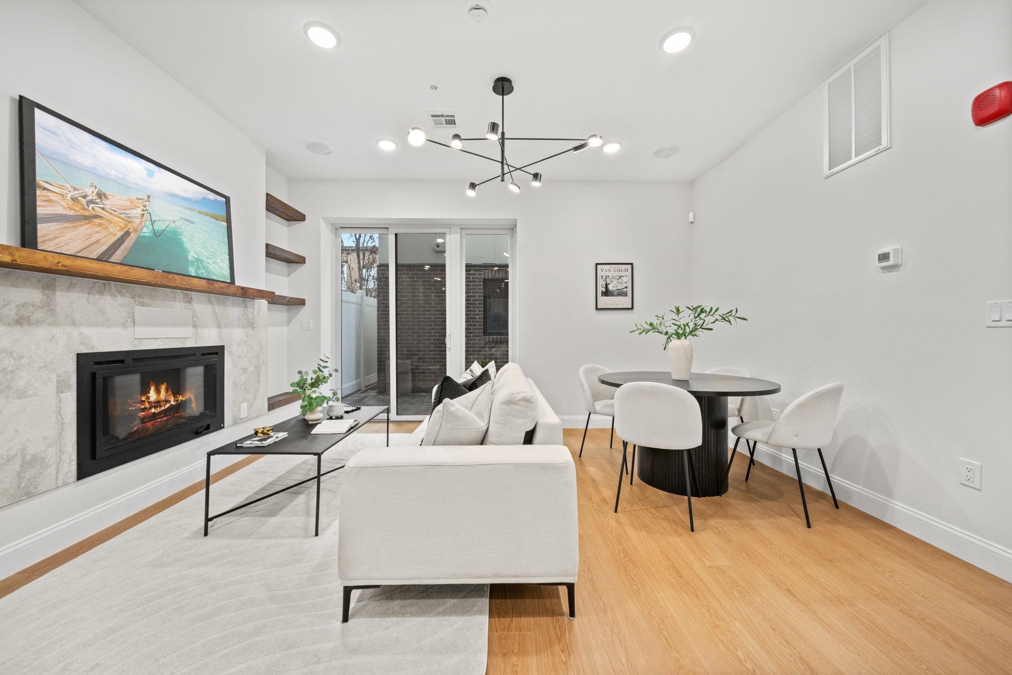 No stairs plus private patio! Five new-construction condominium homes redefine modern living in the best location of Jersey City Heights. Each home showcases a refined aesthetic and carefully curated details. Chef-inspired kitchens feature expansive Taj Mahal quartz islands, premium LG stainless appliances with gas range, a Frigidaire wine cooler, and Sharp built-in microwave. Primary baths offer a spa-like escape with porcelain and ceramic tiles, frameless glass showers, brushed gold hardware, Kohler fixtures, and natural teak vanities, while secondary baths boast sleek subway tiles, matte black channels, Moen fixtures, and LED mirrors. Wide-plank French oak flooring, soaring ceilings, custom lighting, and built-in electric fireplaces bring warmth and style throughout, creating homes that balance modern sophistication with everyday comfort. 192 Cambridge sits in prime location only one block to Washington Park and a few short blocks to The Arts District surrounding Riverview Park. Enjoy neighborhood cafés, Central Avenue shops, and vibrant restaurants, with the Congress Street Light Rail a short walk away, you’ll enjoy effortless access to Hoboken and Manhattan while keeping the Heights’ neighborhood charm at your doorstep. This unit includes a fenced-in, private paved yard space.