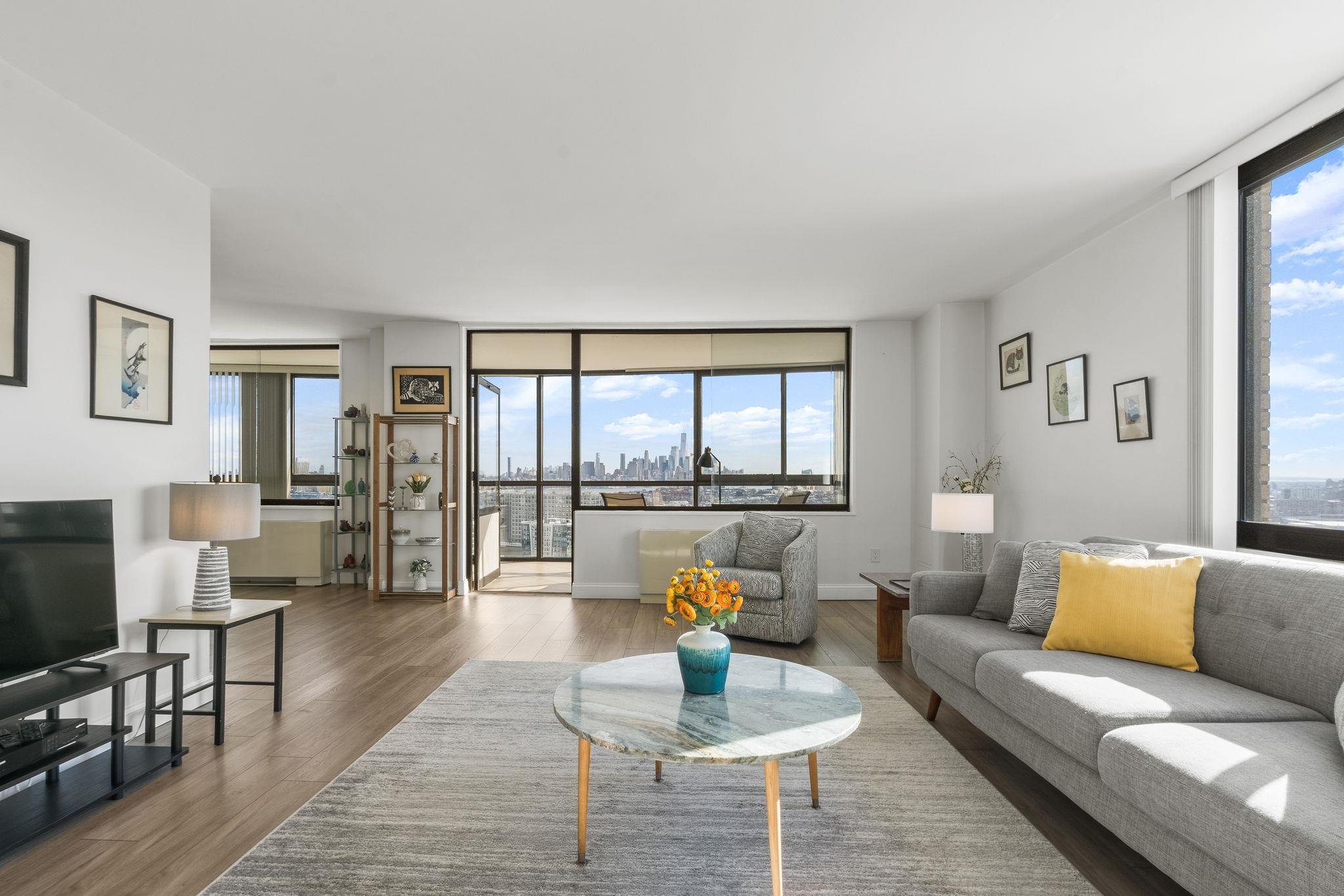 Experience serenity, space, and sunshine galore in the most peaceful, bright, and totally private corner of Troy Towers! From stunning sunrises to show-stopping sunsets, you’ll have plenty of wondrous marvels to elevate your mood…and be hypnotized by sparkling City lights and blue river waters, all surrounding the world-class skyline of Manhattan and beyond. This lovely renovated apartment has sunny southeast and southwest exposure, all-new easy-care, versatile luxury vinyl flooring throughout, all-new kitchen, upgraded bathrooms, large entry foyer and a charming “sunroom†to relax with a good book or enjoy the mesmerizing views. The extra-large primary bedroom accommodates a king-size bed and features a double closet and en suite bath with walk-in shower; guest bath includes a convenient tub either for kids or a soothing soak. Second bedroom also has a large double closet and easily fits a queen-size bed or twins. Troy Towers is a pet-friendly, full-service coop with 24-hour concierge, security, and a stunning new outdoor infinity pool. Maintenance includes real estate taxes, high-speed Internet, premium TV with HBO Max, and ALL utilities – central air, heat, water, and electricity. Garage parking, gym, Amazon hub and bike storage are all available on-site. Troy Towers' prime “West Hoboken†location offers rush hour NYC buses and PATH shuttles at your door, plus quick access to Hoboken, Lincoln Tunnel, shops, parks, and top grocery stores like Whole Foods, Trader Joe’s, Shop-Rite, Lidl and Aldi. Discover why Troy Towers is the best-kept secret on the Hudson! (Please note, initial purchases must be owner-occupied for a minimum of two years. Square footage quotes are not provided by the building, so estimated quotes for comparable units may be inconsistent or inaccurate. Please request original floor plans for comparisons. Troy Towers allows one dog per apartment.)
