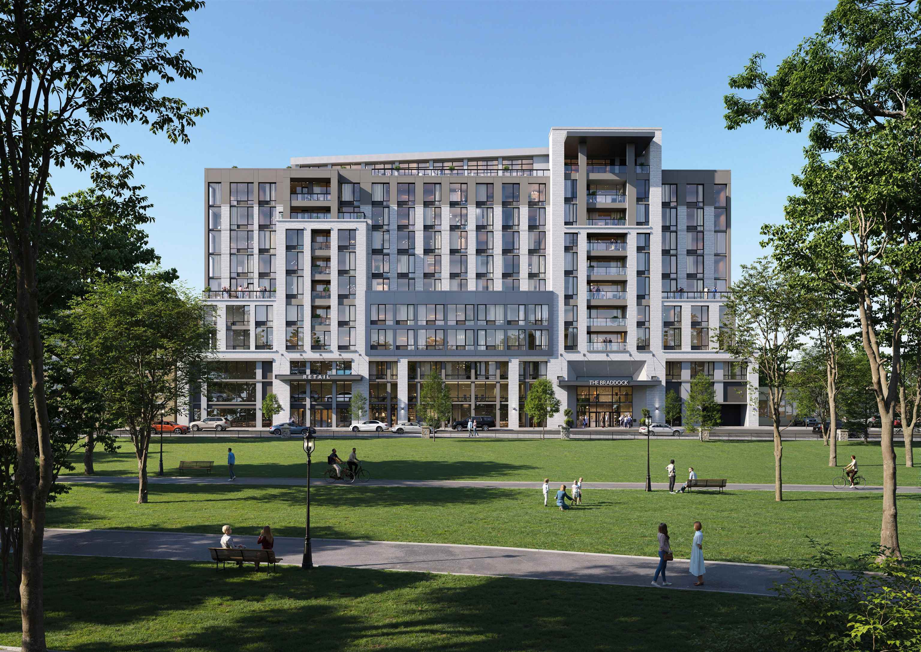 The new Braddock Park West building with 135 luxury residential units has one commercial space available - 2760 sqft storefront (with option for additional storage if needed) fully vented, will be delivered in white box condition. HVAC included - distribution to be done by the tenant. Perfect for restaurant or coffee shop.