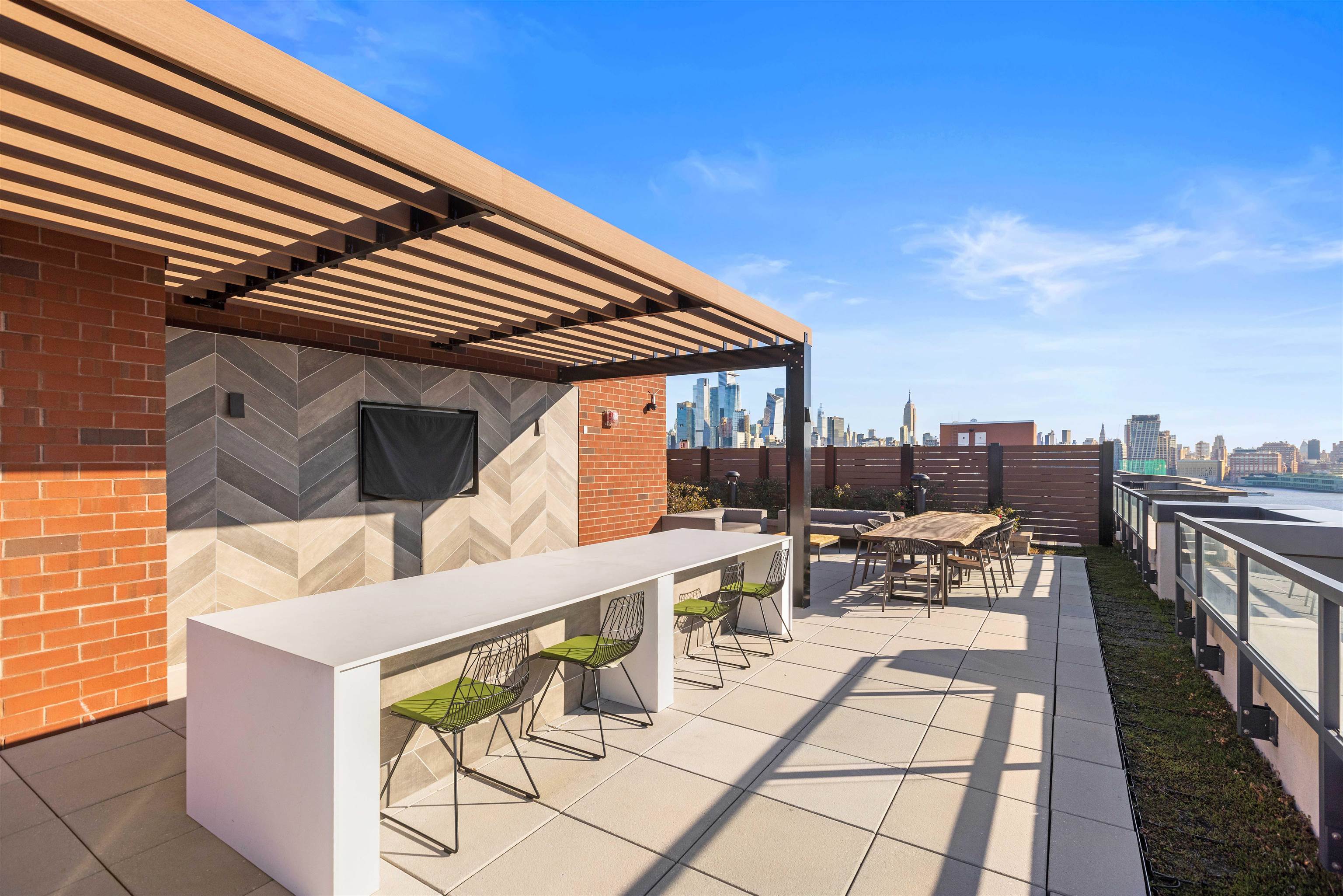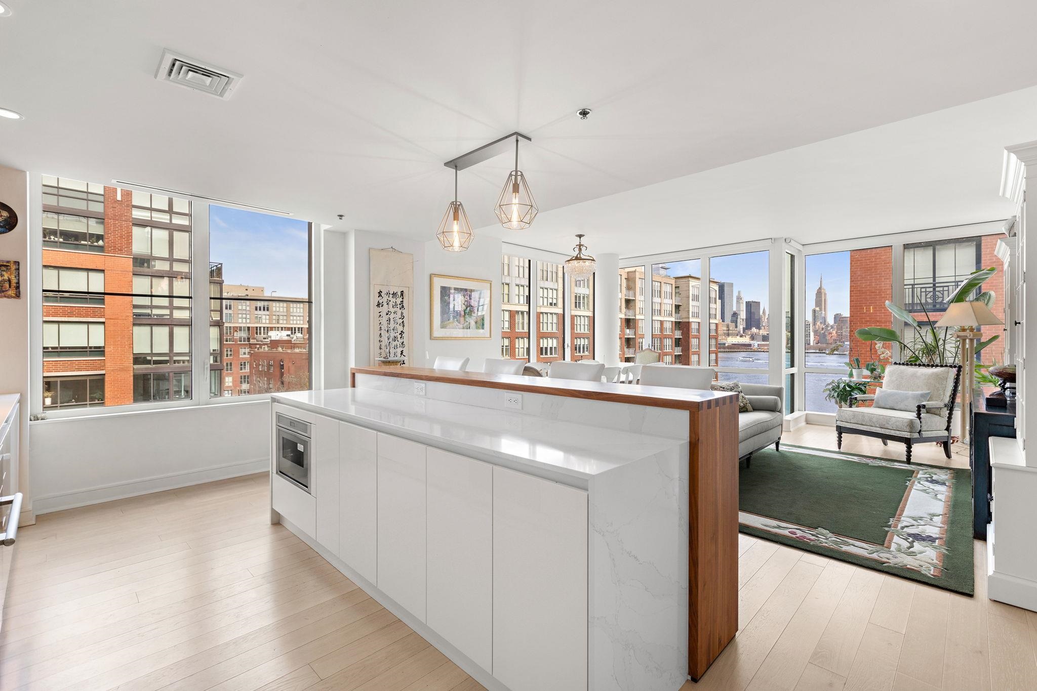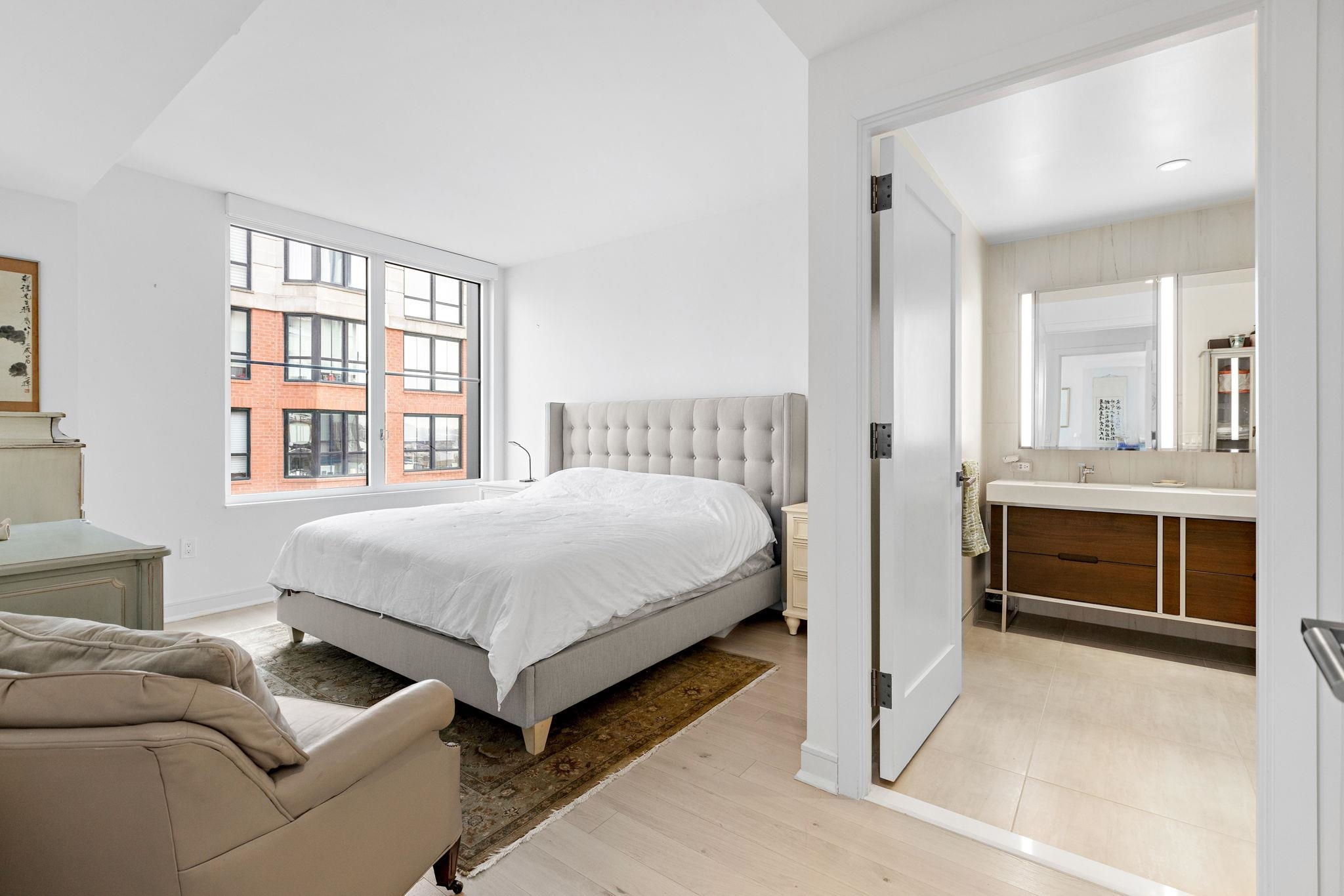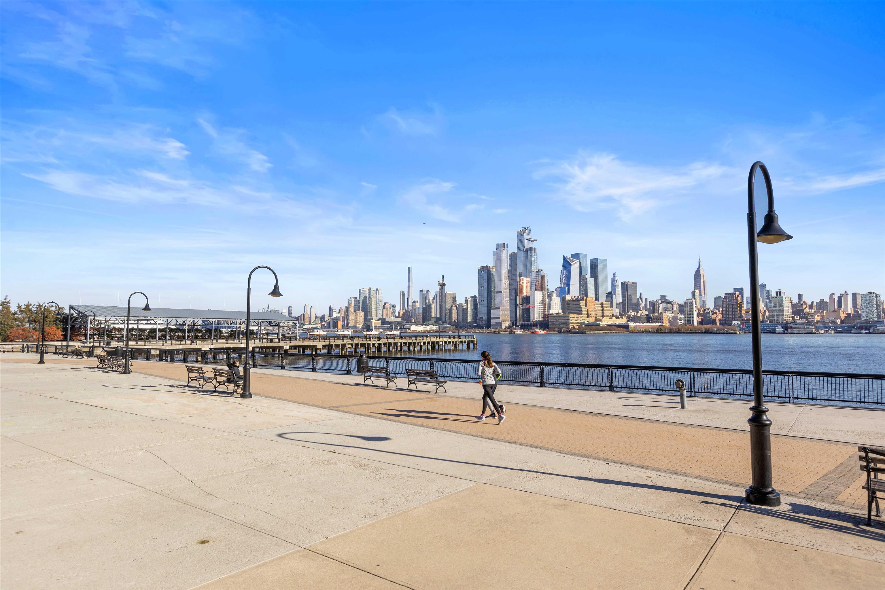 Stunning Northeast corner 1328sqft 2 bed/2 bath with NYC views and parking in the luxury community of 1000 Maxwell, Toll Brothers' newest Hoboken building. The chef's kitchen includes stainless steel appliances, extra-long island, quartz countertops and custom-built modern waterfall walnut cabinetry. The oversized living and dining areas feature floor-to-ceiling windows, showcasing breathtaking NYC/river views. The primary bedroom features a large walk-in closet and spa-like ensuite bathroom. Rounding out this incredible home is a spacious secondary bedroom, additional full bathroom, gleaming hardwood floors, in-unit washer/dryer and 1 licensed parking spot in 1100 Maxwell Ln. The community's luxury amenities include 24/7 concierge and security, a gym, pool, playroom, rooftop deck with BBQ grills, community room, and shuttle service to and from the Path. The building is conveniently located near the NYC Ferry, bus stop, shops, restaurants, and everything that uptown Hoboken has to offer.